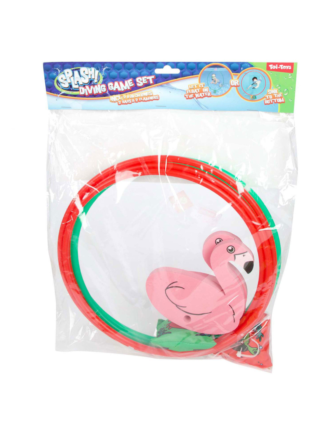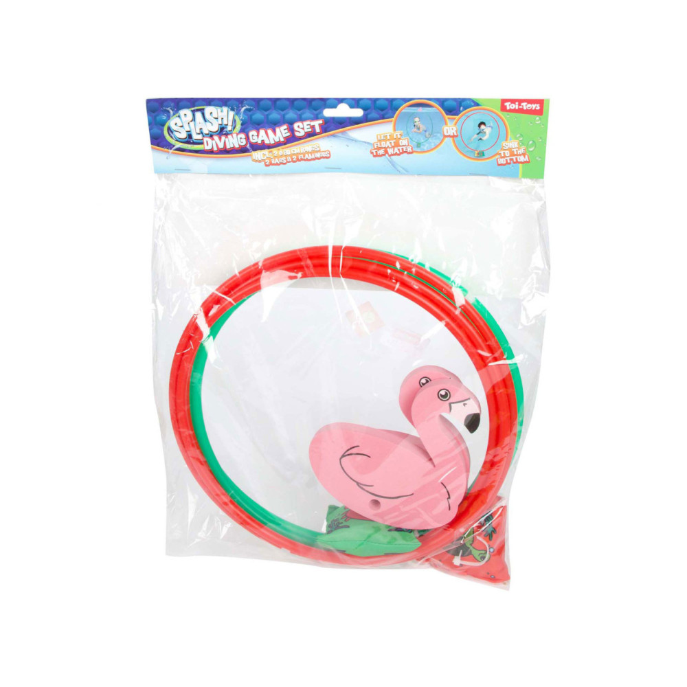 SPLASH Set Duikringen Flamingo diameter80cm, 2st. Inclusief 2 drijflfamingo's en gewichten.