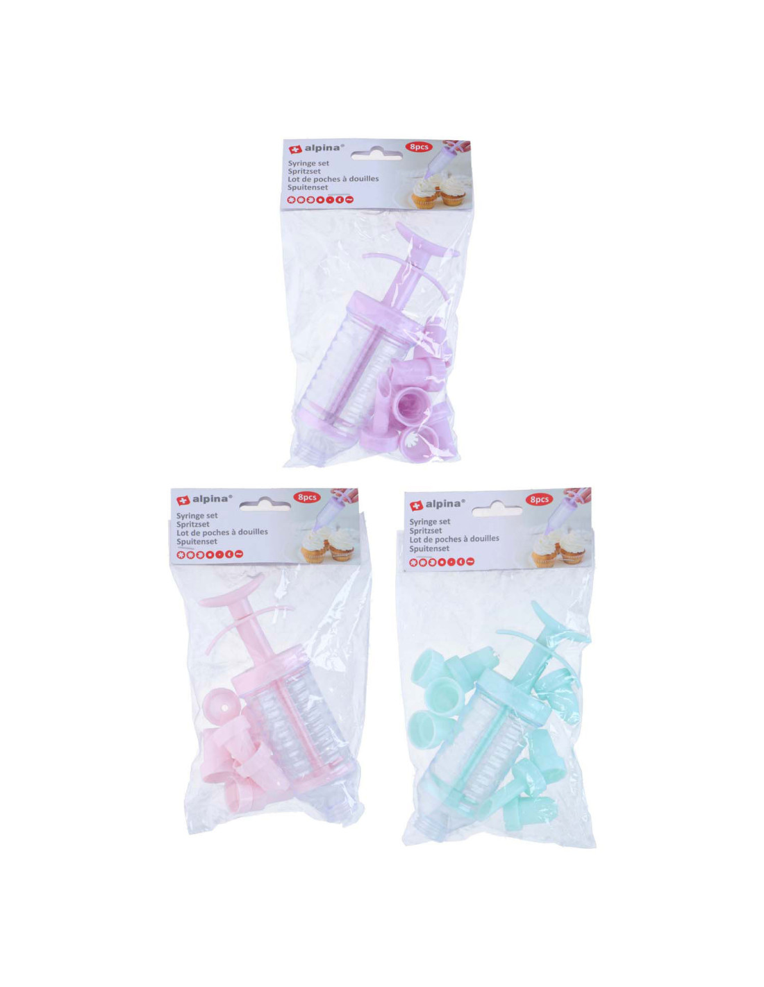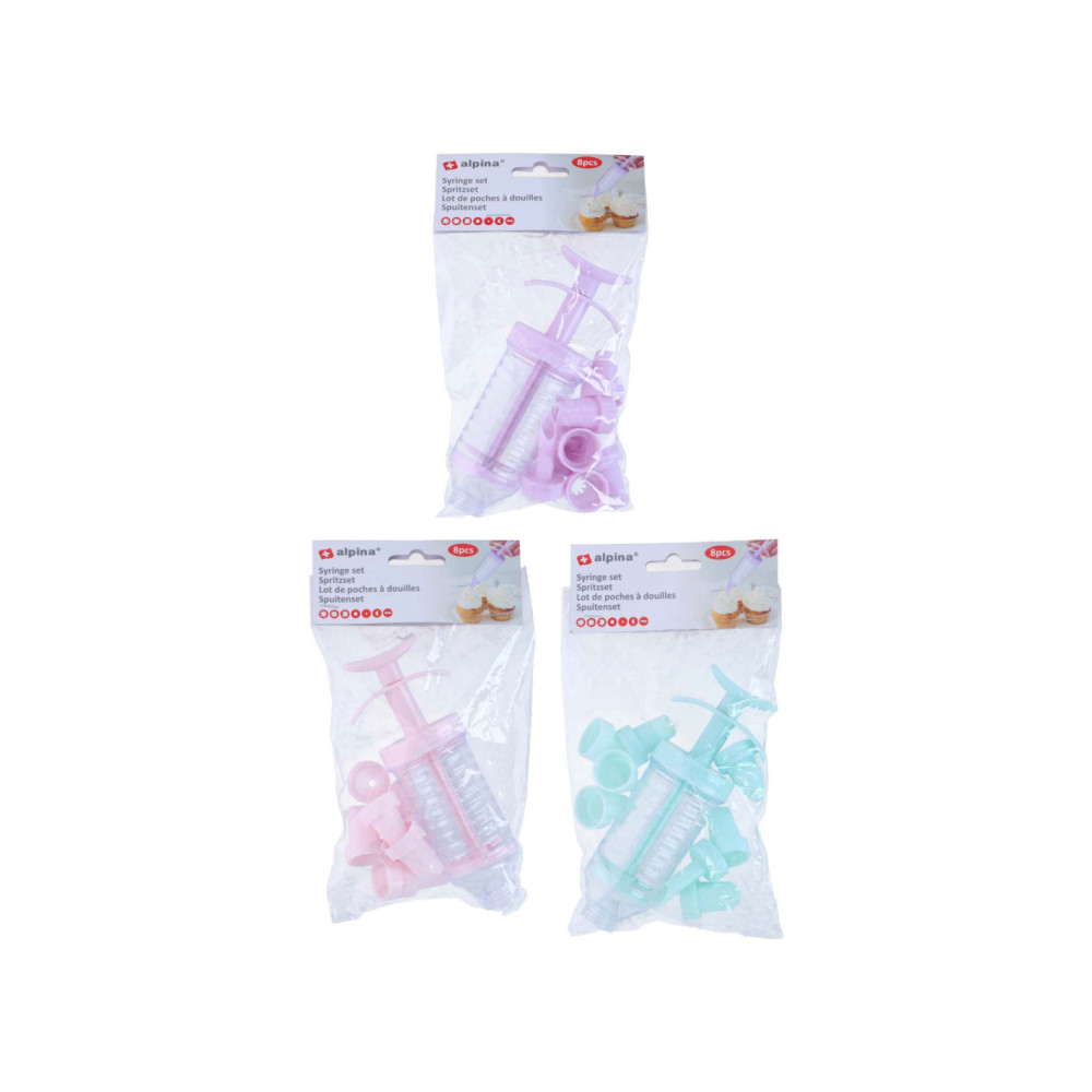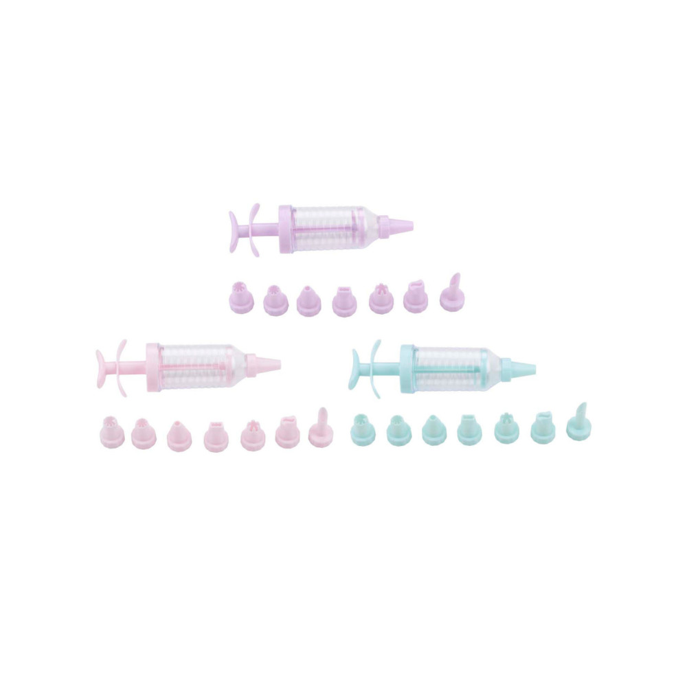 Handige spuitset bestaande uit 18 stuks in drie mooie kleuren. Ideaal voor cake- en dessertdecoratie, met verschillende opzetstukken voor creatieve ontwerpen.