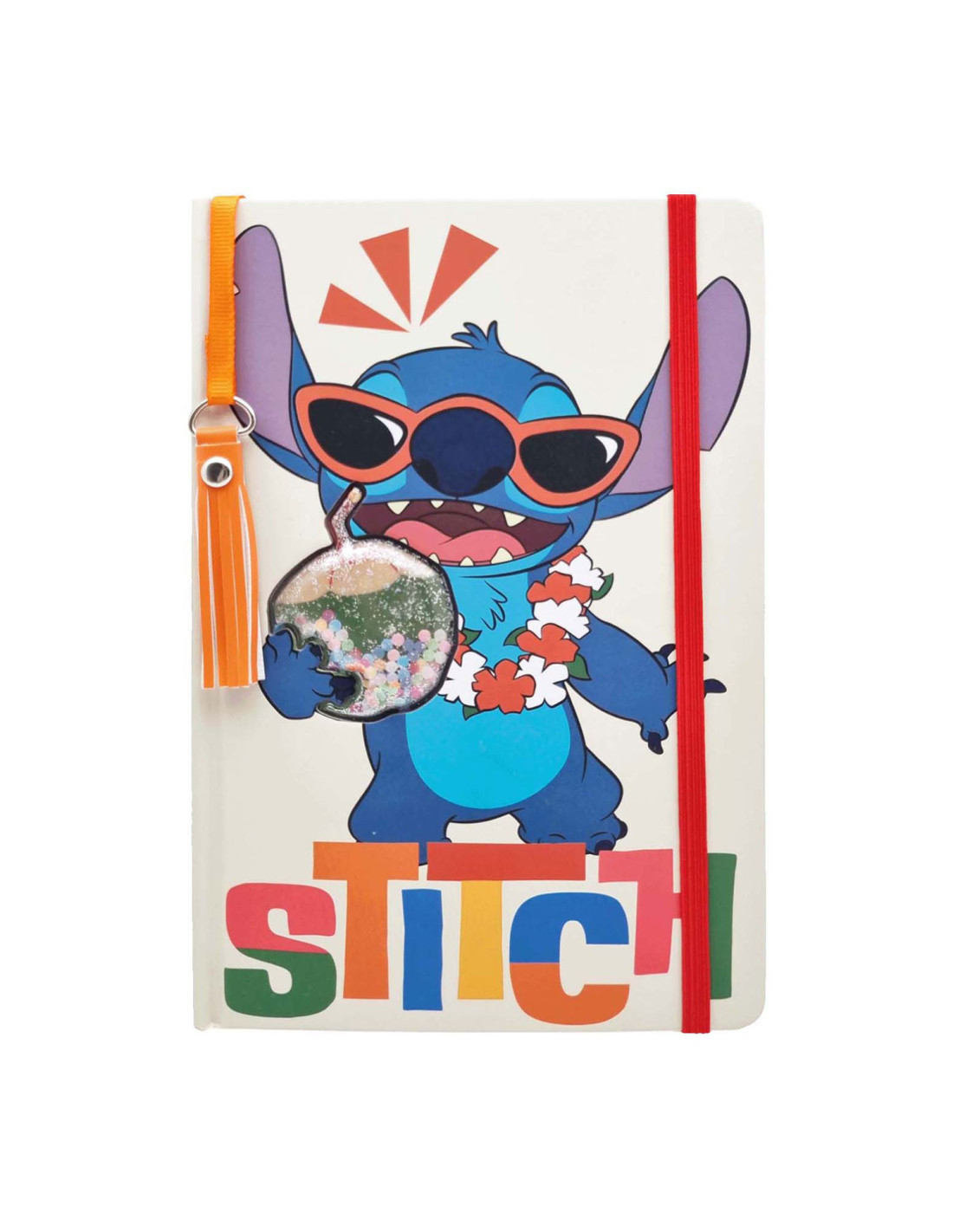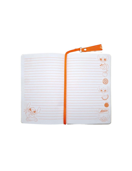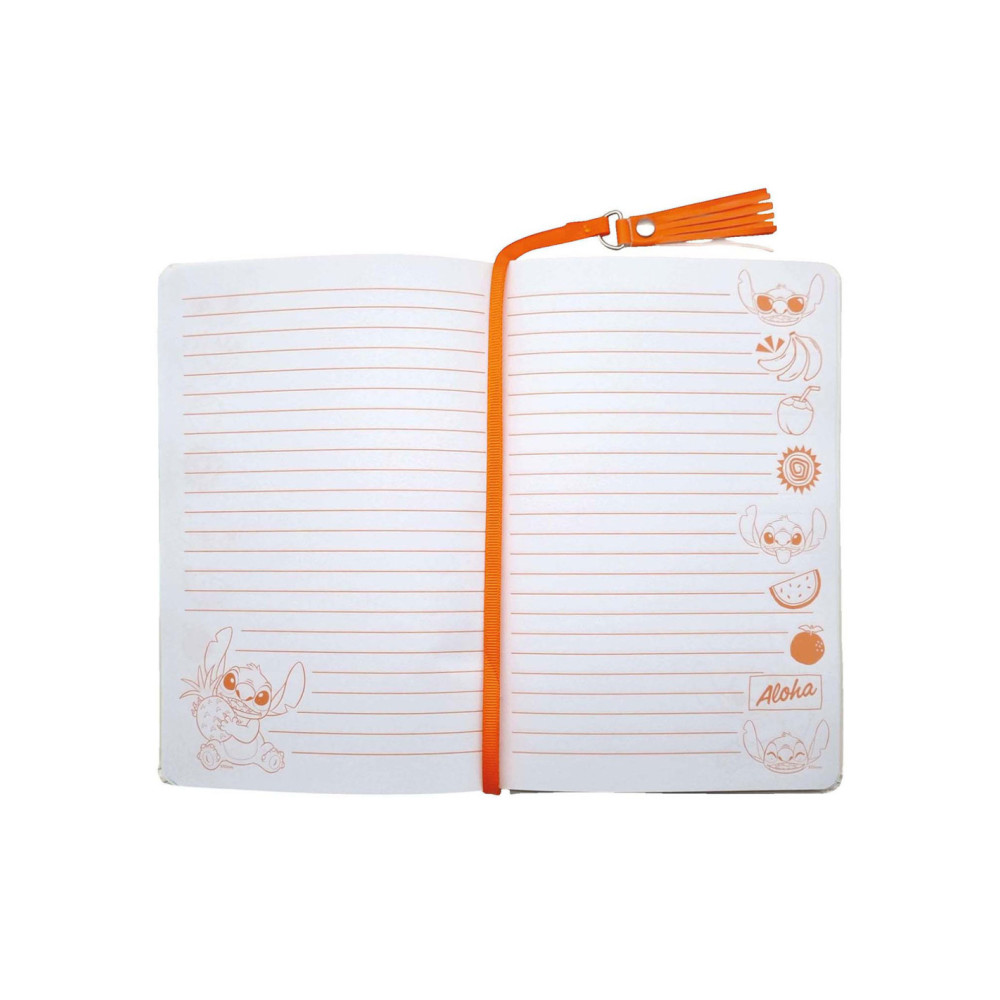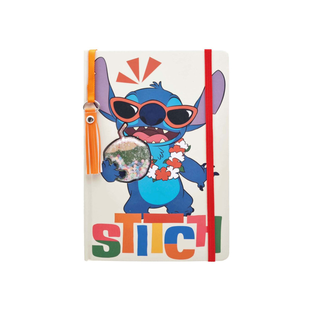 Stitch notitieboek in A5-formaat met tropische kaft, glitter en pailletten. Gelinieerd papier en leuke paginawijzer met hanger.