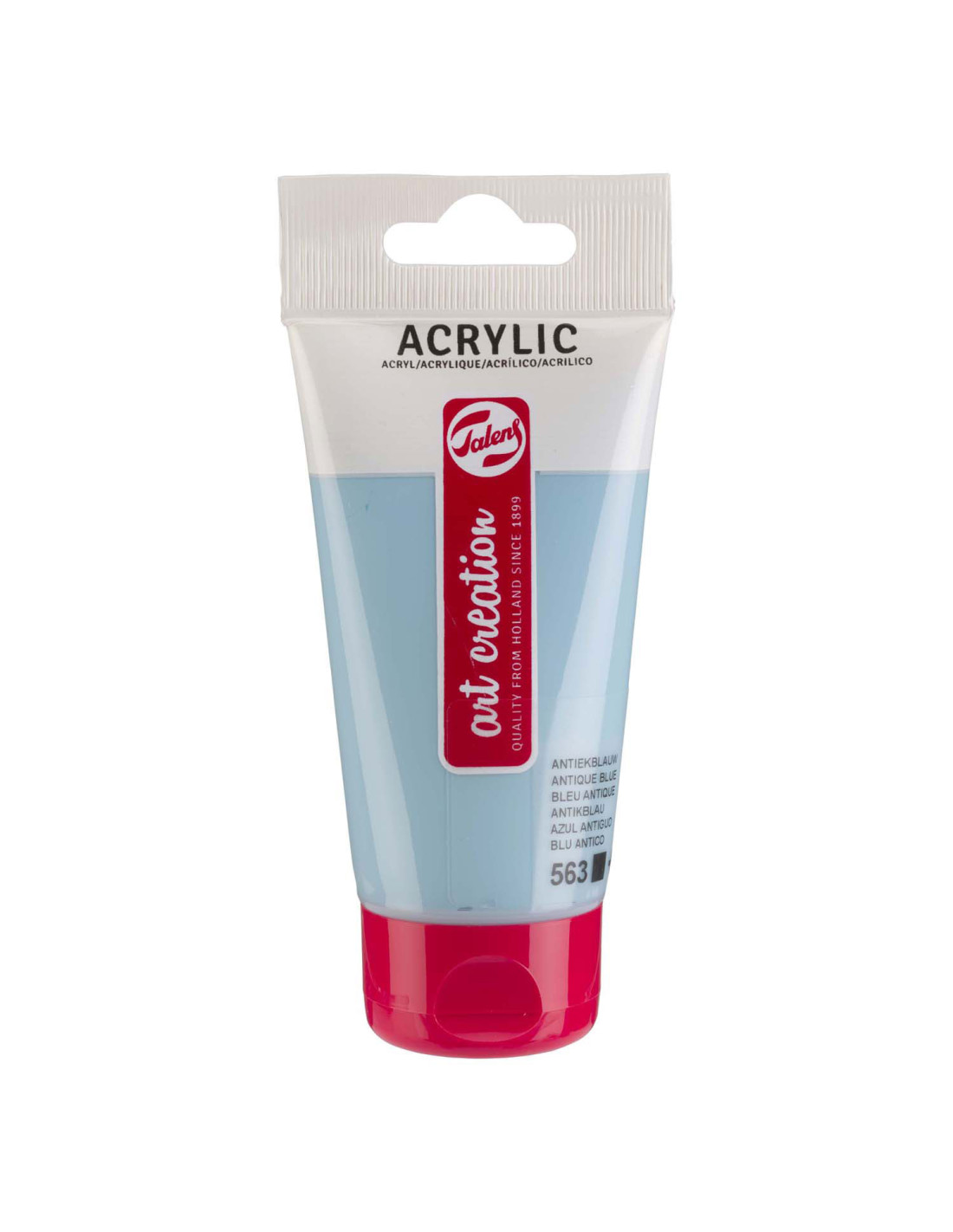 Deze acrylverf in de kleur Antiekblauw (563) is een dekkende verf met een uitstekende lichtechtheid (+++).