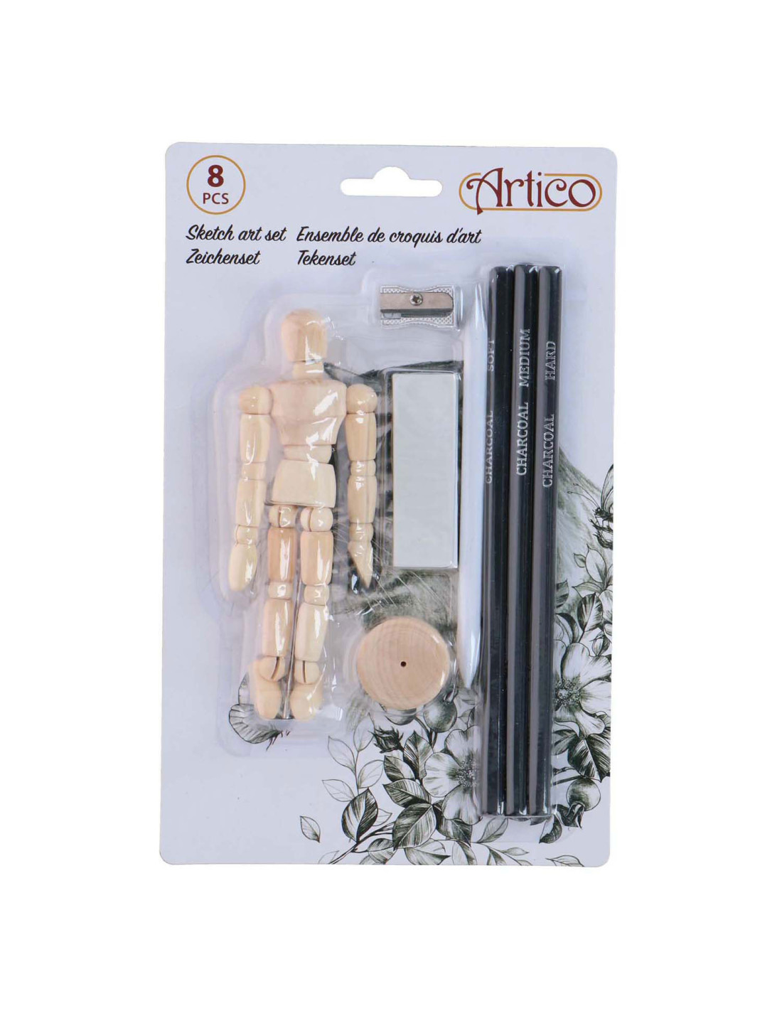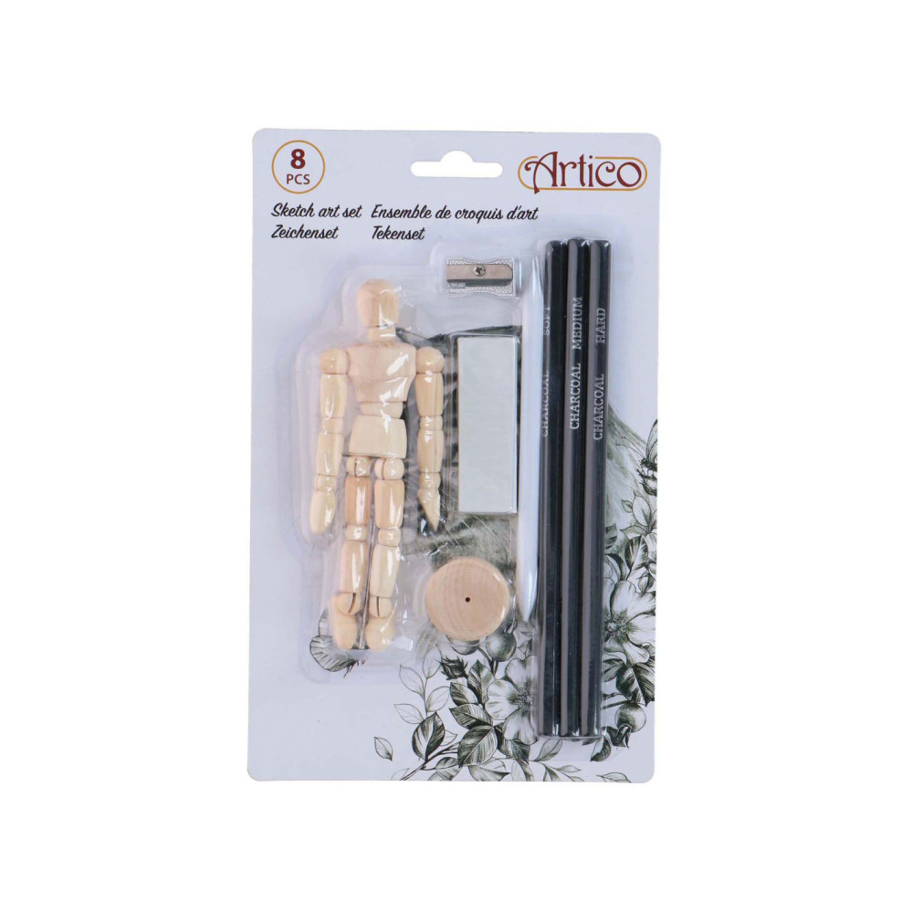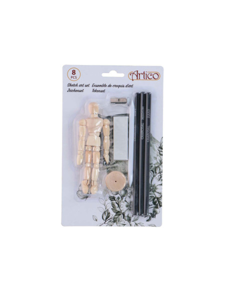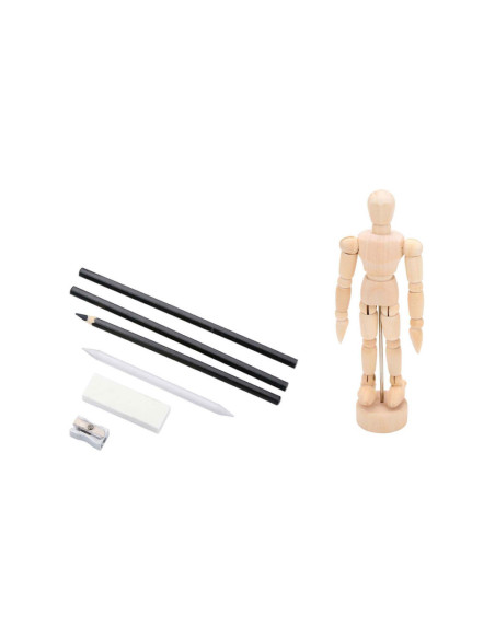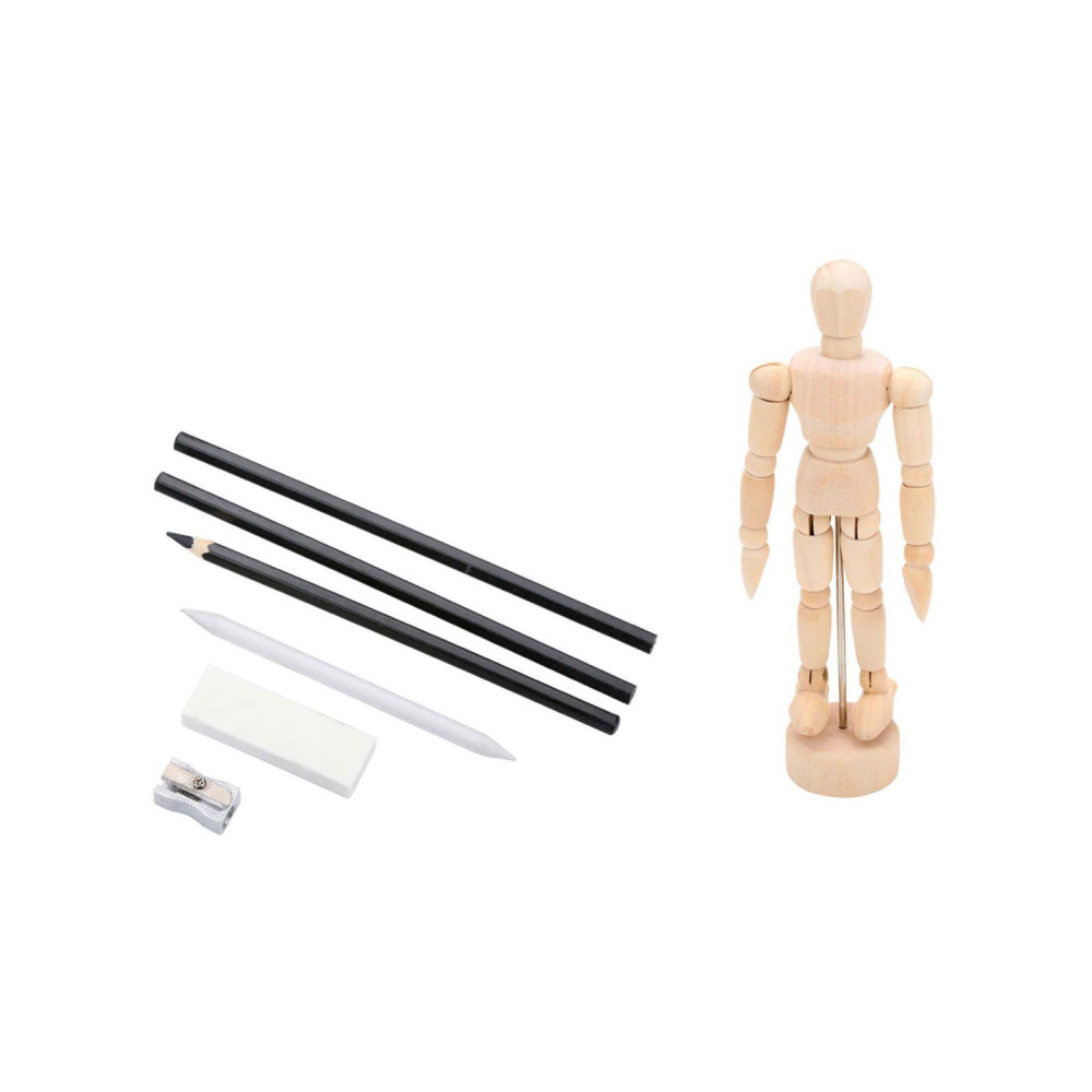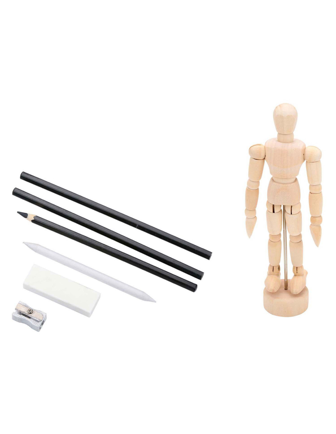 Complete schetskunst set met 8 stuks, inclusief een houten figuur, potloden en gum. Ideaal voor kunstenaars en beginners die willen oefenen met schetsen en tekenen. Kenmerken • 8-delige set • Inclusief houten figuur • Ideaal voor beginners