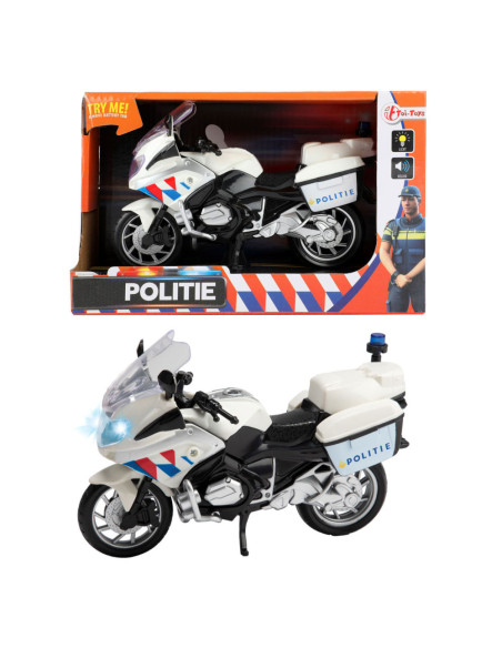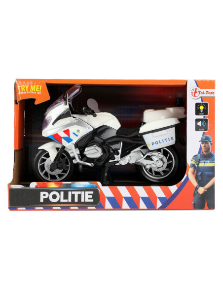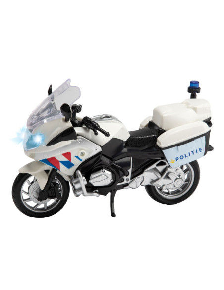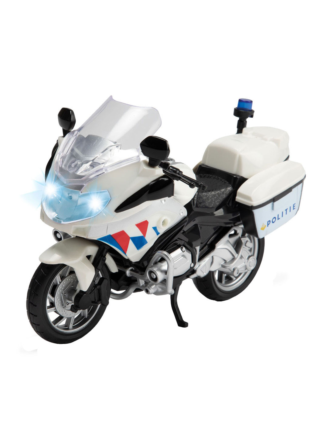 Nederlandse politiemotor met licht en geluid. De motor is gemaakt op schaal 1:20 en is 9,5 centimeter groot. Geschikt voor kinderen van 3 jaar en ouder. Inclusief batterijen.