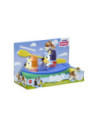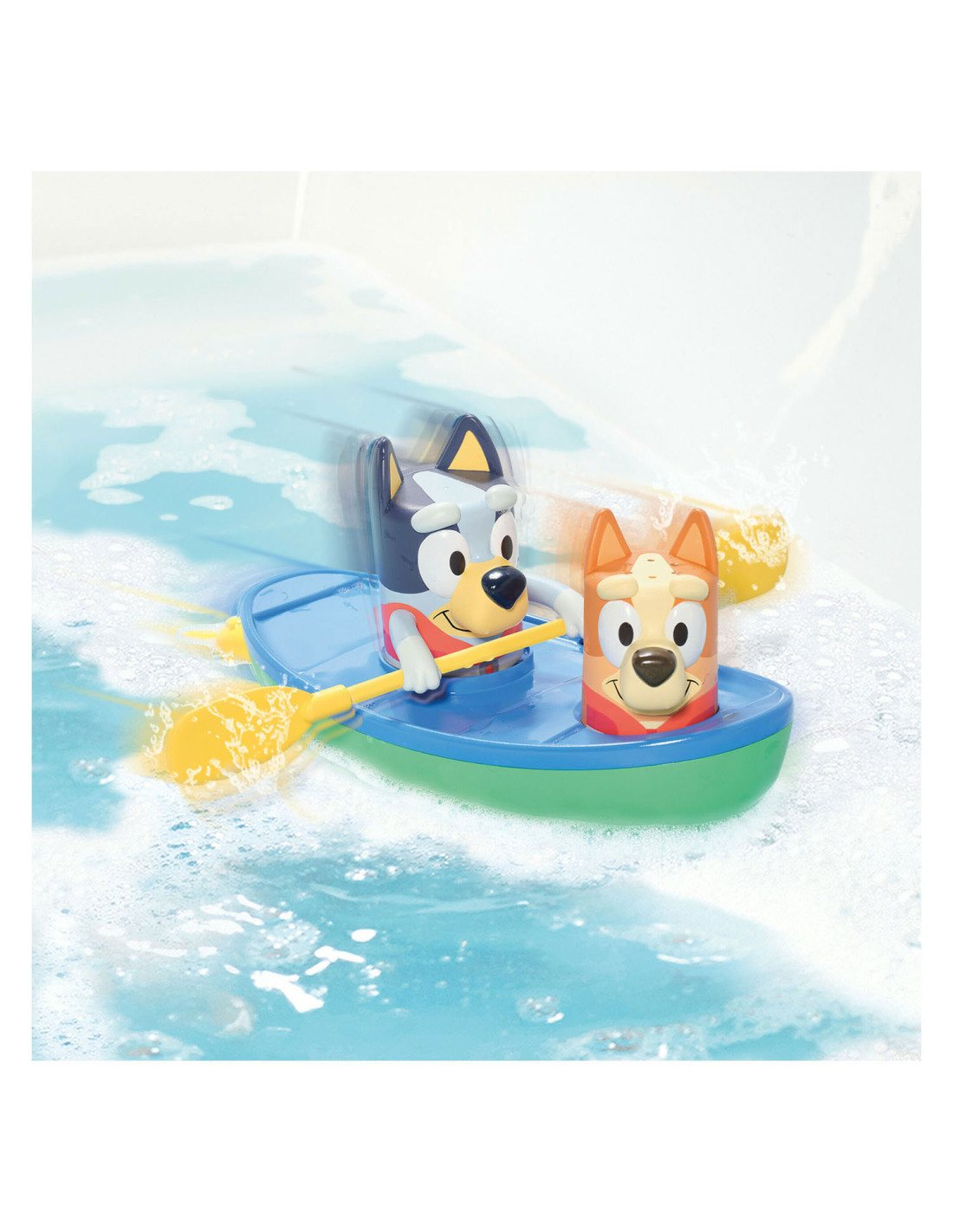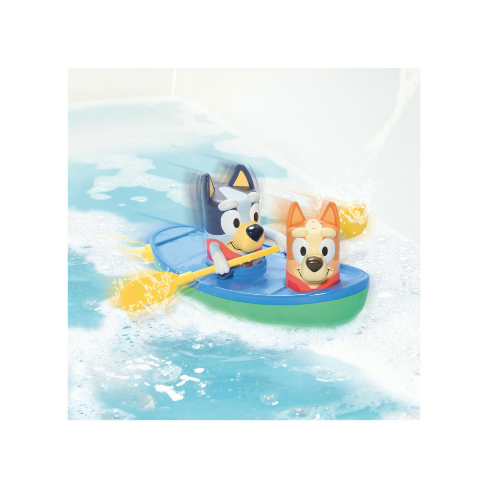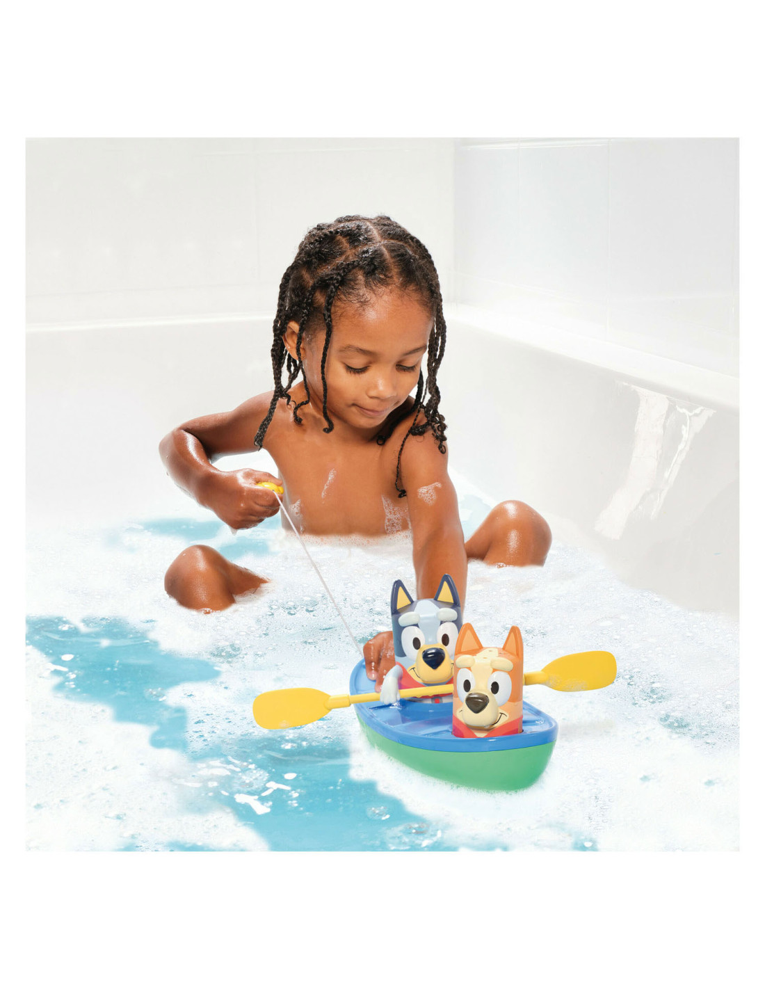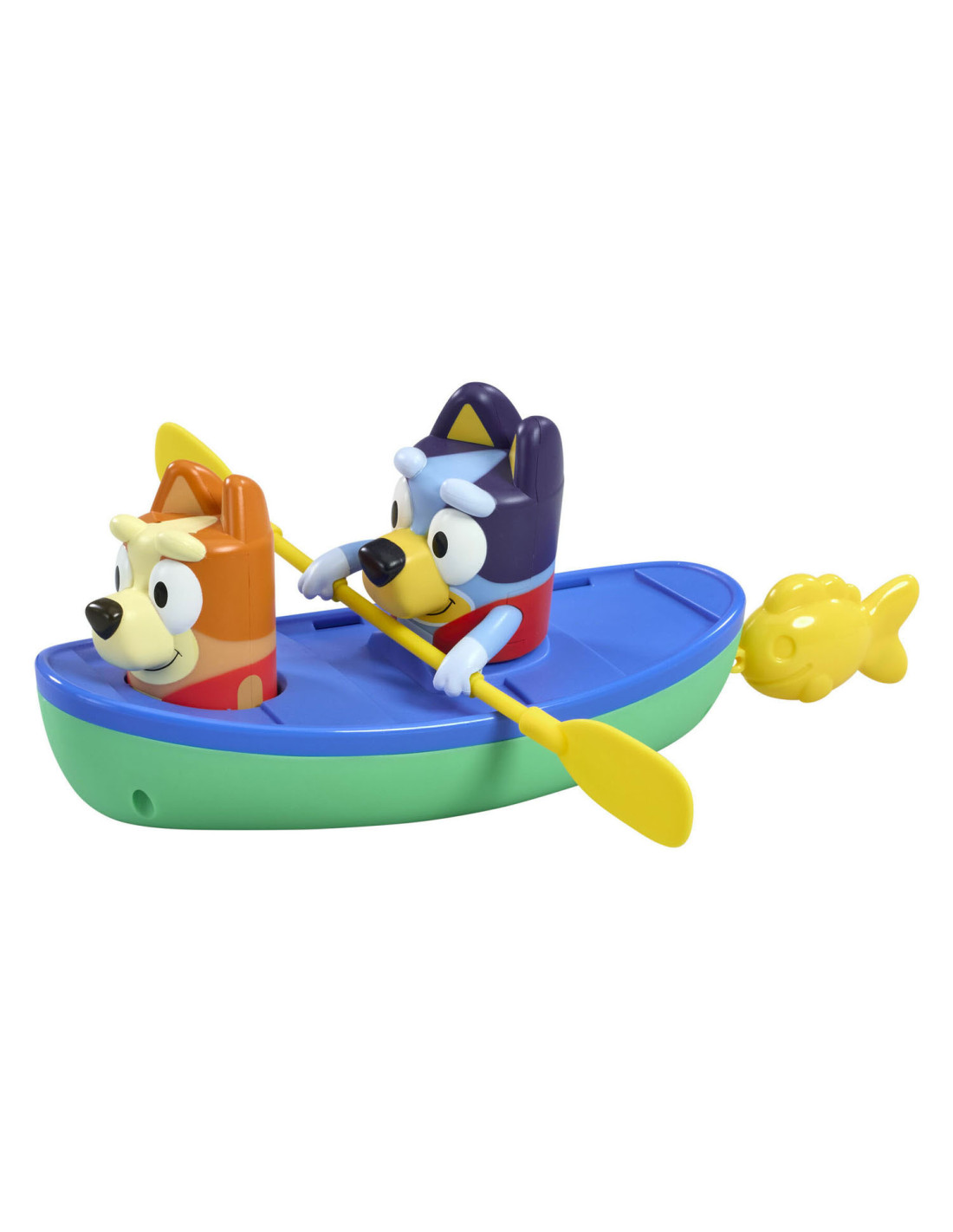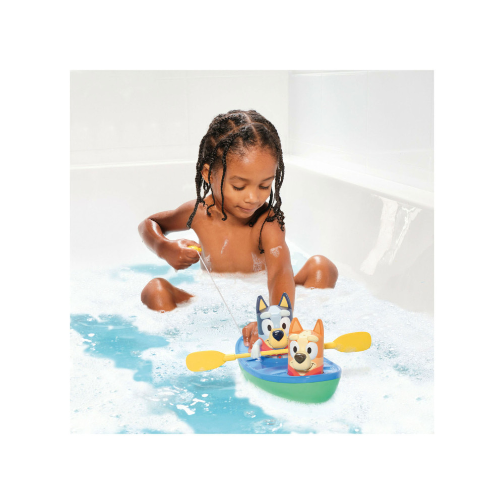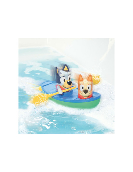 Dit Bluey Trekken & Gaan badspeelgoed maakt het nog leuker om in bad te gaan! Zie Bluey en Bingo eens heerlijk zitten in hun kano. Trek aan het koord achter de kano en roetsj... Bluey zal door je bad paddelen! Haal Bingo uit de kano en je kunt haar gebruiken als bekertje waarmee je water kunt scheppen en gieten. Of houd Bingo ondersteboven en laat het water door de gaatjes stromen, nu heb je een mini douche! Spelen met Bluey en Bingo is niet alleen heel erg leuk, maar het stimuleert ook fantasierijk spel en door de speelelementen, leer je oorzaak en gevolg kennen. In bad gaan was nog nooit zo leuk!Na gebruik afgieten en aan de lucht laten drogen. Maak de binnenkant regelmatig schoon door grondig te spoelen met een antibacteriële of steriliserende oplossing. Leeftijdsindicatie: 18 maanden+.