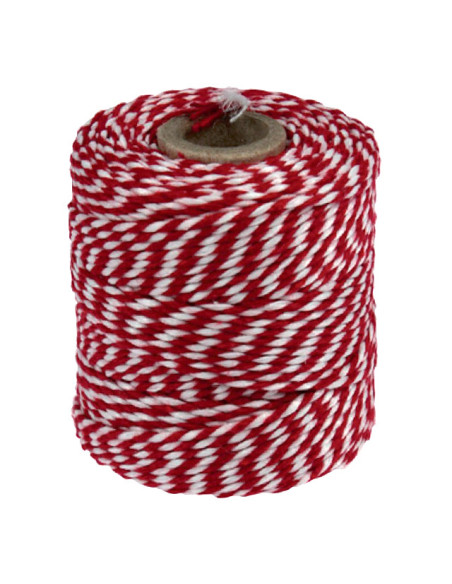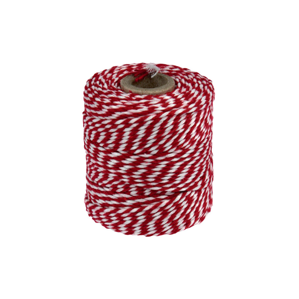 Trendy rood/wit gestreept touw gemaakt van 100% katoen. Dikte 1,3 mm.