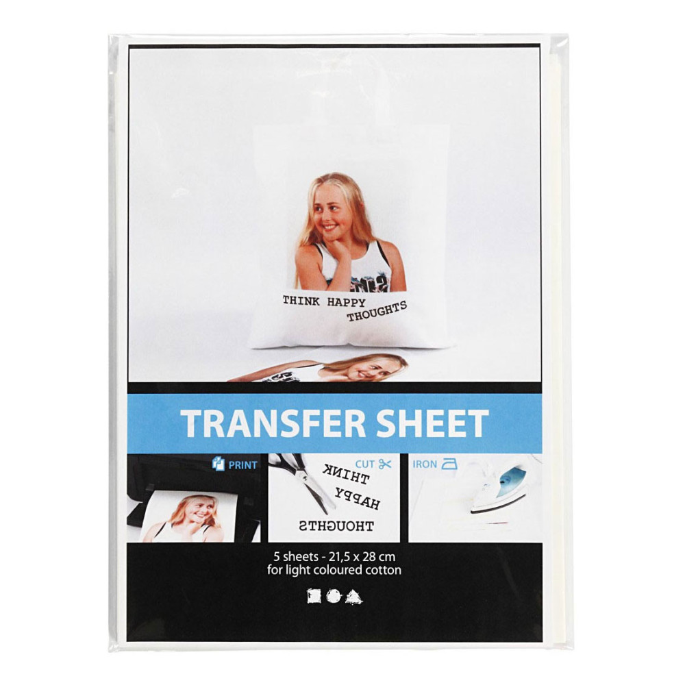Speciale vellen met een rubberachtig oppervlak die kunnen worden versierd met textielverf, textielstiften of bedrukt met behulp van een inkjetprinter. Het vel kan met een schaar worden doorgeknipt. Leg het motief met de voorkant naar boven op de stof, leg er een stuk bakpapier overheen en strijk op een vlakke ondergrond over het motief. Houd er rekening mee dat bij gebruik van transfer vellen voor lichte textiel (207010) het motief in plaats daarvan naar beneden moet zijn gericht en het papier aan de achterkant van het vel helemaal aan het uiteinde moet worden verwijderd