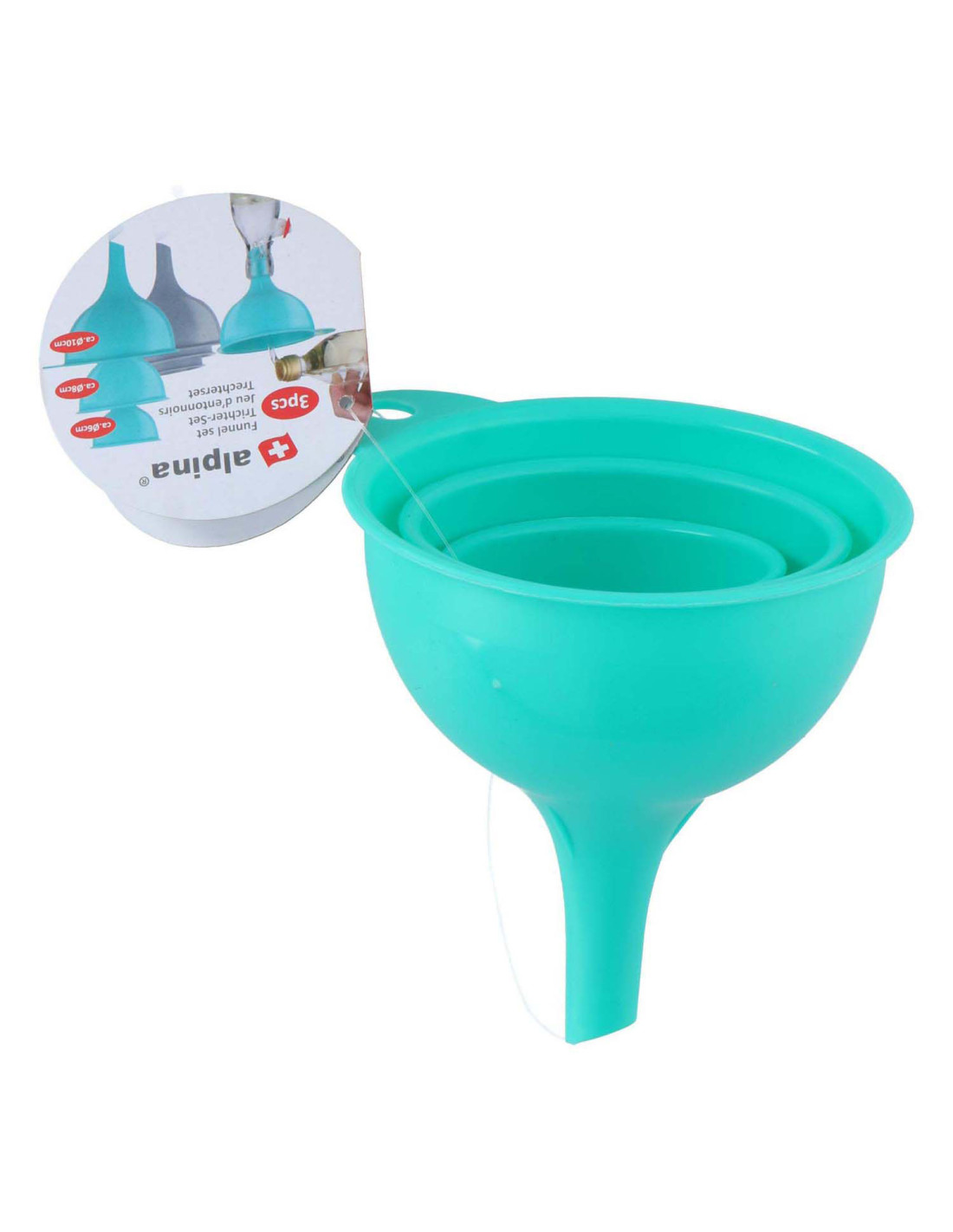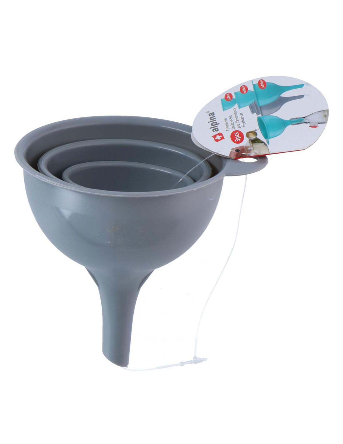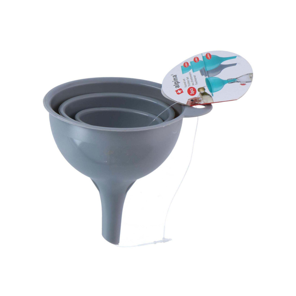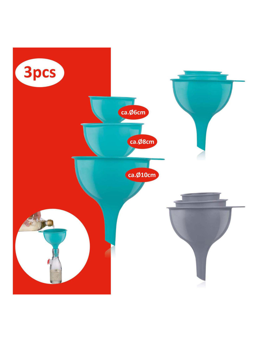 Trechterset met 3 trechters in verschillend formaat. Olie- en zuurbestendig.