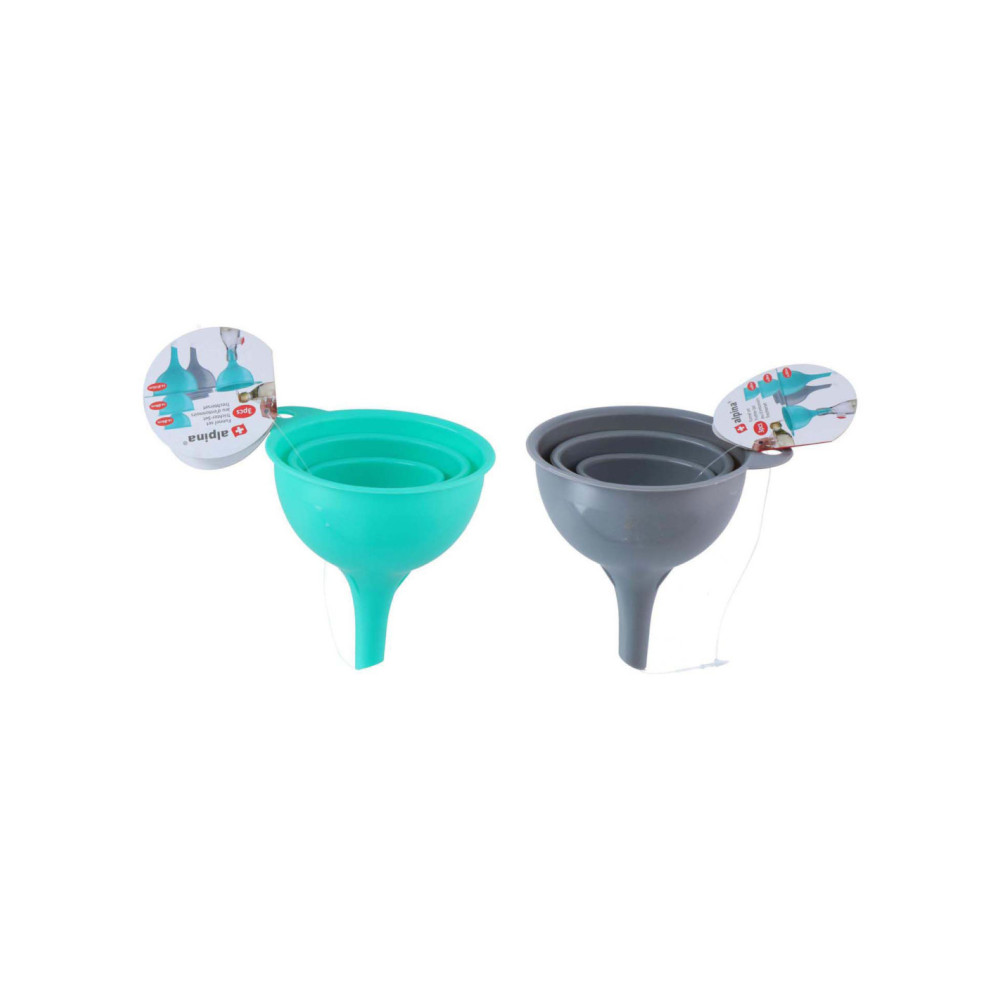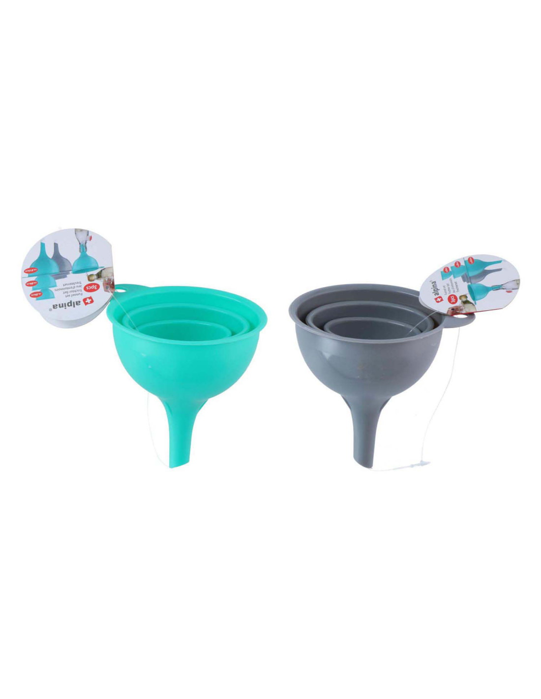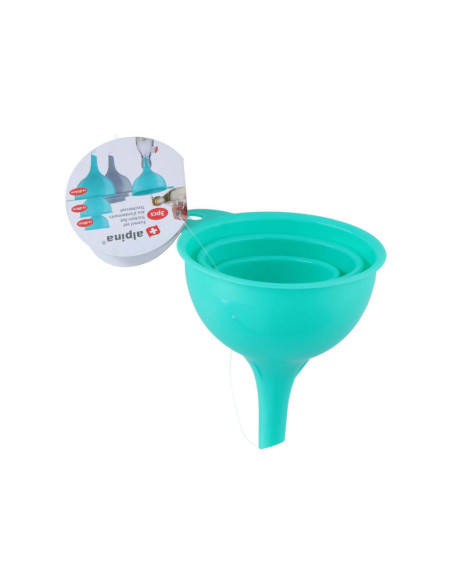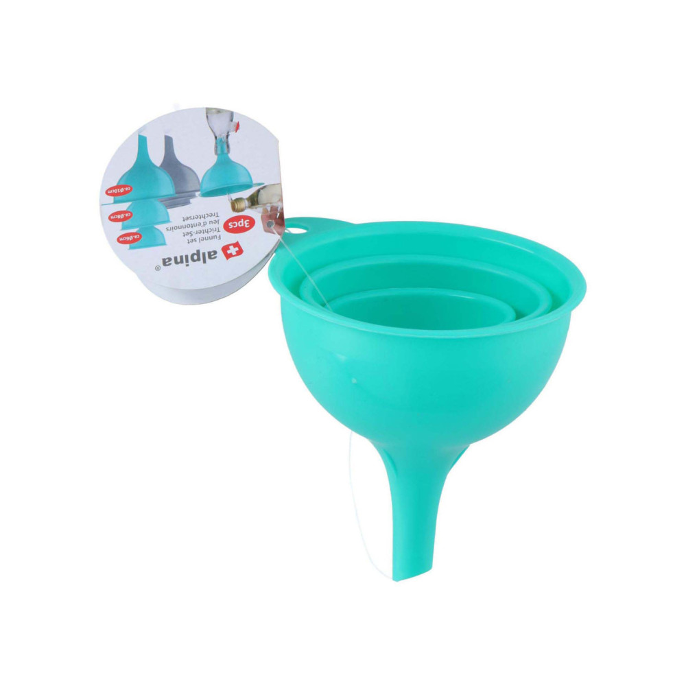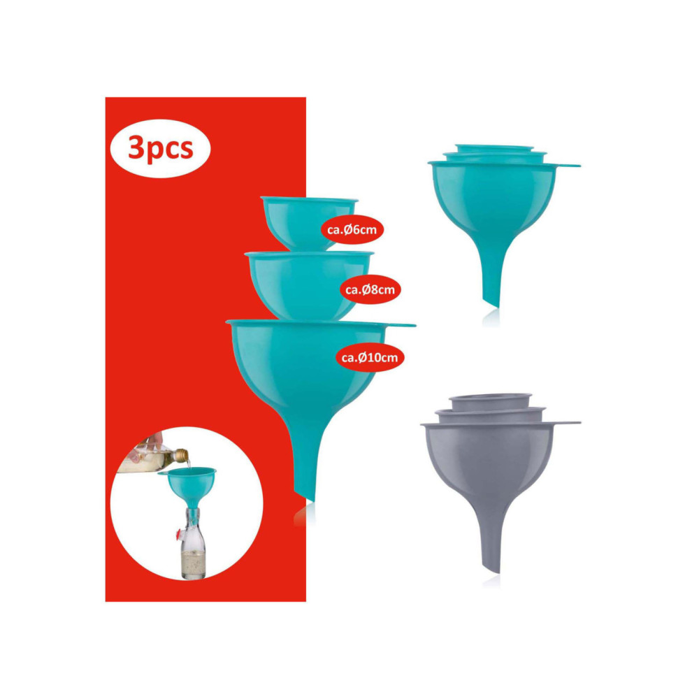 Trechterset met 3 trechters in verschillend formaat. Olie- en zuurbestendig.