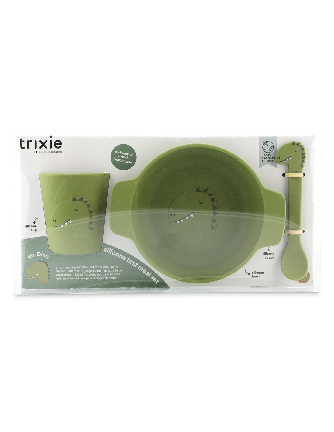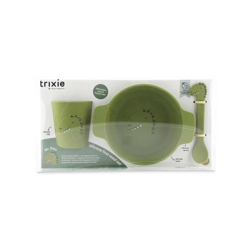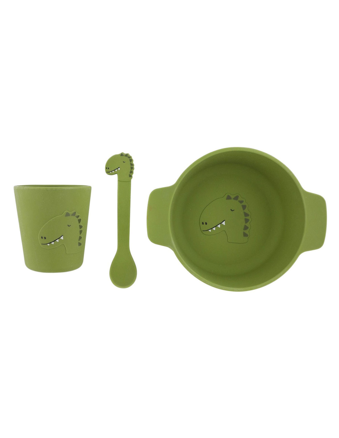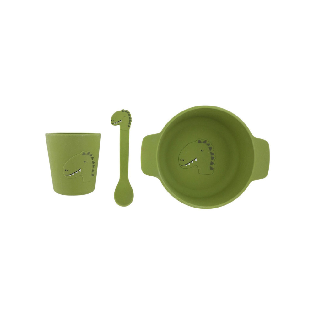 Een geweldig cadeau: deze zachte, siliconen serviesset is speciaal ontworpen voor kleintjes. De set bevat een lepel, kom en beker, versierd met schattige dierengezichten - kortom, alles wat ze nodig hebben voor etenstijd.