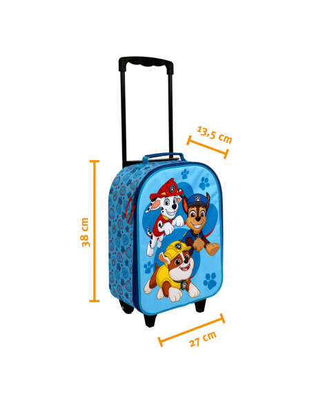 Kindertrolley met print van PAW Patrol. Kleur: blauw. Gemaakt van polyester. Afmetingen: 38 x 27 x 13,5 centimeter groot.