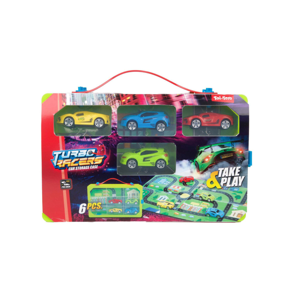 Turbo Racers Verzamelkoffer met Autos en Speelkleed 6dlg.