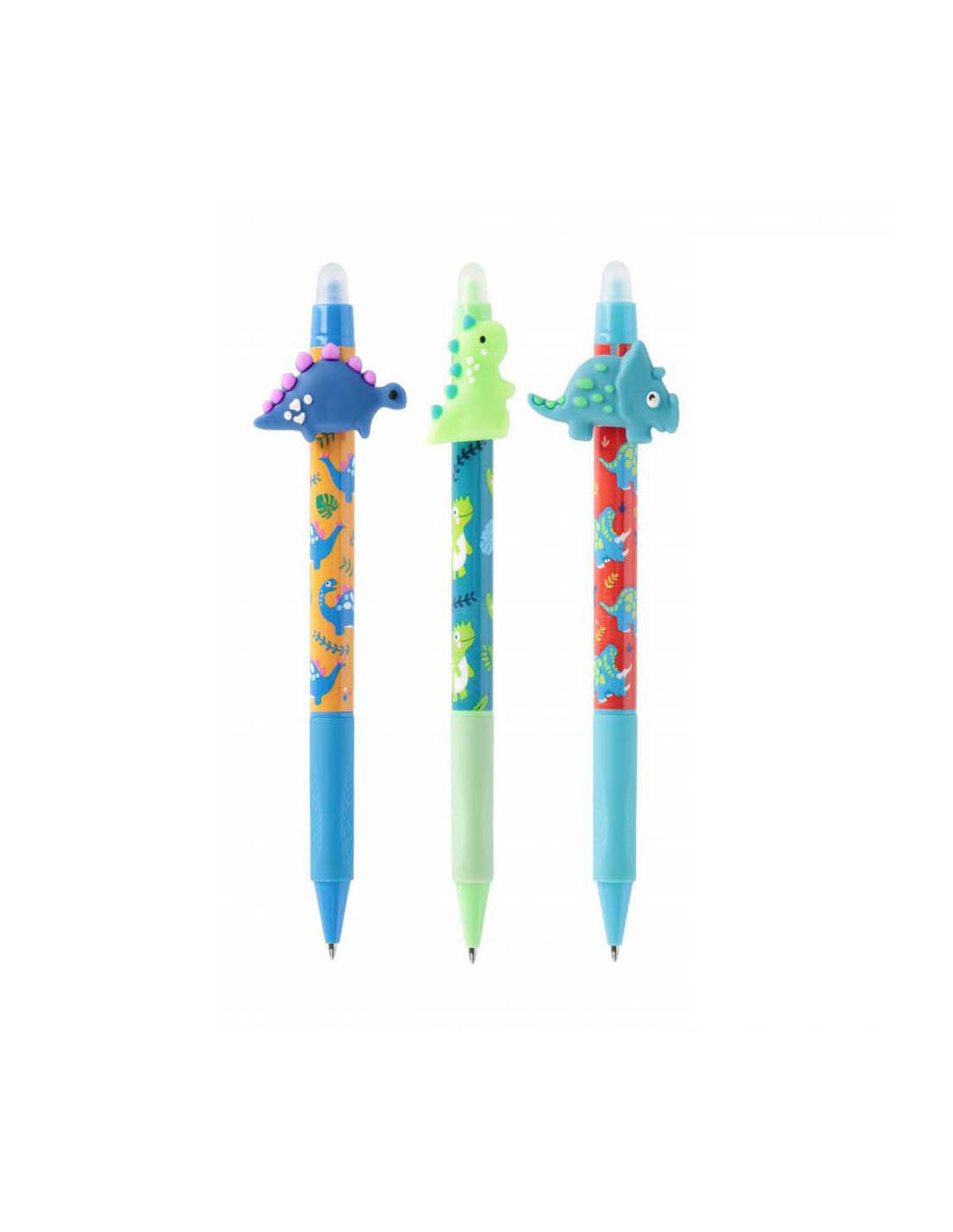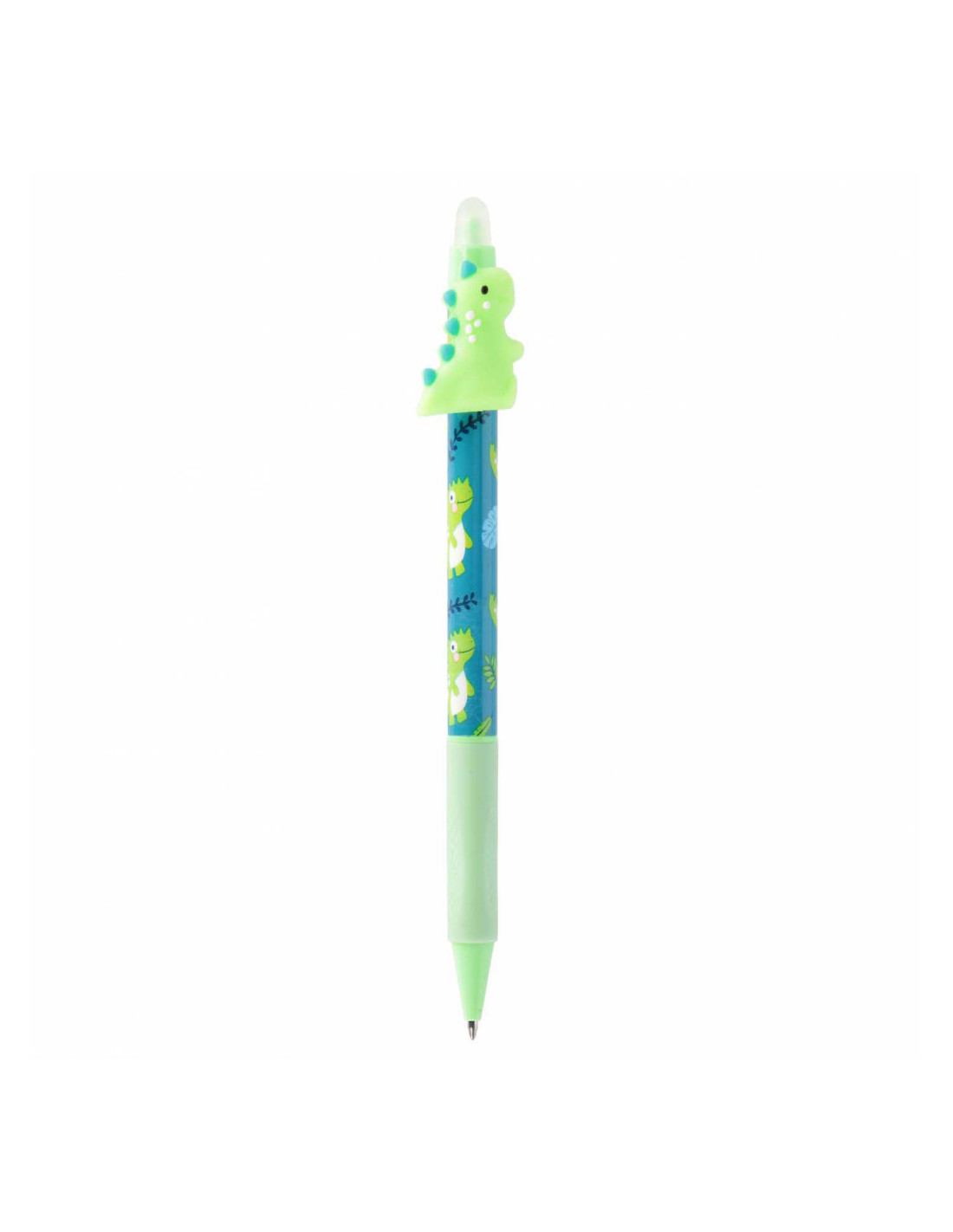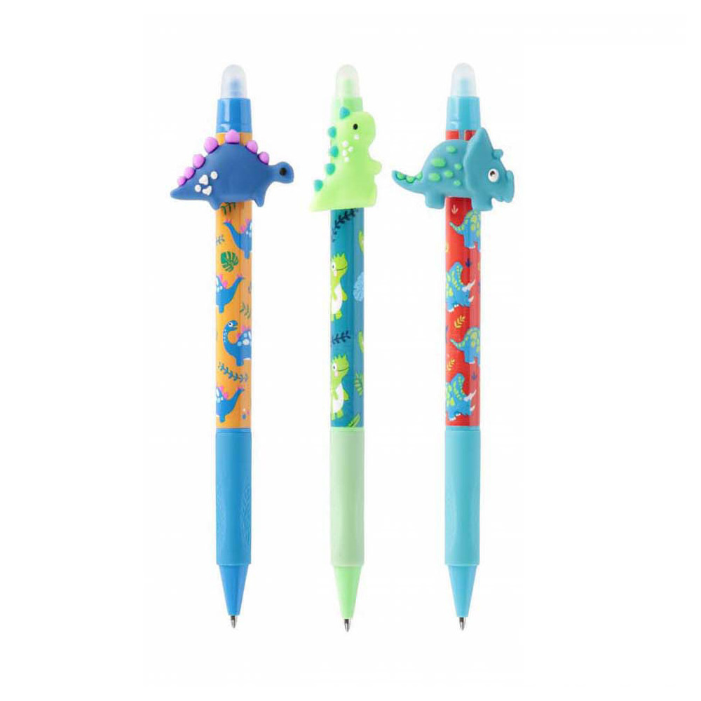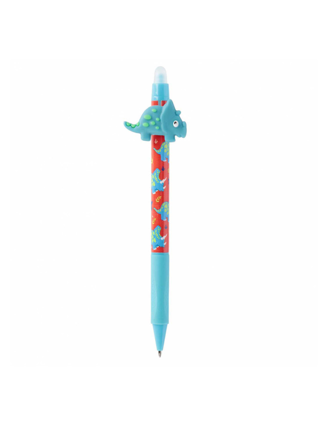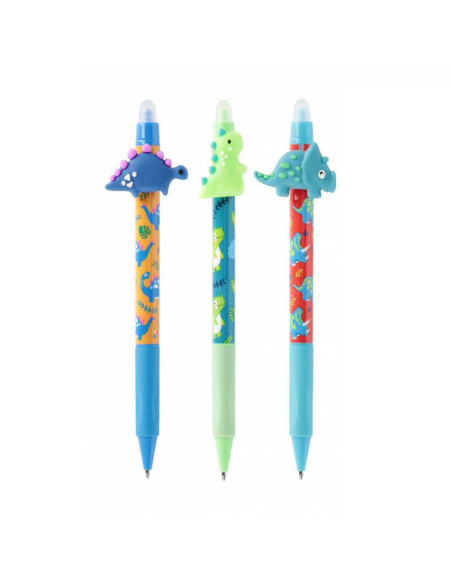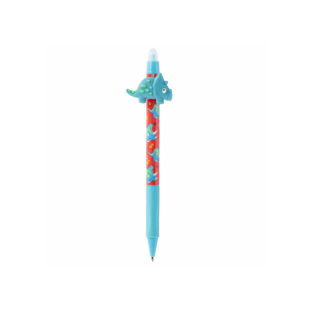 Uitwisbare gelpen met dinoprint, blauwe inkt en 0,7 mm schrijfdikte. Voorzien van gumdop om foutloos te corrigeren.