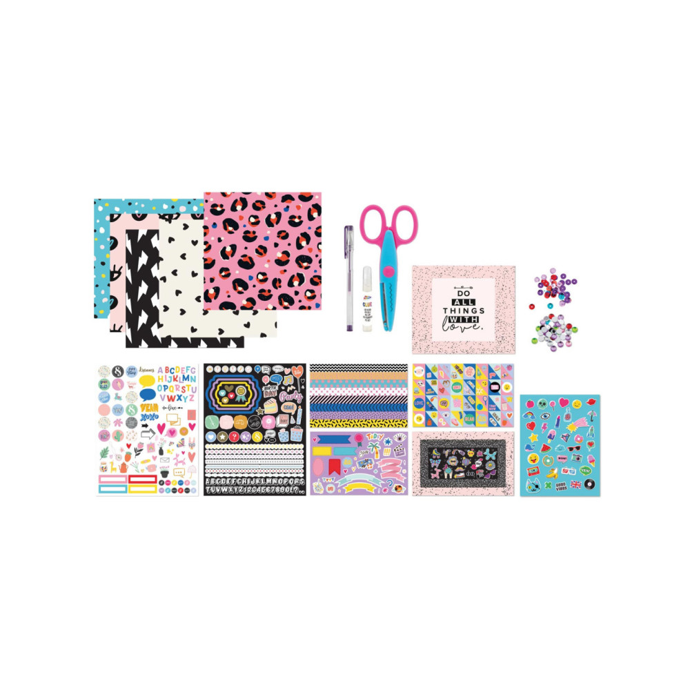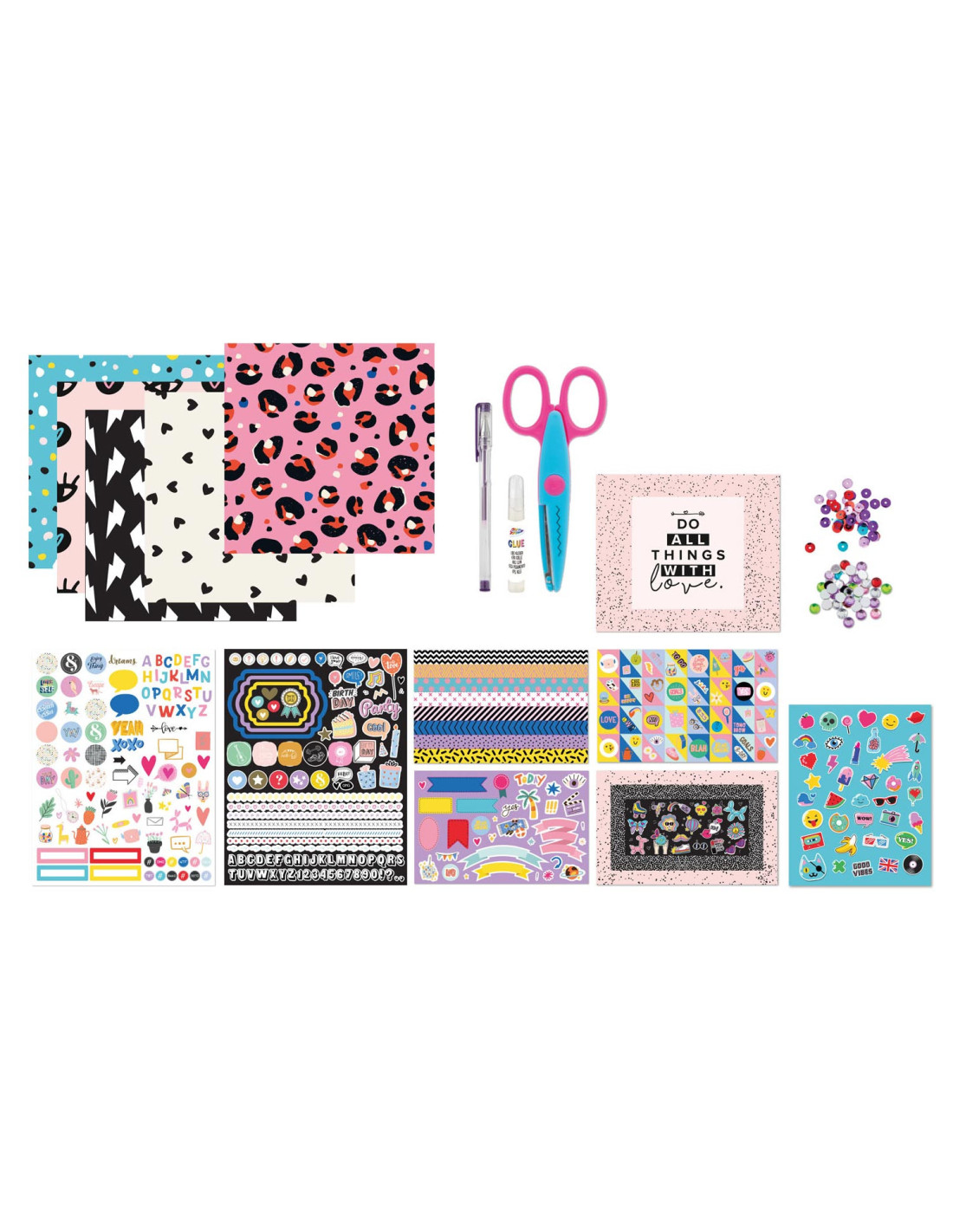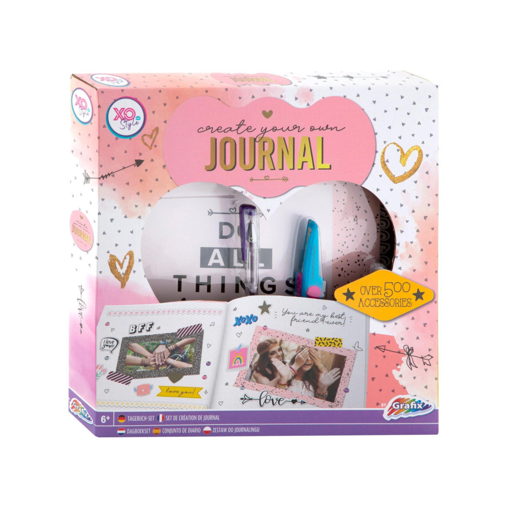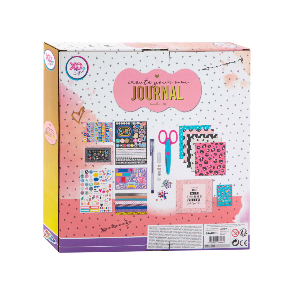 Dagboek om zelf in te richten en te versieren. Inclusief stickers, decoratievellen, strasstenen, een pen, lijm en een kartelschaar.