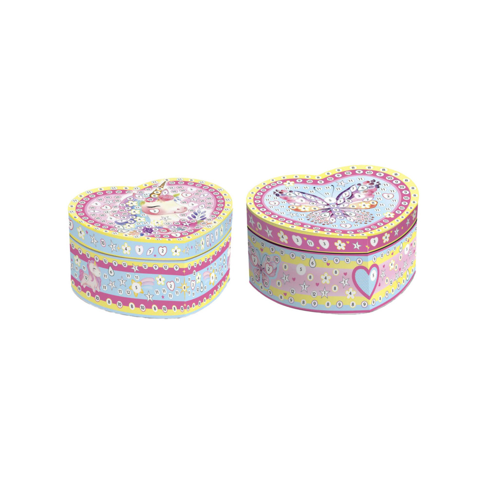 Set waarmee je een eigen sieradenkistje kan versieren. Incuslief diamantjes. Geschikt voor kinderen vanaf 5 jaar.