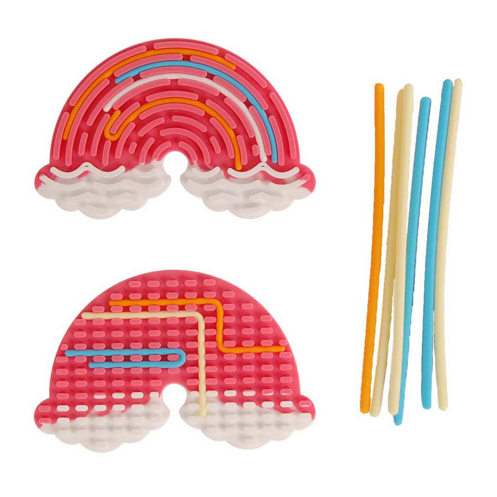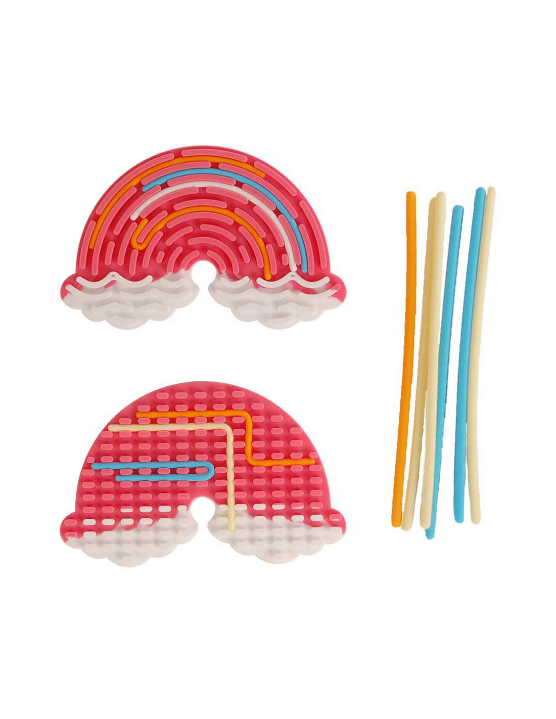 Vingerafdruk doolhof in een regenboog vorm met 12 sticks en een grootte van 18,5 cm.