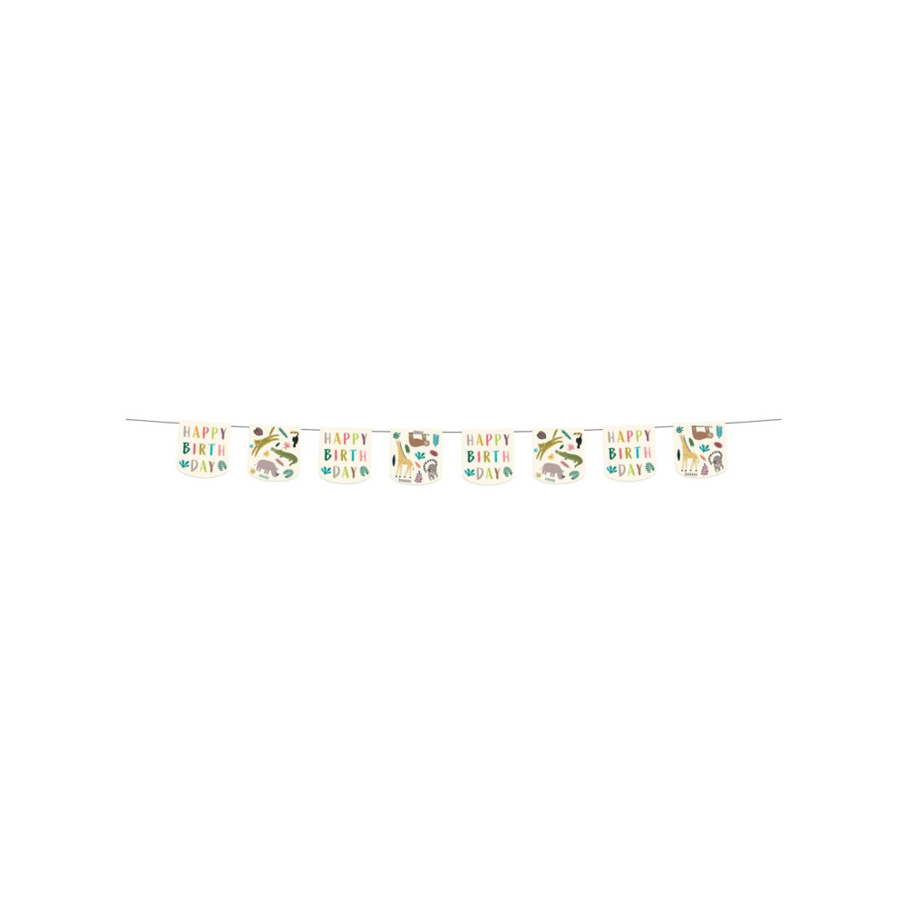 Deze vlaggenlijn met dierenthema is 6 meter lang met 12 vlaggetjes van 18x21 cm. Het artikel is gemaakt van papier en is dubbelzijdig bedrukt.