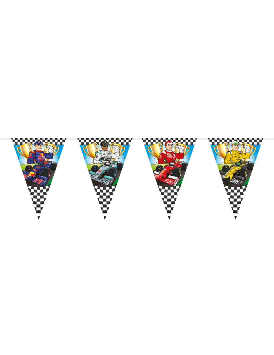 Deze gave vlaggenlijn XL is alleen voor de echte Formule 1 fan! De vlaggetjes zijn extra lang, namelijk 43 cm. Op de vlaggetjes staan verschillende coureurs met hun raceauto's. De vlaggenlijn is 6 m lang.