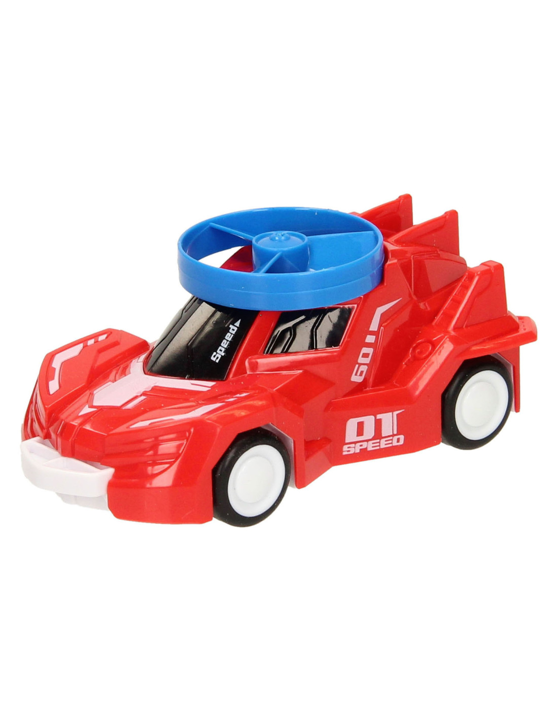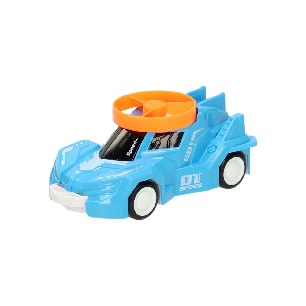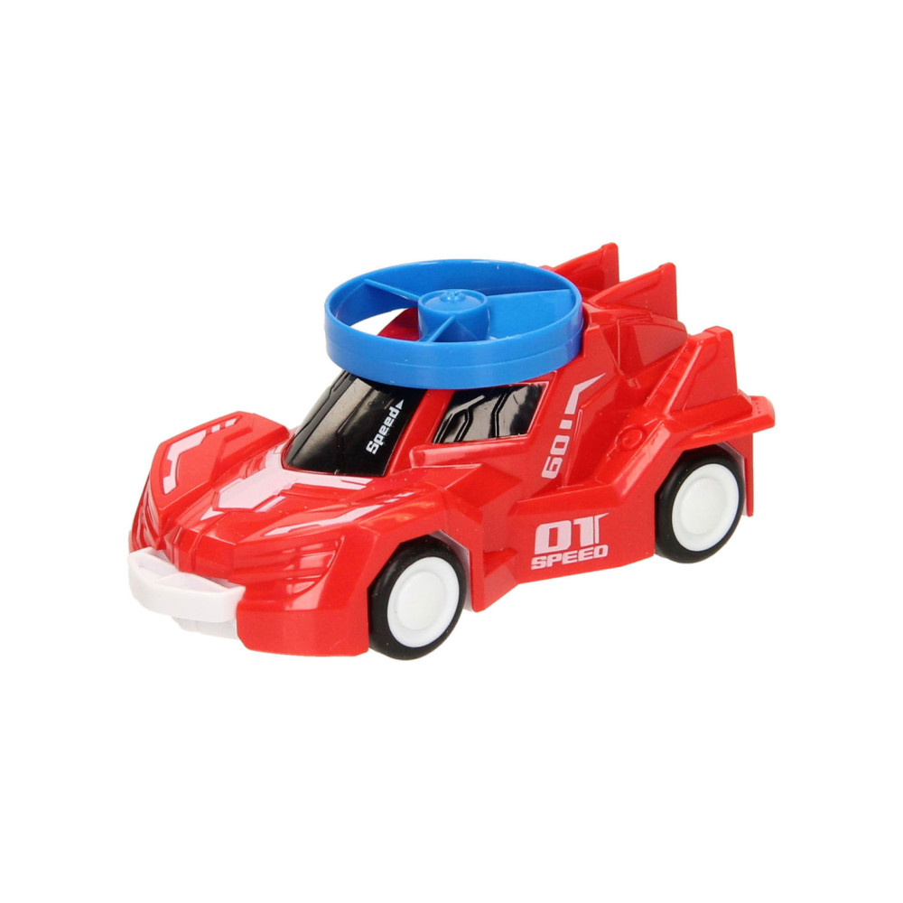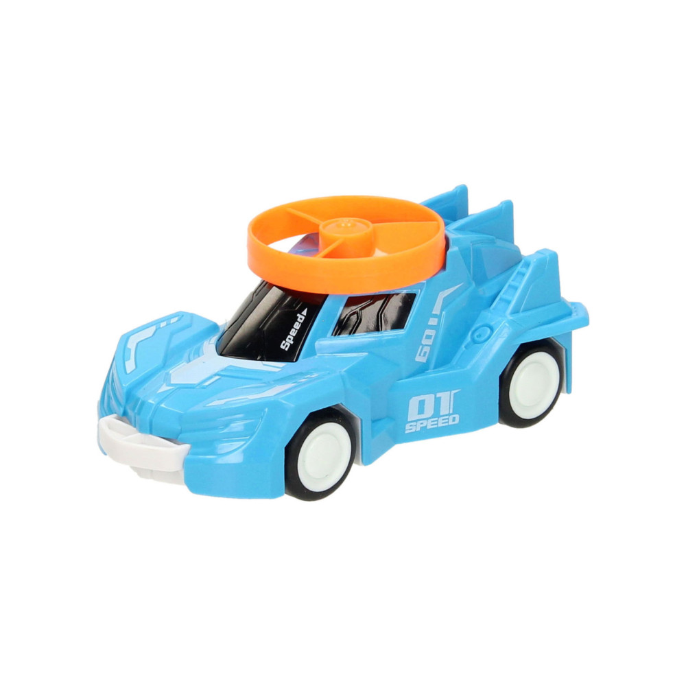 Speelgoedauto met afschietbare propellor. Duw en draai de propellor. Als de voorkant van de auto ergens tegenaan botst, wordt de propellor gelanceerd! Verkrijgbaar in blauw, rood en groen. Gemaakt van kunststof en geschikt vanaf 3 jaar. Afmetingen: 13 x 7 centimeter.