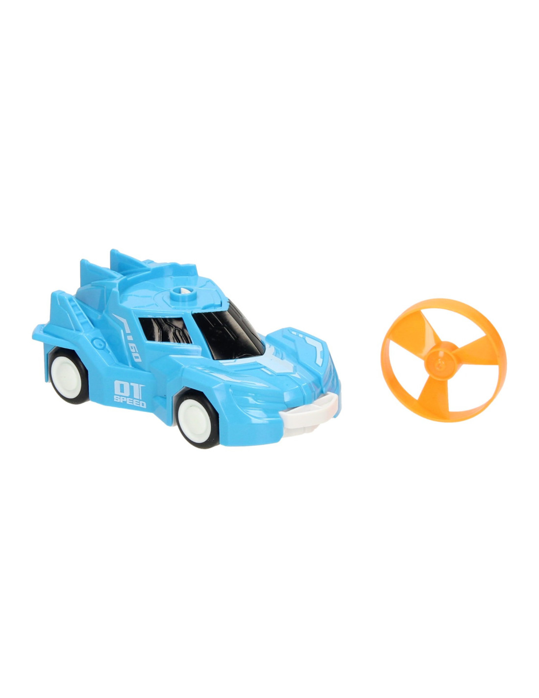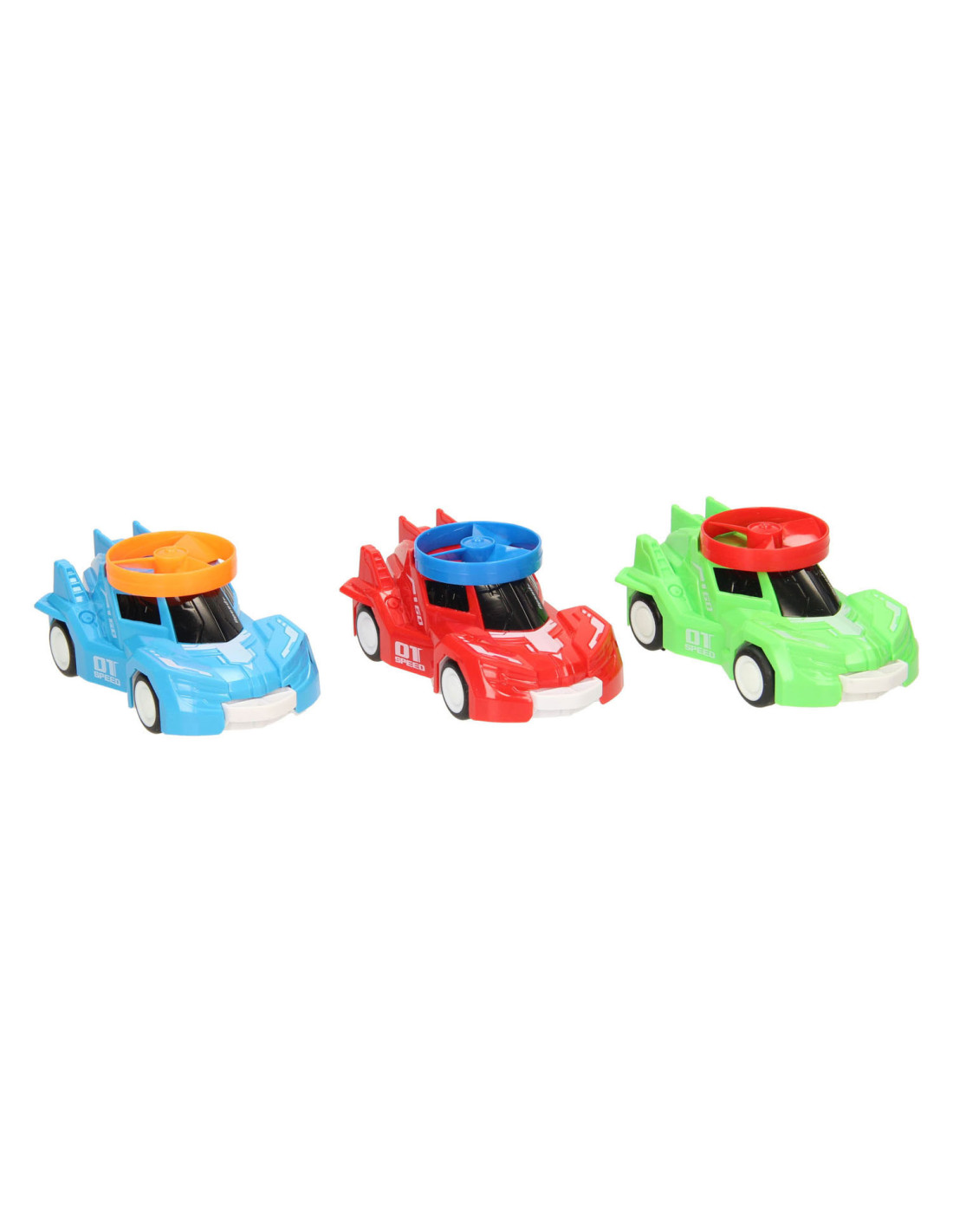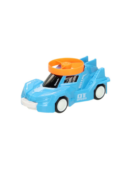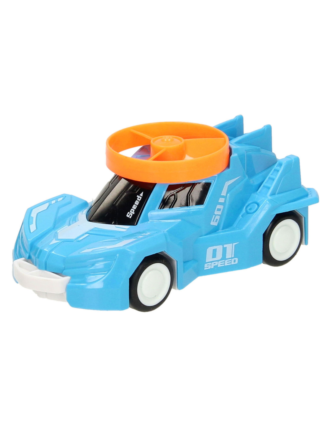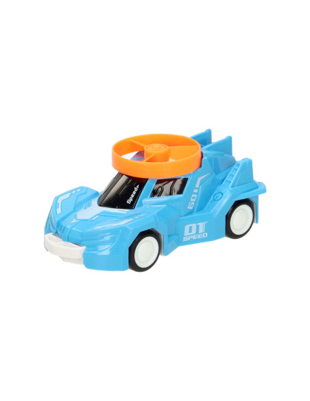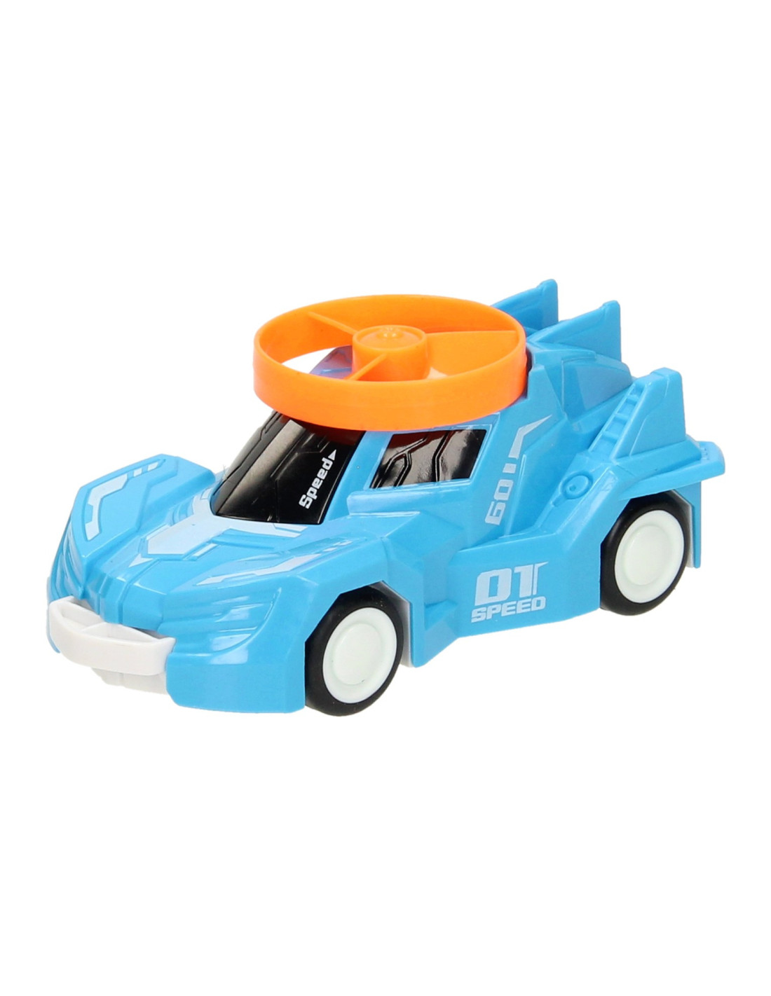Speelgoedauto met afschietbare propellor. Duw en draai de propellor. Als de voorkant van de auto ergens tegenaan botst, wordt de propellor gelanceerd! Verkrijgbaar in blauw, rood en groen. Gemaakt van kunststof en geschikt vanaf 3 jaar. Afmetingen: 13 x 7 centimeter.