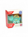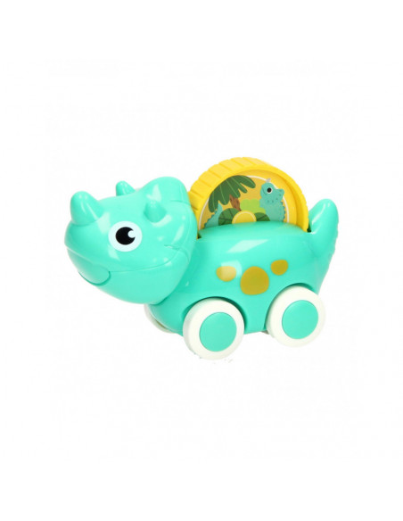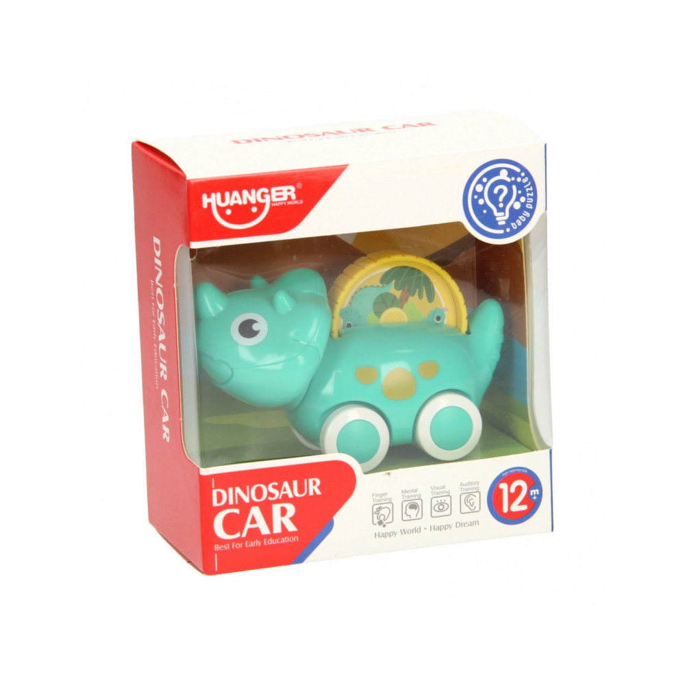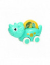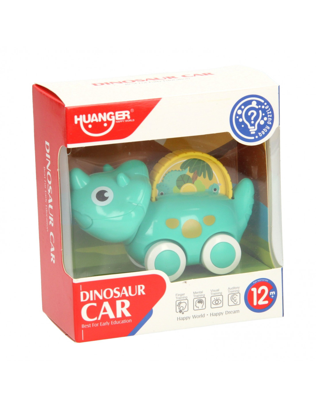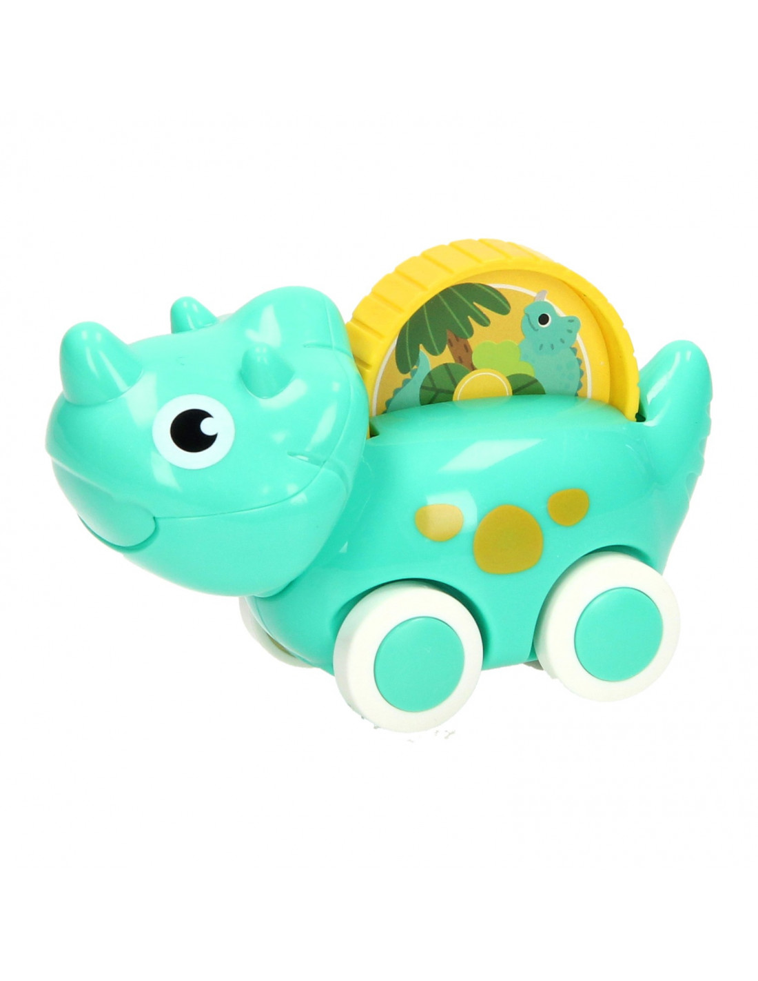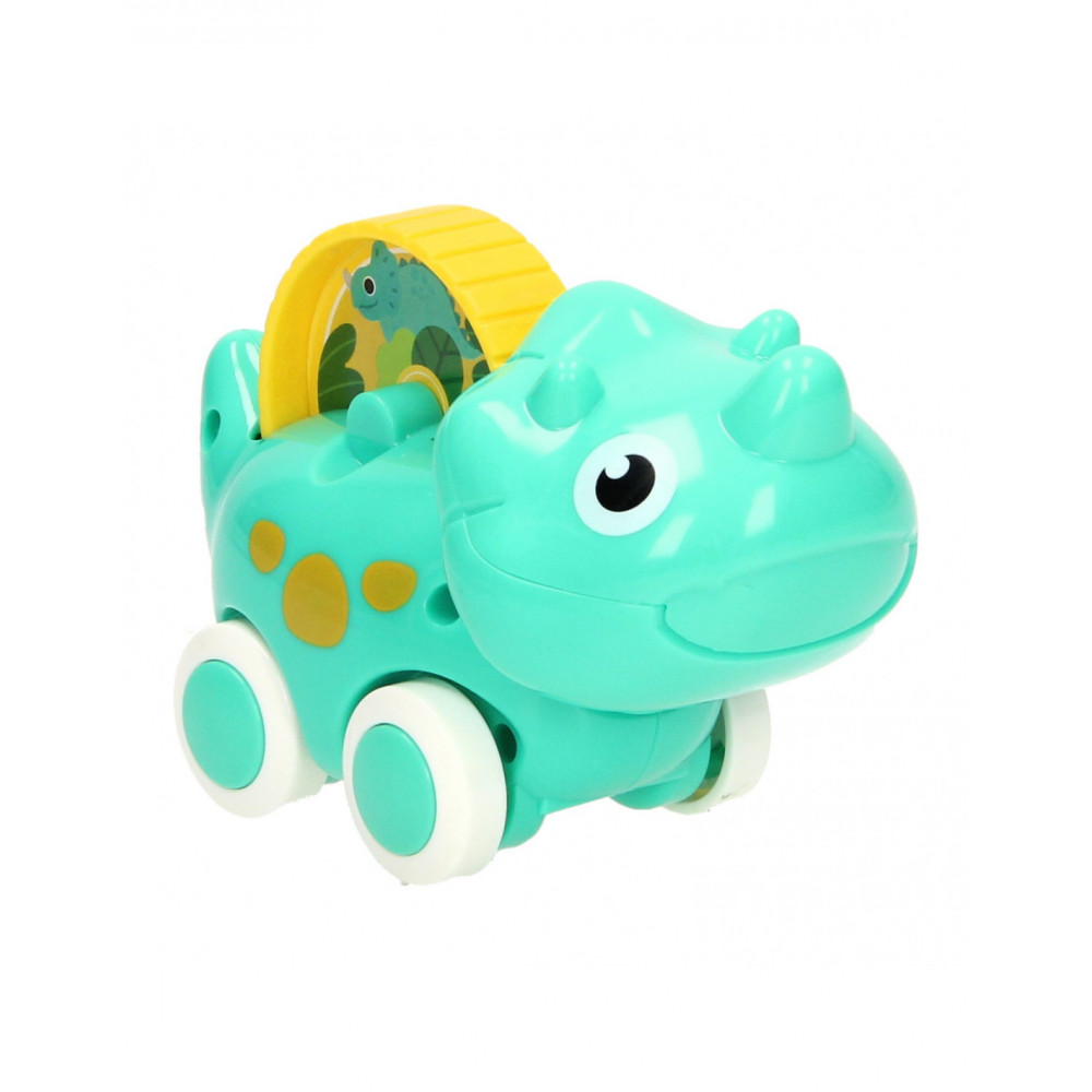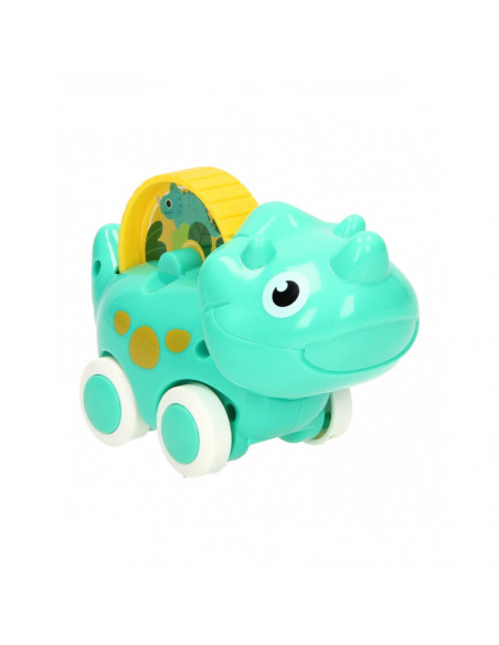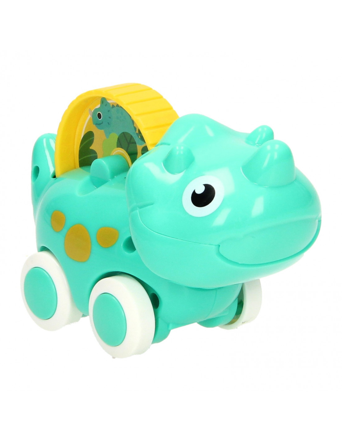Dinosaurusauto van 11 centimeter hoog voor baby's en peuters vanaf 12 maanden. Kleur: zeegroen en geel. 11 centimeter groot.