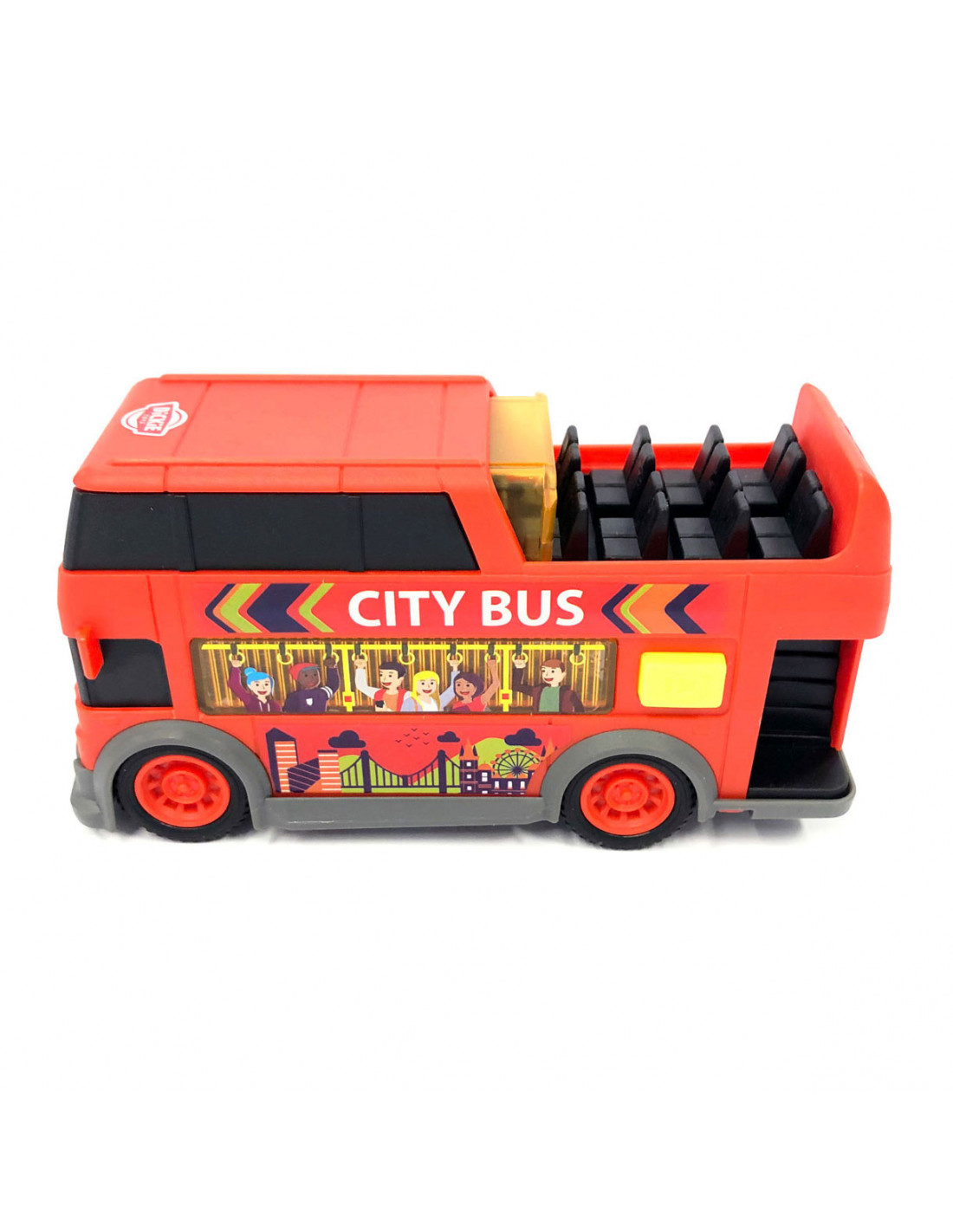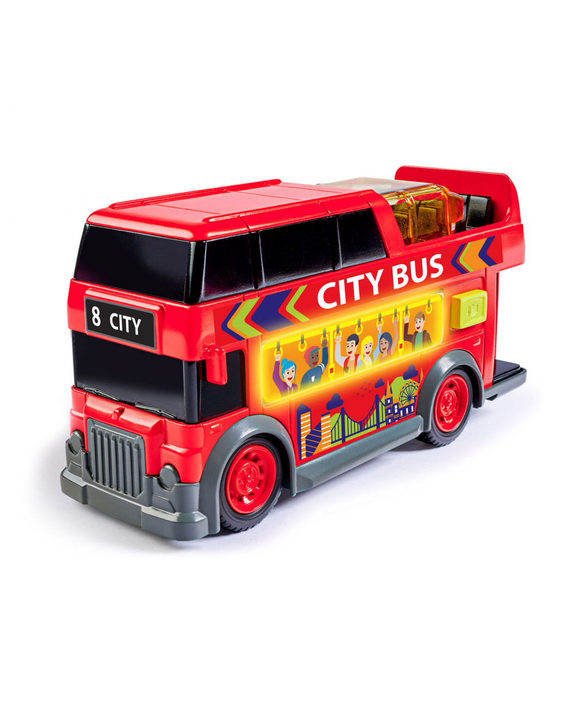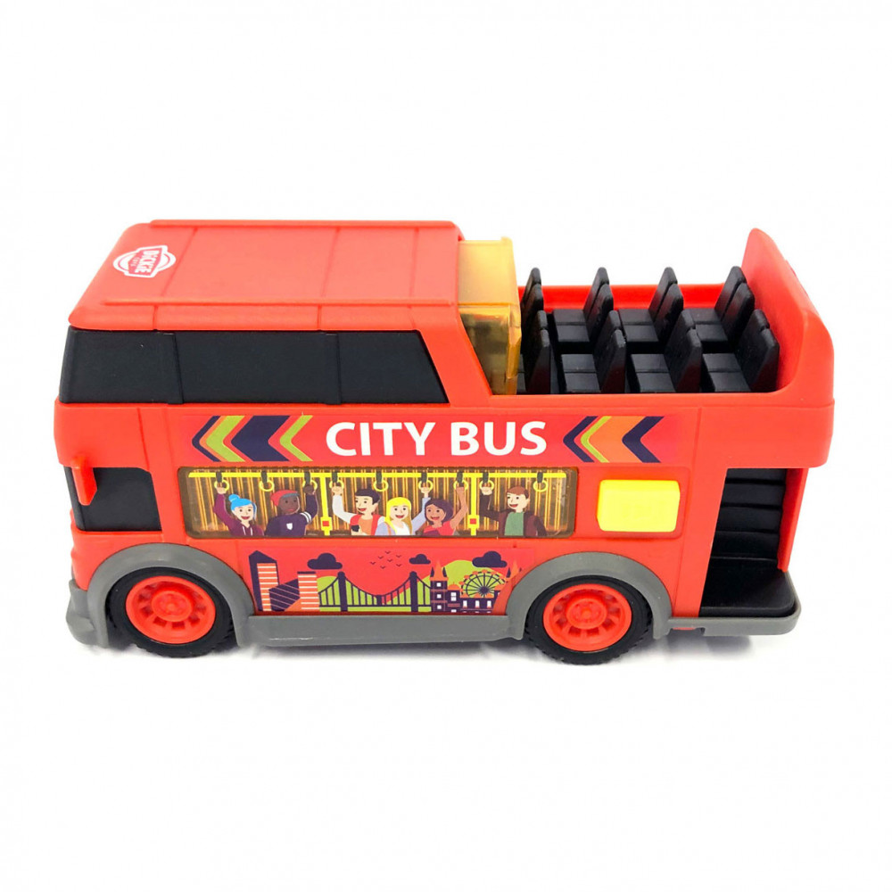 Dickie Toys-Toy Bus-Dubbeldoek voor kinderen van 3 jaar en ouder, met licht- en geluidseffecten, rollende wielen, schuifdak, speelgoed