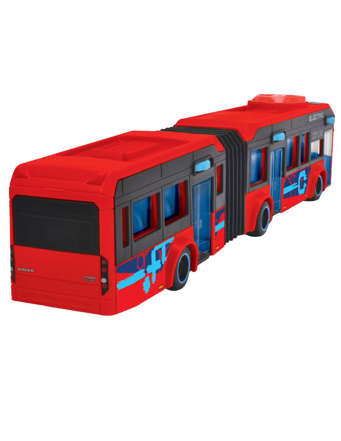 Deze extra lange stadsbus is een must-have voor fans van voertuigen boordevol functies. Officieel gelicenseerd door Volvo, de bus ziet er net zo uit als het originele voertuig en zit boordevol leuke kenmerken en functies. De touringcar is voorzien van draaiende wielen en een ingebouwde stuurfunctie, te bedienen via een draaiend wiel op het dak.