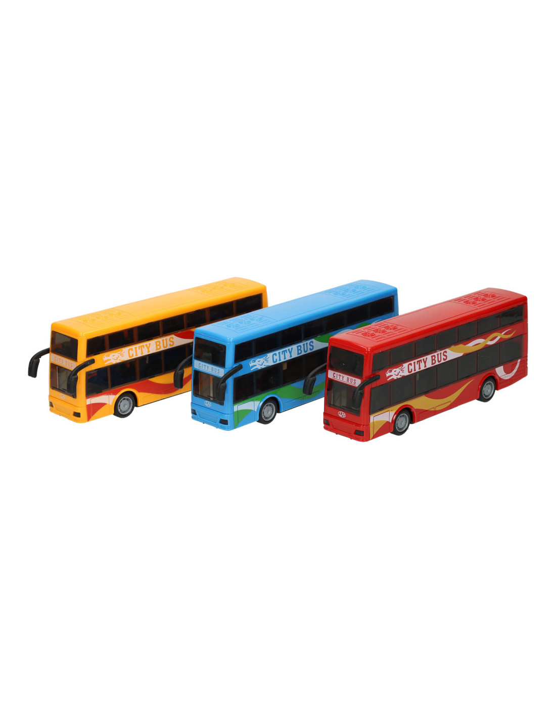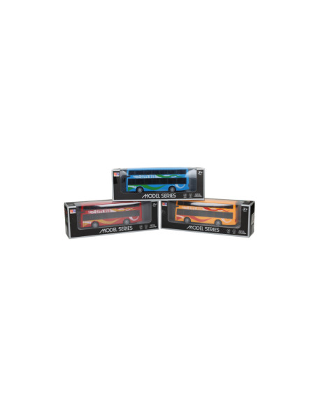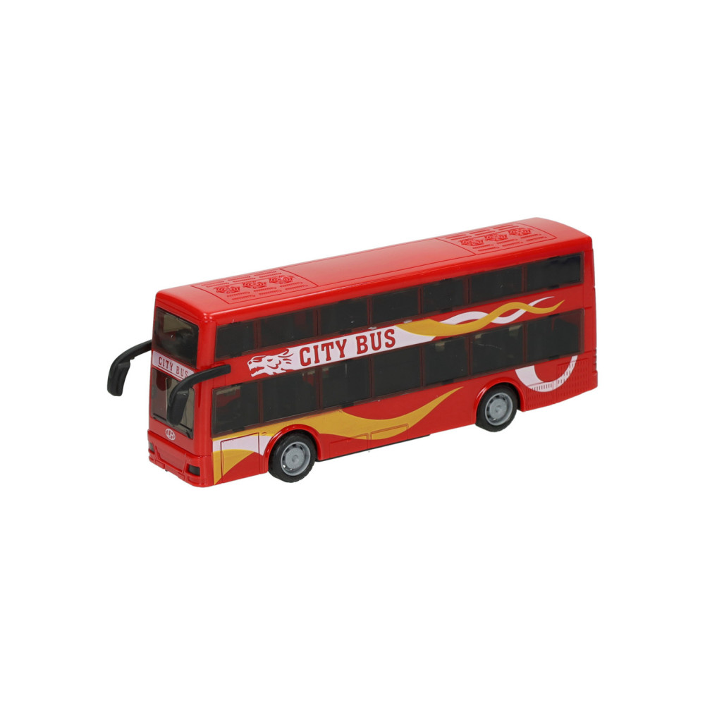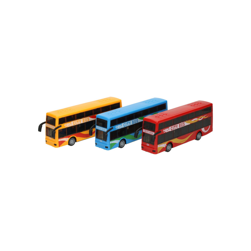 Speelgoed stadsbus met pull-backfunctie. De bus wordt geleverd in rood, blauw of geel. Geschikt vanaf 3 jaar.