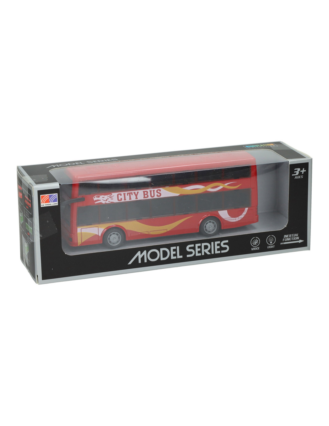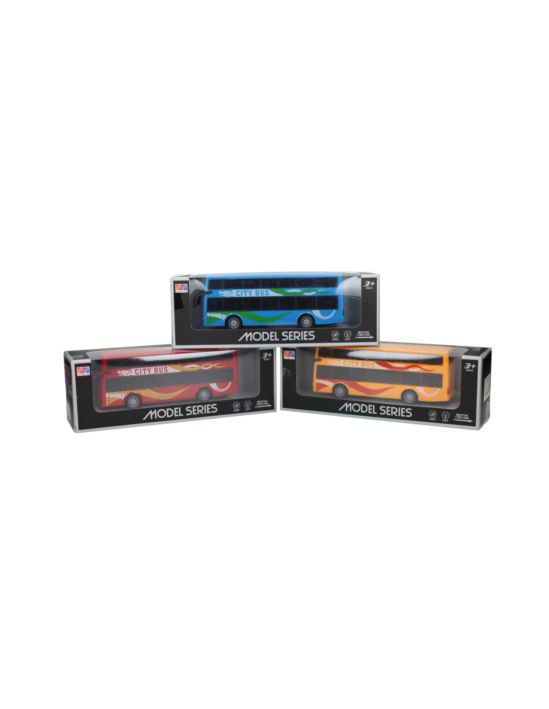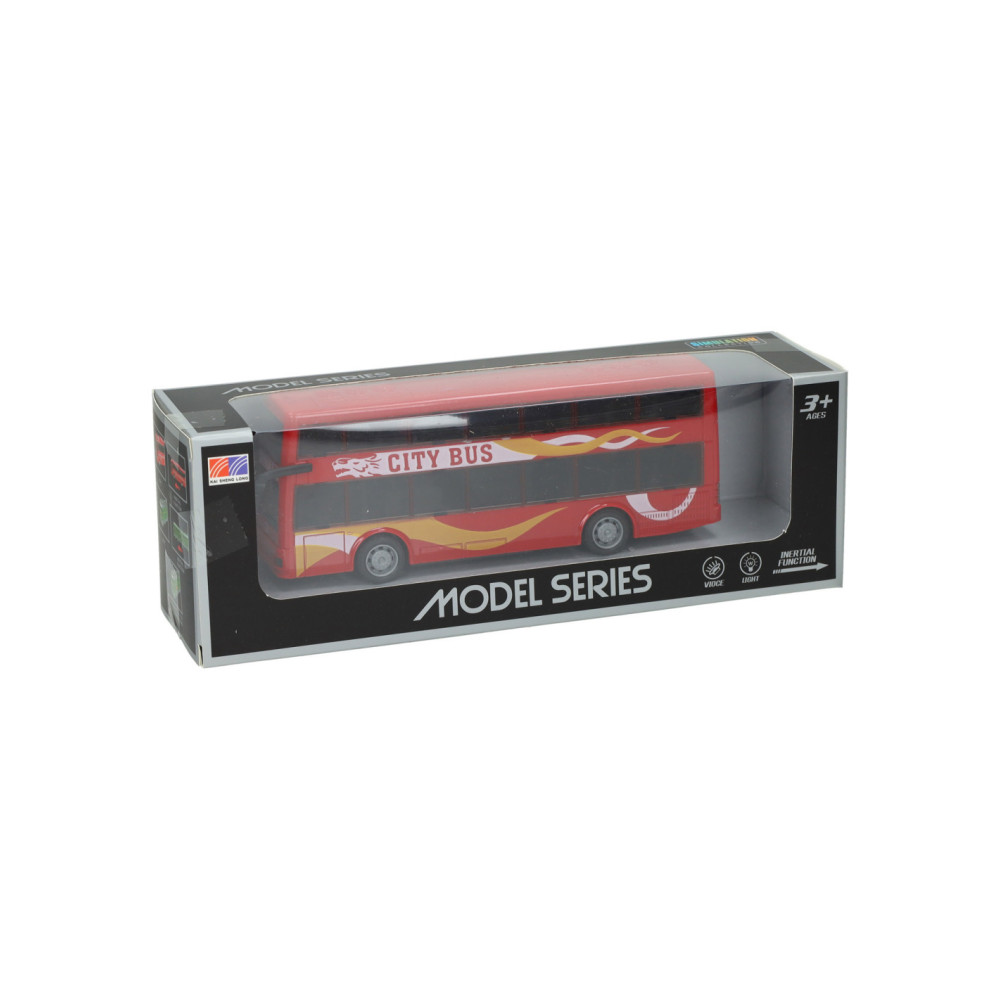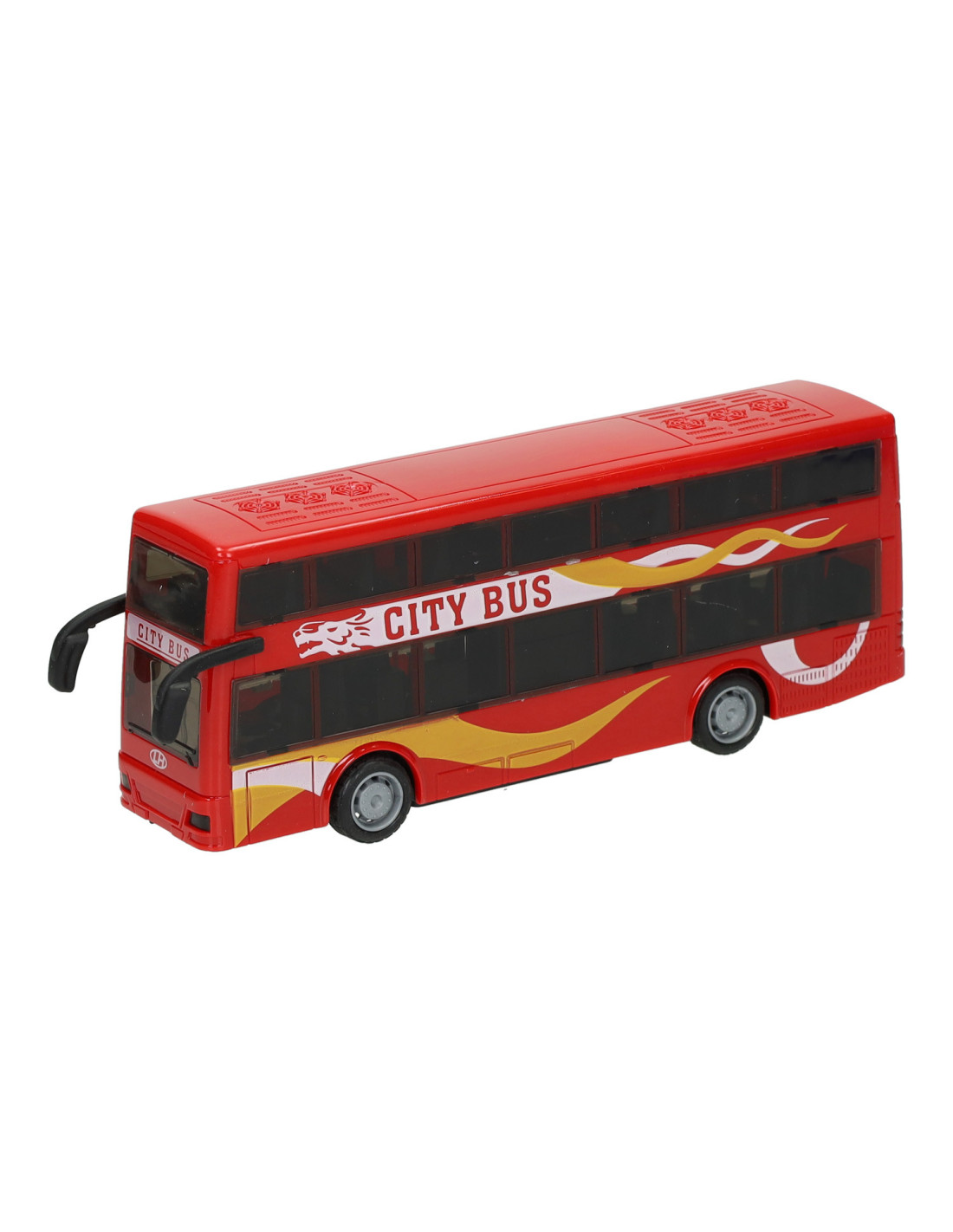 Speelgoed stadsbus met pull-backfunctie. De bus wordt geleverd in rood, blauw of geel. Geschikt vanaf 3 jaar.