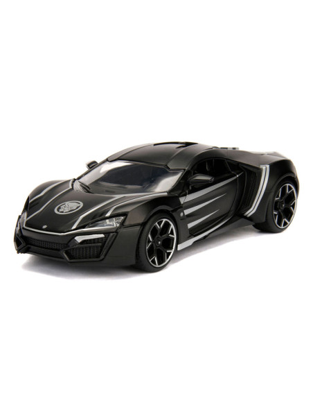 Met stylingaanwijzingen geïnspireerd door de koning van Wakanda, Black Panther, heeft deze Lykan -hyperssport een openingskap, deuren en een verstelbare achterspoiler. Dit voertuig bevat ook een 2,75 Black Panther Gestal Collectable-figuur en is zeker een hoogtepunt in elke voertuigcollectie!