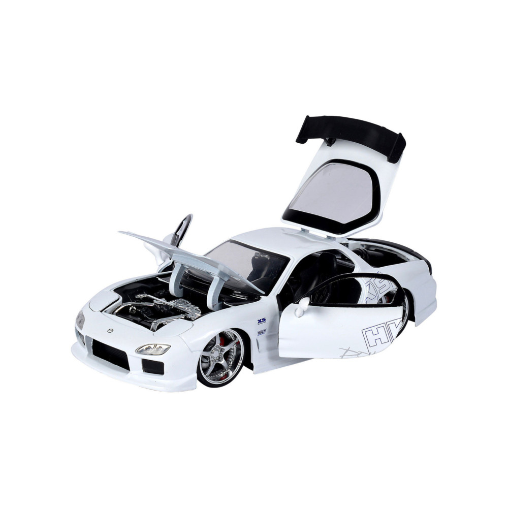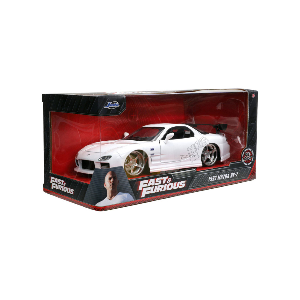 Geen enkele Fast & Furious-collectie is compleet zonder de iconische Mazda RX-7: Dom's sterk gemodificeerde Mazda RX-7 met stijlkenmerken rechtstreeks uit de Fast & Furious-films! Race naar de finish, want dit voertuig is voorzien van lichtgewicht aerodynamische aanpassingen en hoogwaardige wielen! Verzamel ze allemaal om je eigen snelle team samen te stellen en red de dag! Schaal 1:24.