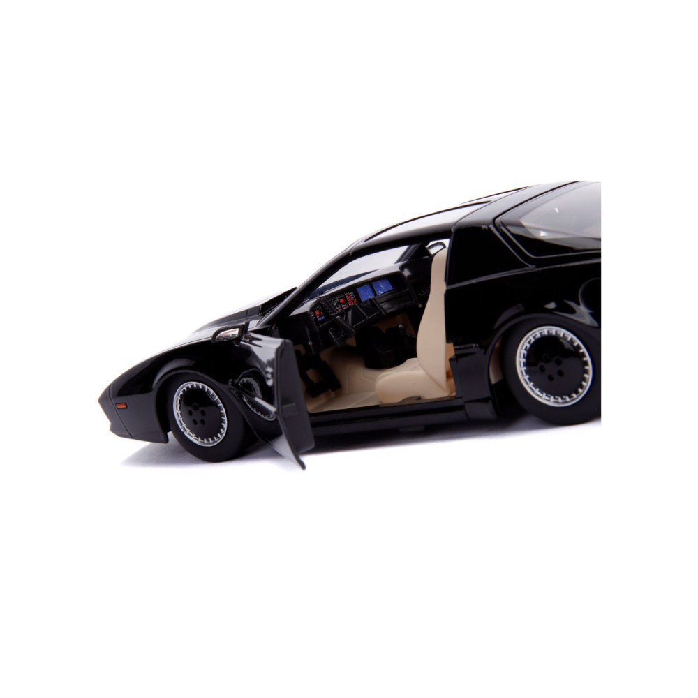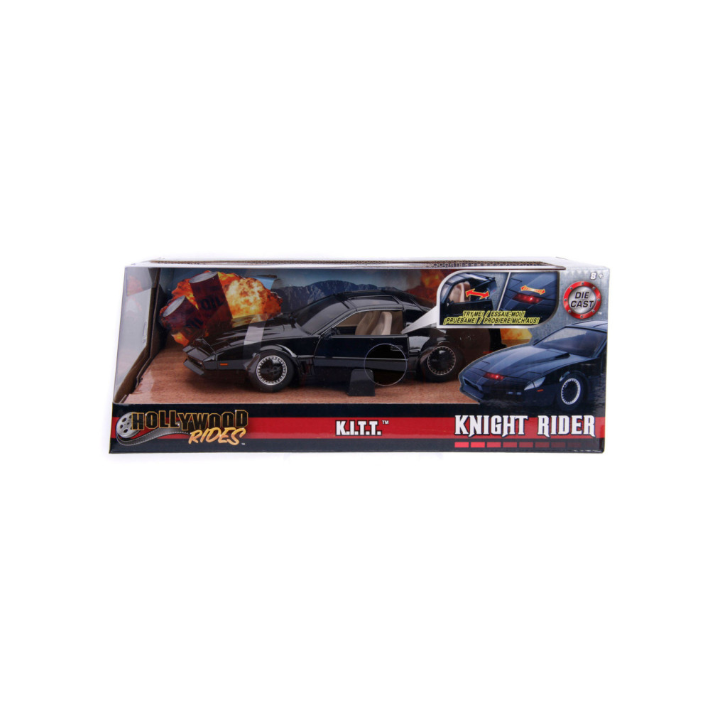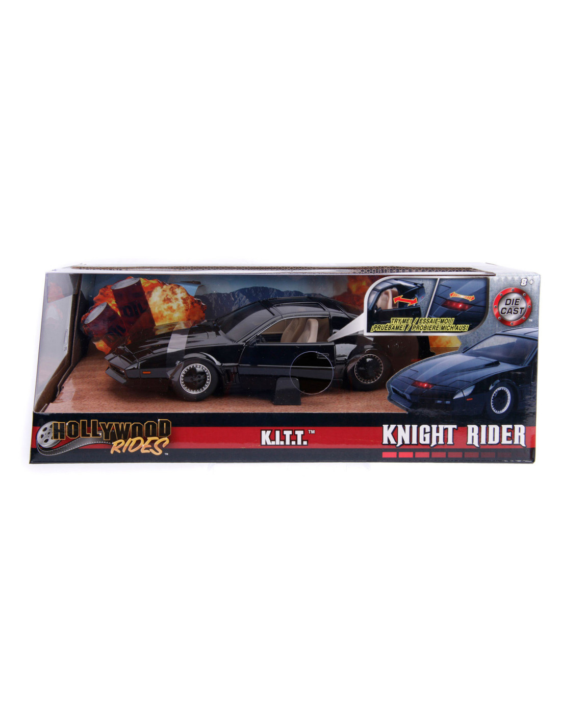 Een eenzame kruisvaarder in een gevaarlijke wereld... Maak kennis met een van de iconische filmvoertuigen in de line-up van Hollywood Rides: KITT! Deze Pontiac Firebird uit 1982, schaal 1:24, heeft een gegoten body, rubberen banden en een verlichte scannerbalk en mag in geen enkele collectie ontbreken! Adviesleeftijd: 8+