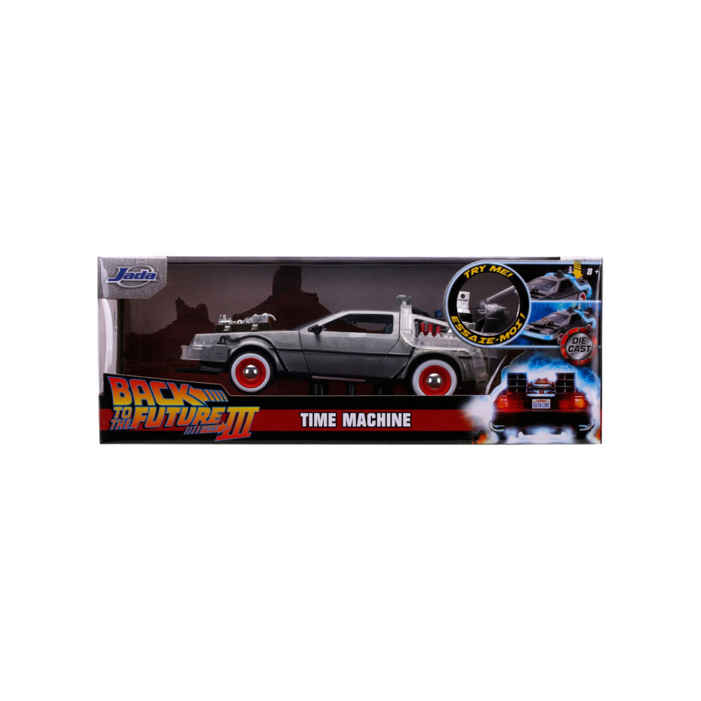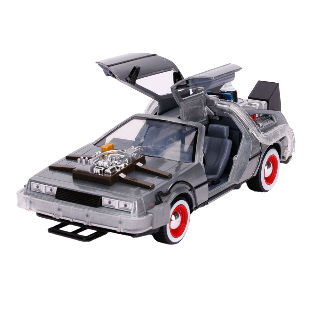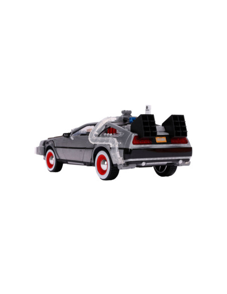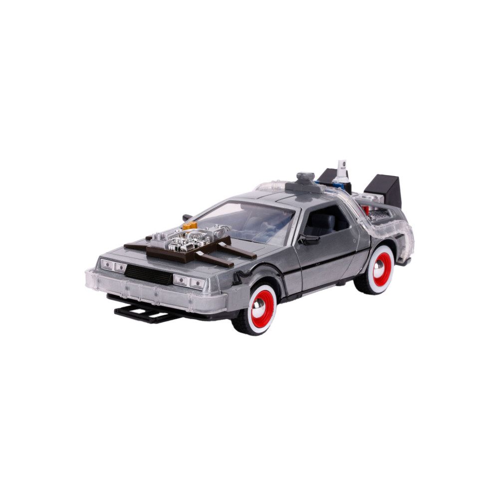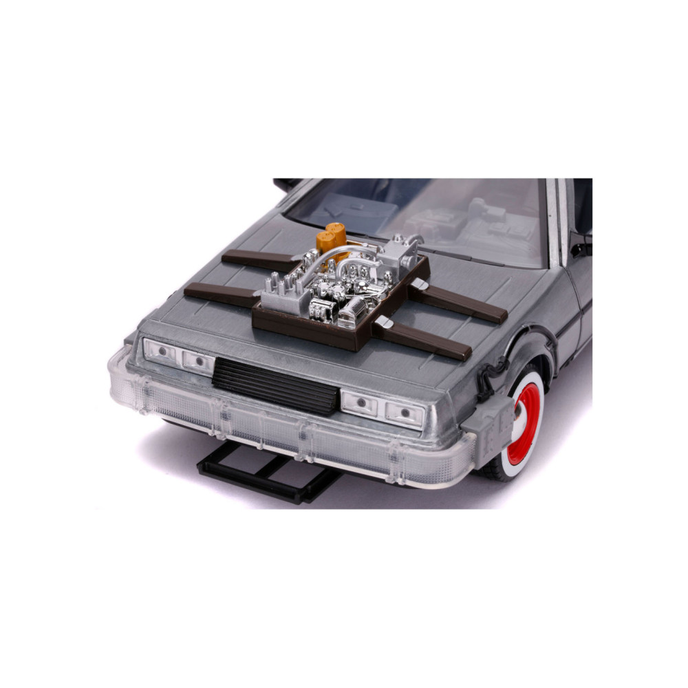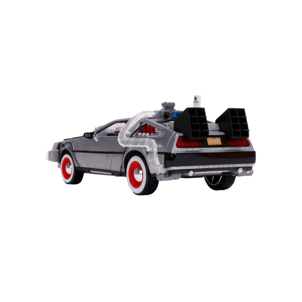 Reis terug in de tijd met een van de meest iconische voertuigen uit de line-up van Hollywood Rides: de Time Machine zoals te zien in Back to the Future (1989). Met een gegoten carrosserie, verlichtingsfunctie en zweefmodus is dit voertuig op schaal 1:24 een must-have in elke verzameling!