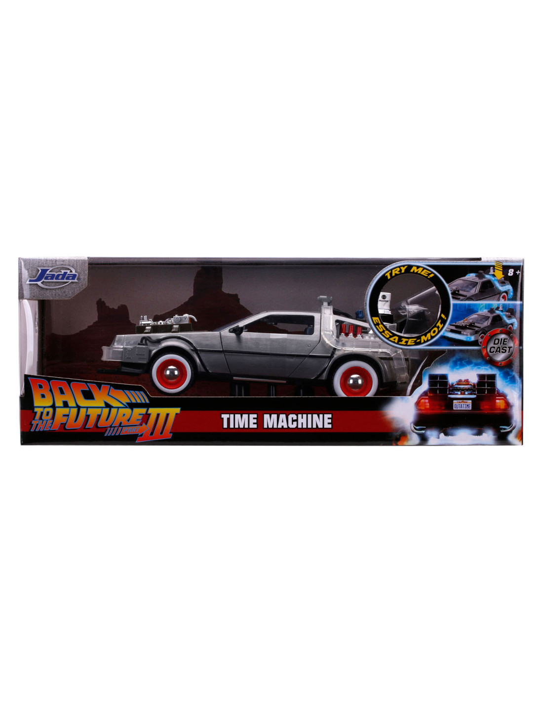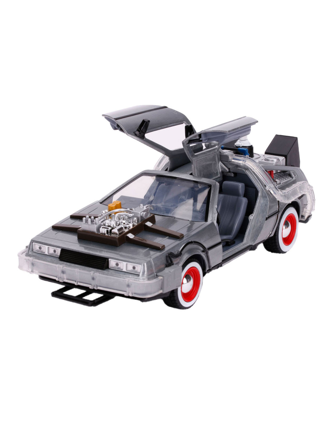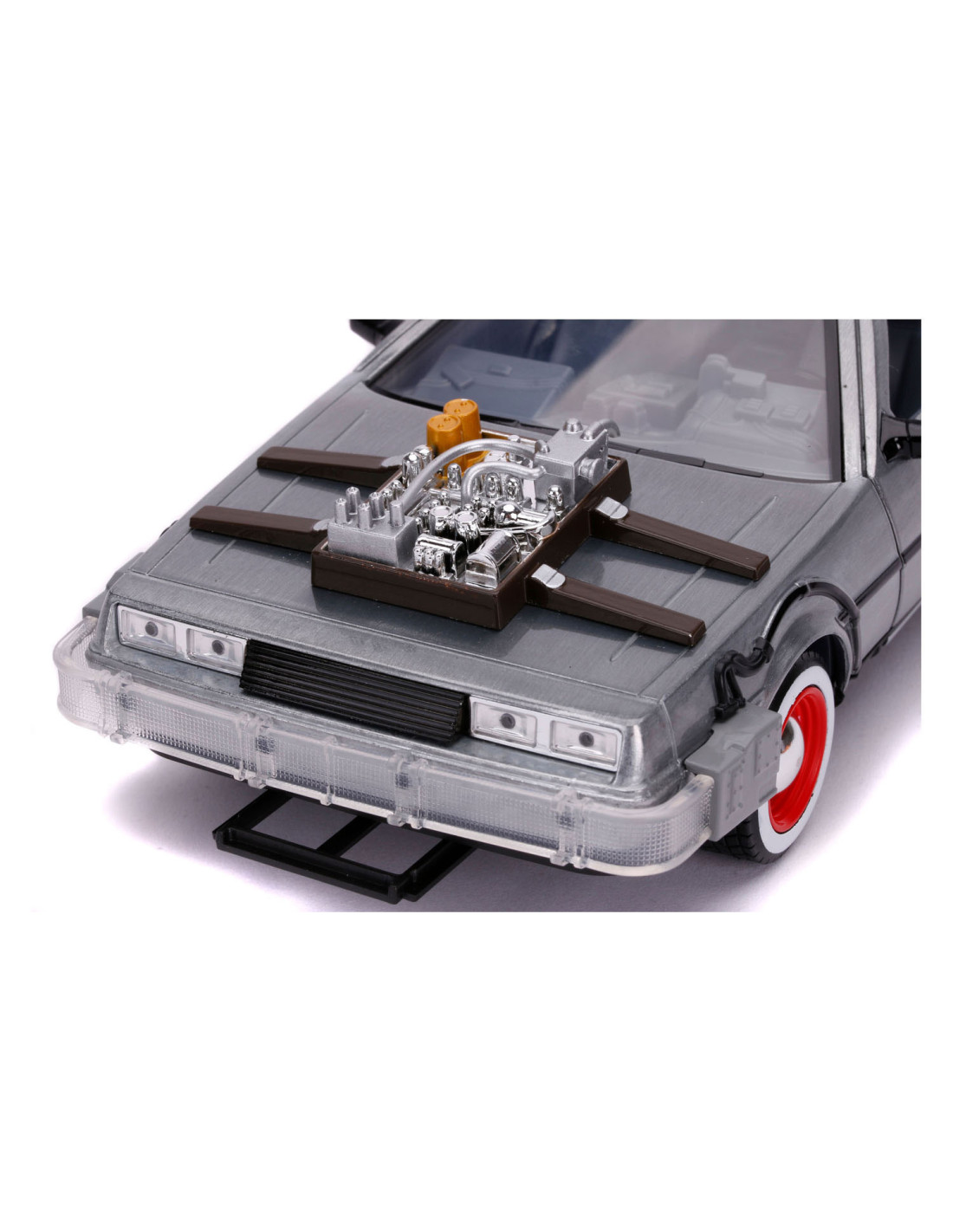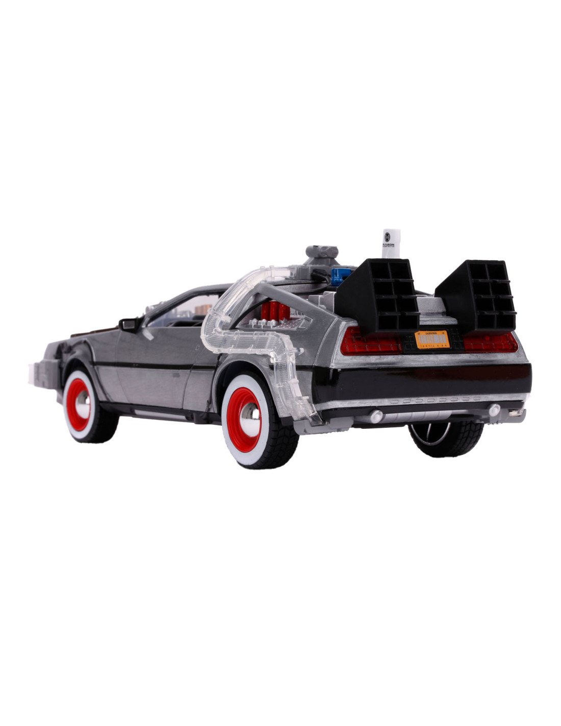 Reis terug in de tijd met een van de meest iconische voertuigen uit de line-up van Hollywood Rides: de Time Machine zoals te zien in Back to the Future (1989). Met een gegoten carrosserie, verlichtingsfunctie en zweefmodus is dit voertuig op schaal 1:24 een must-have in elke verzameling!