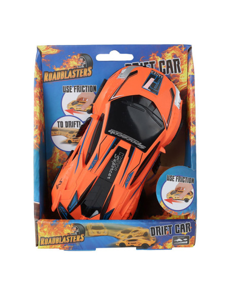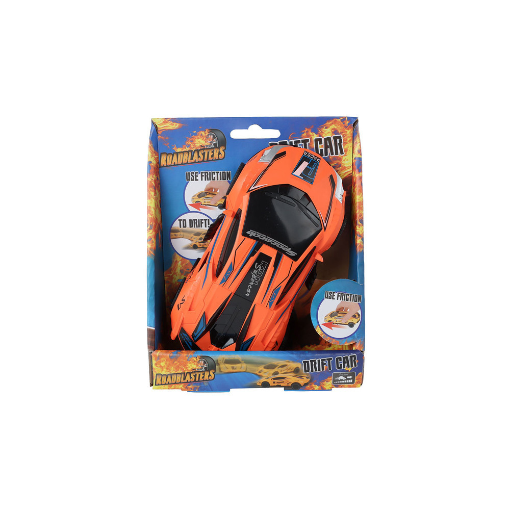 Road Blasters drift raceauto met frictie. De auto is 16 centimeter groot en verkrijgbaar in blauw, geel, rood en groen. Geschikt voor kinderen van 3 jaar en ouder.