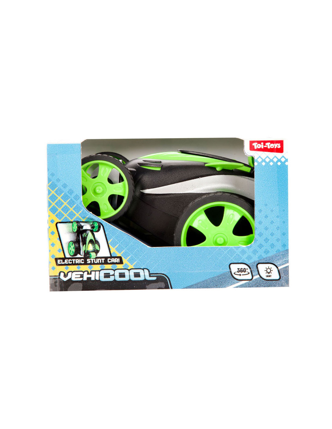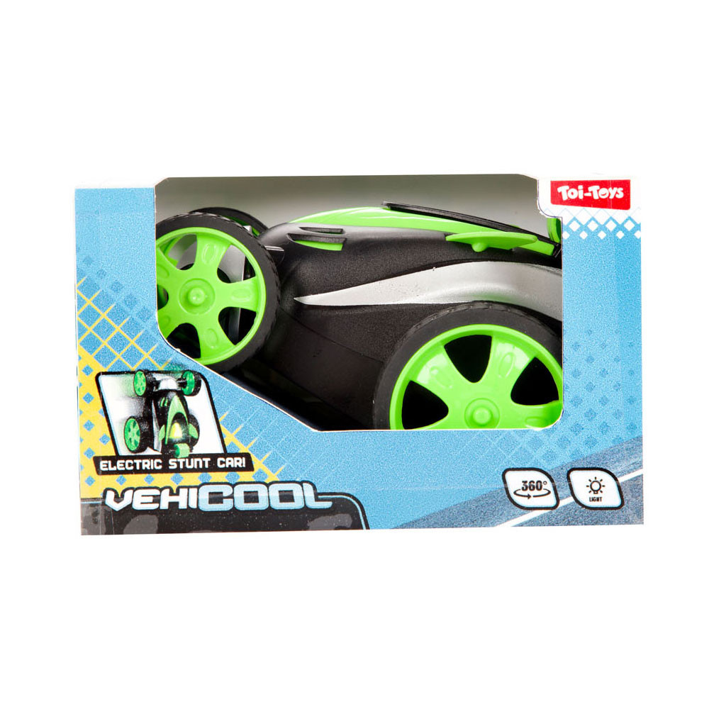 Vehicool elektrische stuntauto met 360 graden stuntactie en lichteffect. Verkrijgbaar in rood, blauw en groen. Geschikt voor kinderen van 3 jaar en ouder. Werkt op batterijen (3 x AA, niet inbegrepen).