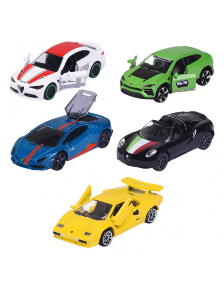 - Pakketinhoud - 1. Alfa Romeo 4C Spider, 2. Lamborghini Countach LP 400, 3. Lamborghini Huracán Avio, 4. Lamborghini Urus, 5. Alfa Romeo Giulia - 7,5 cm lang, metaal/plastic
