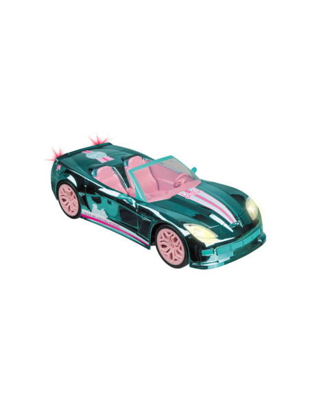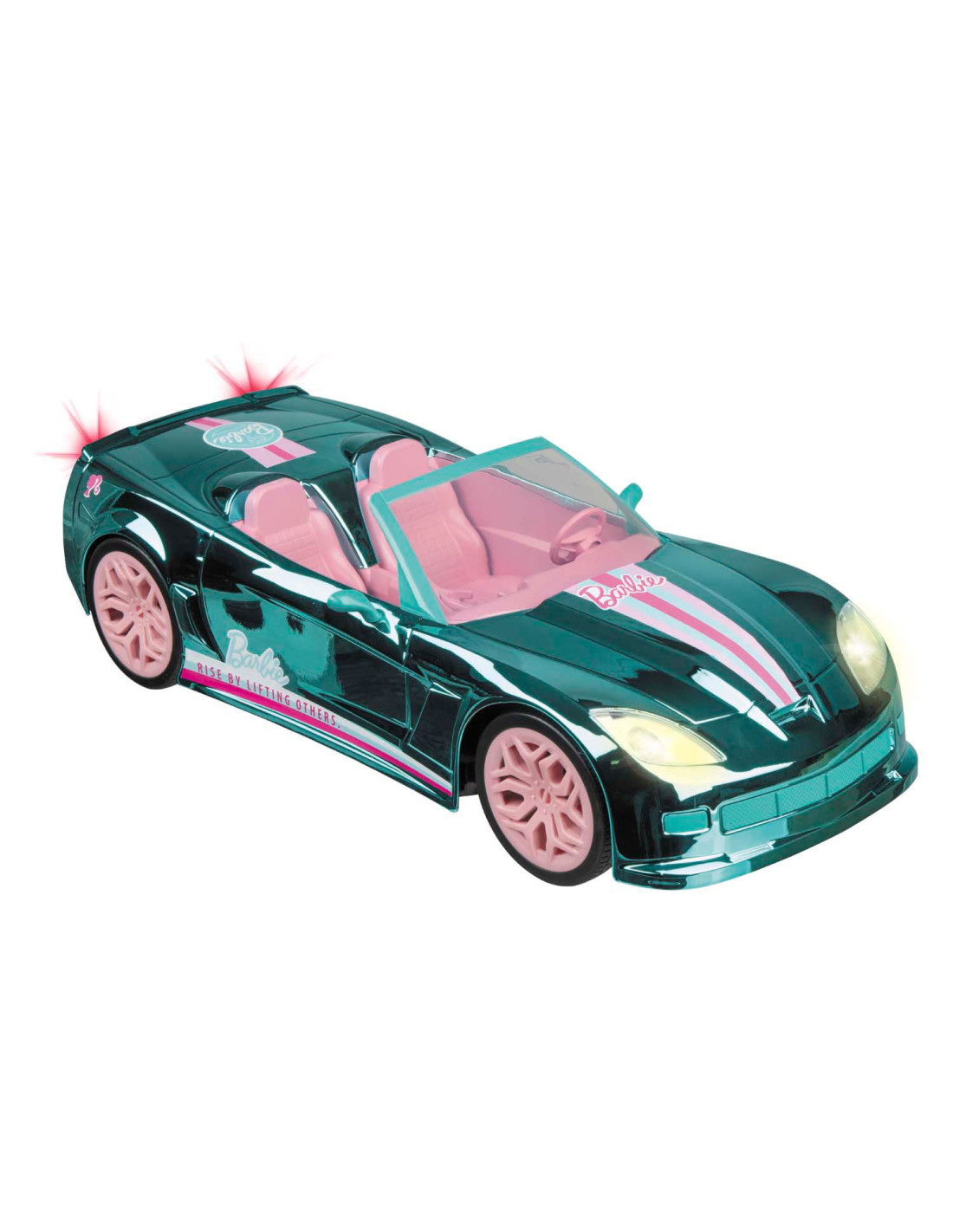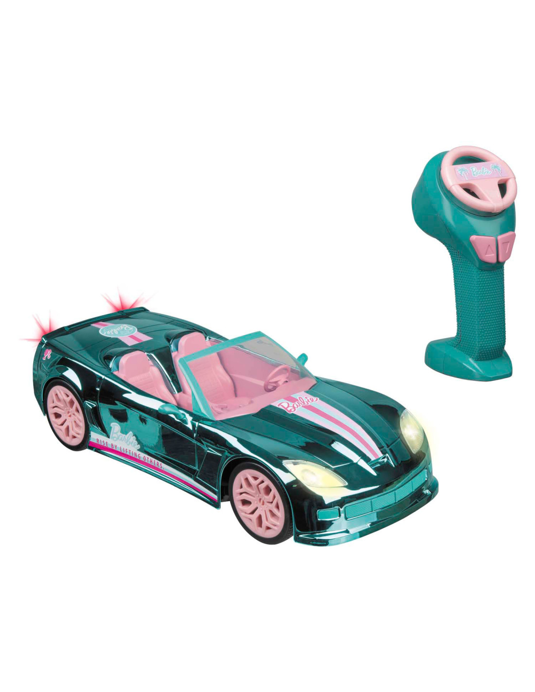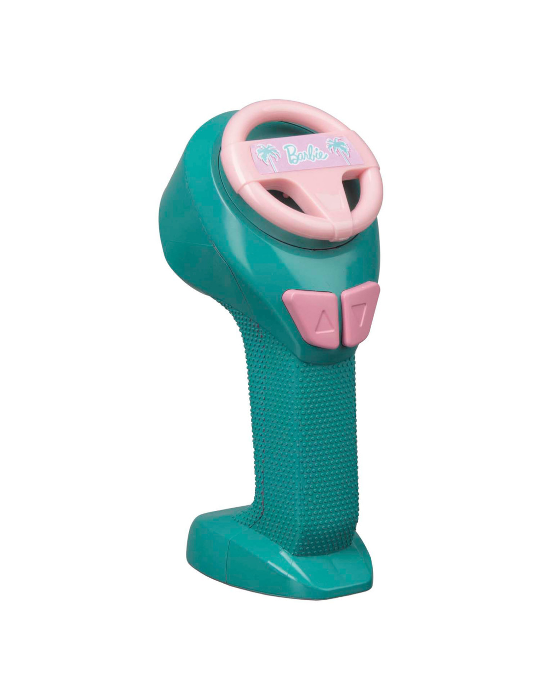 De Barbie Dream Car, een 42,5 cm radiografisch bestuurbare cabriolet met een topsnelheid van 8 km/u en een 2,4 GHz-controller. Geschikt voor kinderen vanaf 3 jaar, met werkende koplampen en een turquoise kleur Exclusief 5 AA- en 2 AAA-batterijen.