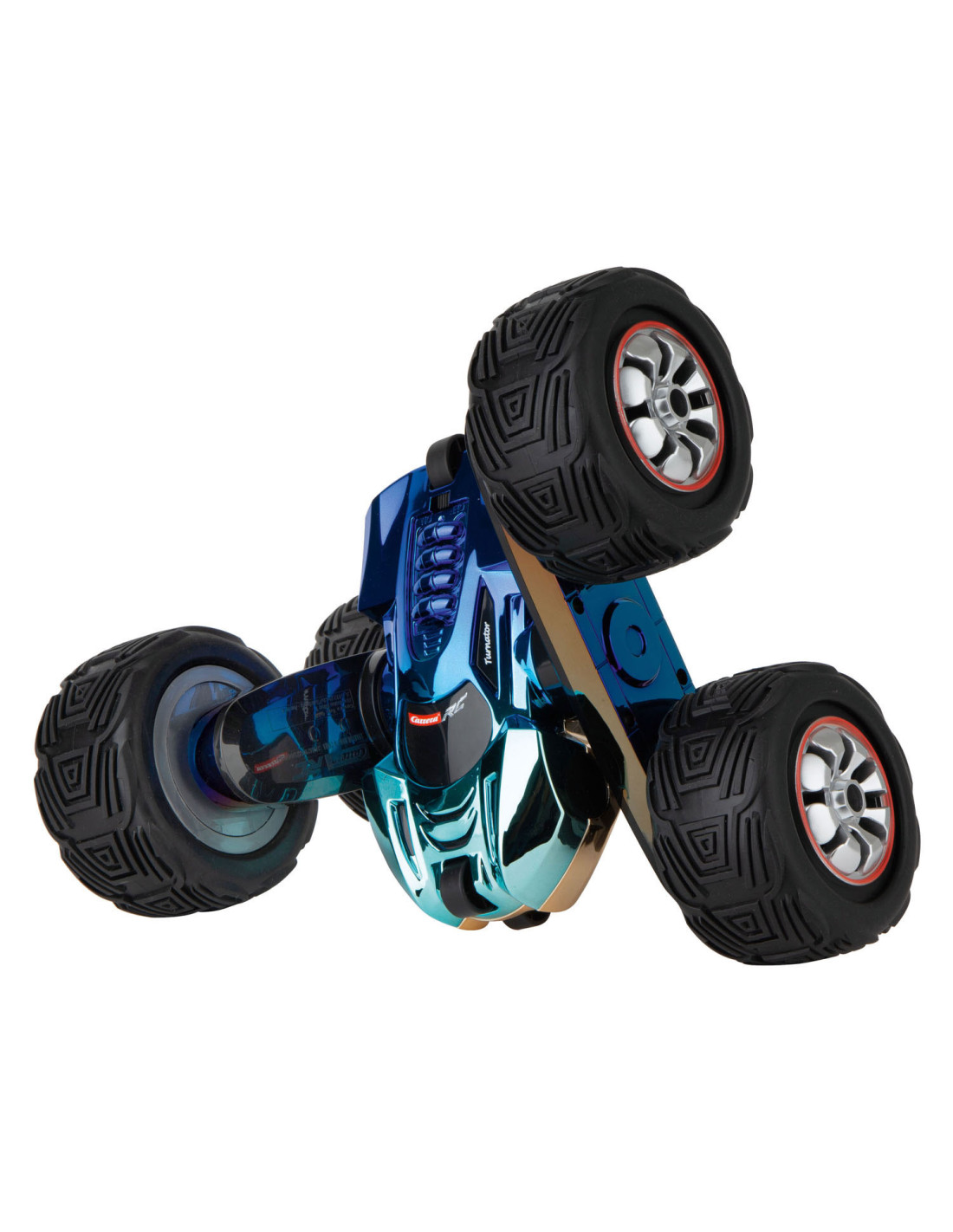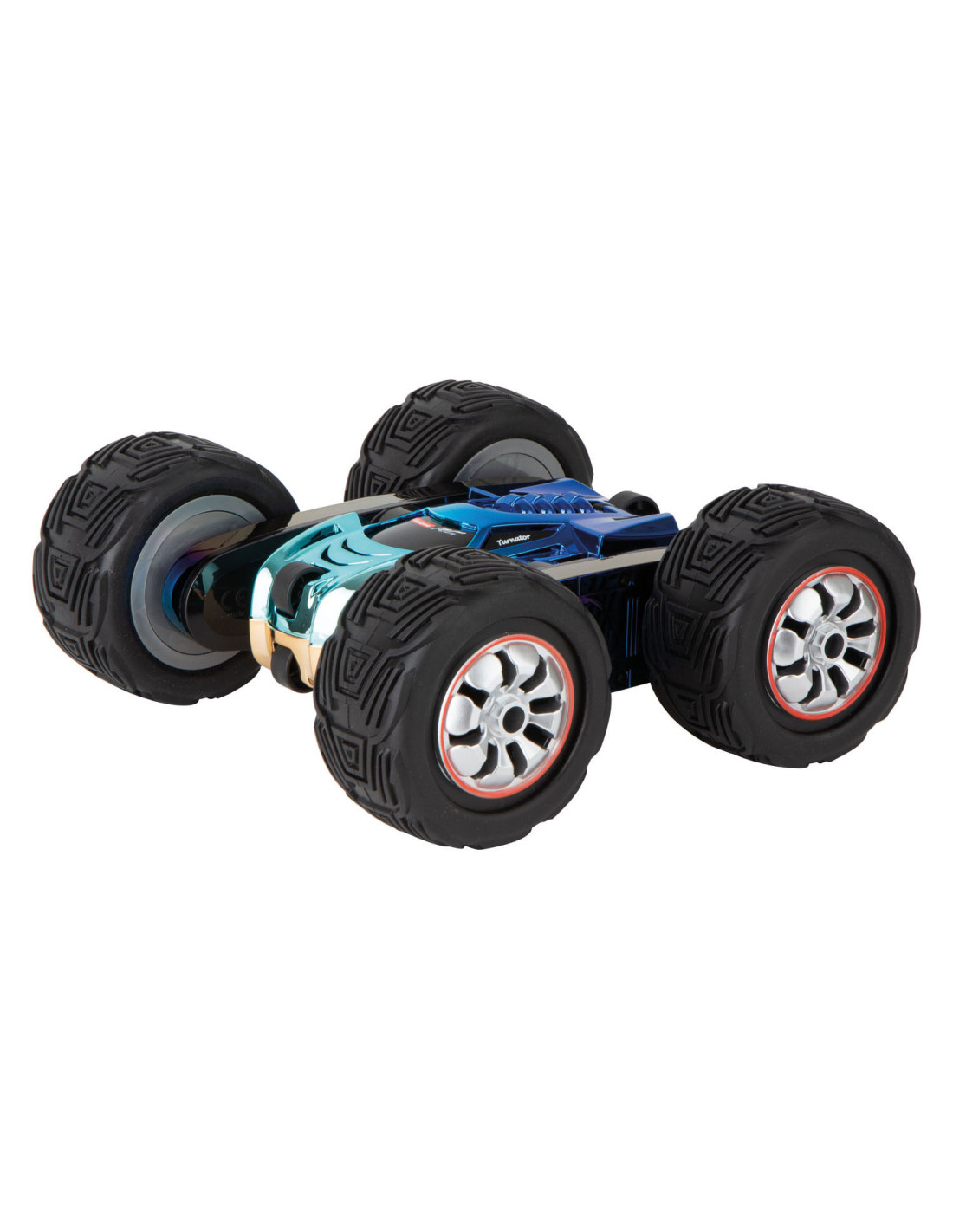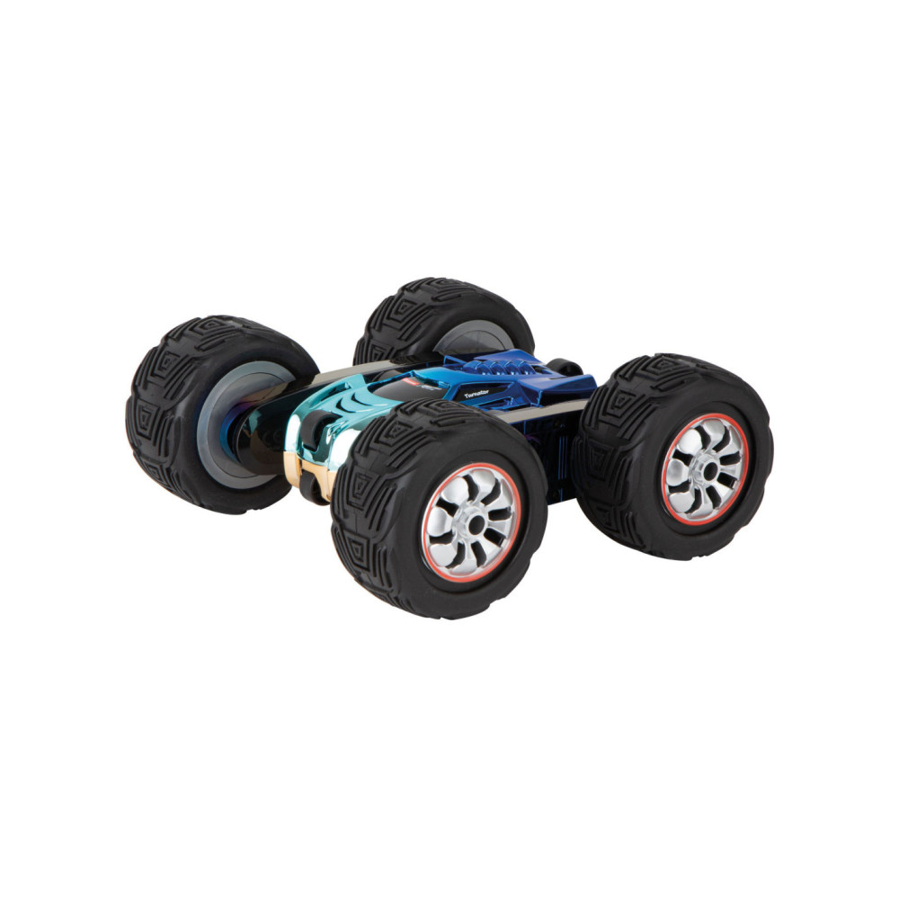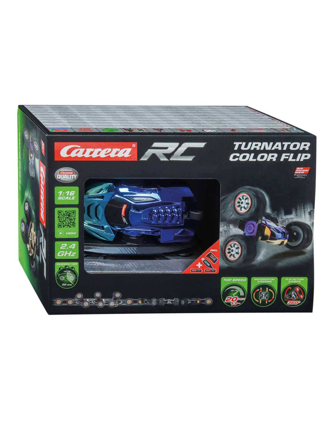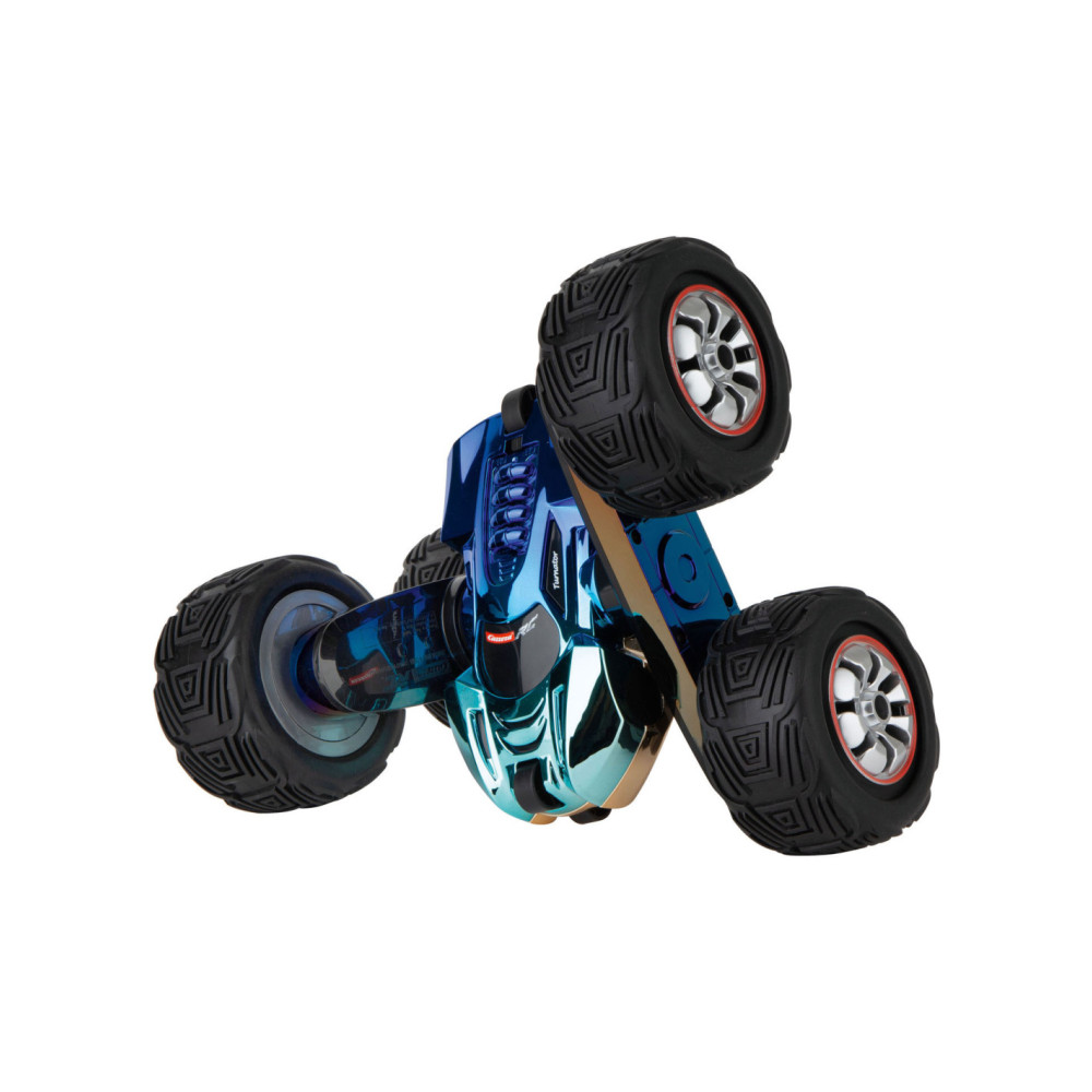 Beleef adembenemende stunts met de Turnator Color Flip! Deze op afstand bestuurbare ACTION STUNT CAR op een schaal van 1:16 inspireert met grandioze salto's en 360° stunts. De kameleoneffectverf verandert van kleur afhankelijk van de beeldhoek, terwijl de LED LIGHT zorgt voor een goede zichtbaarheid 's nachts. Spatwaterdicht en met afzonderlijk bestuurbare assen biedt hij maximaal rijplezier met een TOP-snelheid van 20 km/u. Dankzij de robuuste carrosserie, het full-suspension chassis en de oplaadbare hightech LiFePo BATTERY is hij duurzaam en klaar voor veel actie. Perfect als cadeau voor kinderen en actiefans van 6 jaar en ouder.