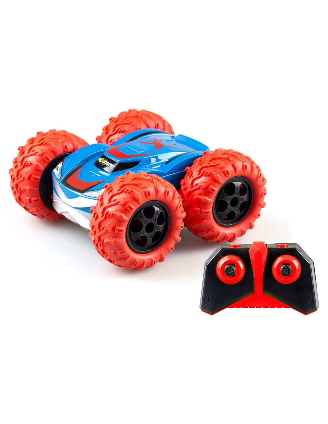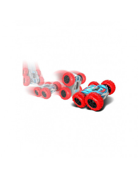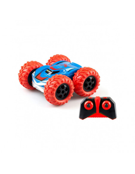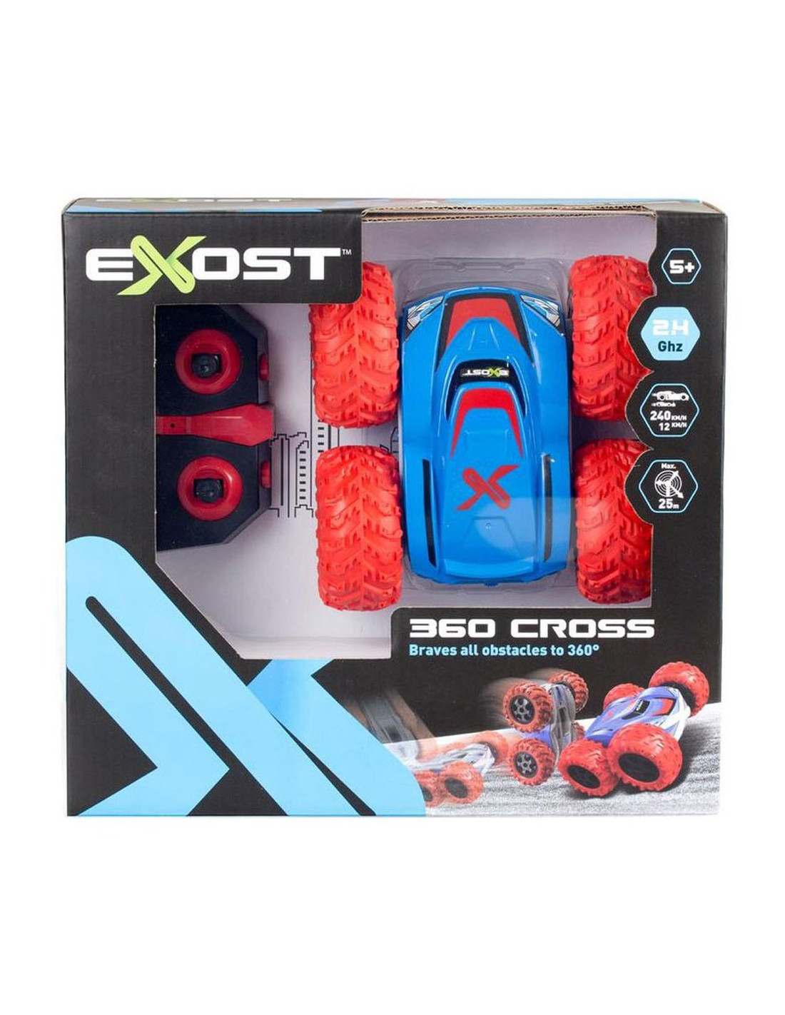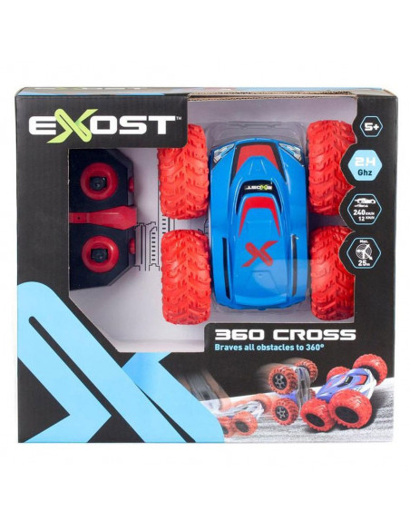De nieuwe Exost RC 360 Cross met zijn rode banden kan 360 graden spinnen, een flip maken en op twee kanten rijden. Bestuur deze stuntauto eenvoudig met de controller. De grote, ultra duurzame banden kunnen met gemak alle ondergronden aan! De RC 360 Cross is voorzien van twee verschillende body designs. Snelheid: 12 km/h Schaal: 1:18. Bereik: 25 meter. Afmeting verpakking: 28x10x26 cm (lxbxh). Batterij informatie: