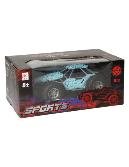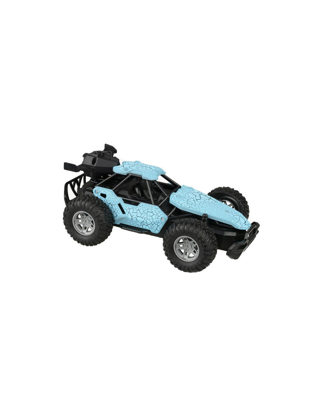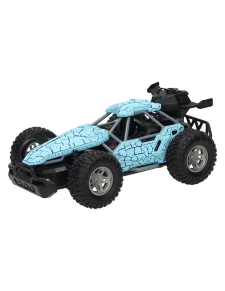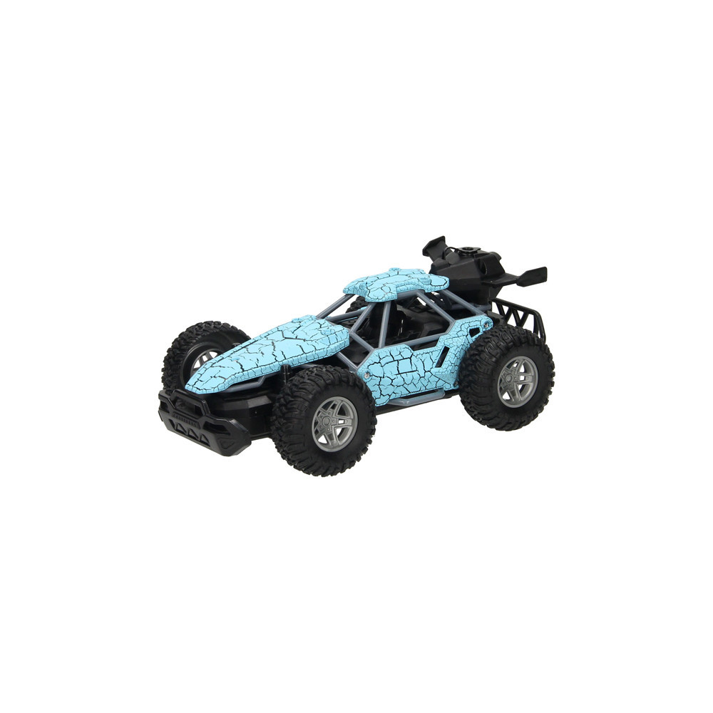 Op afstand bestuurbare auto (blauw) met rookfunctie. Dankzij de stevige profielbanden kan de auto op verschillende terreinen rijden. De auto is 23 x 15 centimeter groot en geschikt voor kinderen vanaf 8 jaar oud. Exclusief batterijen (5x AA). Met het handige flesje kun je de auto vullen om de stoomfunctie te activeren.
