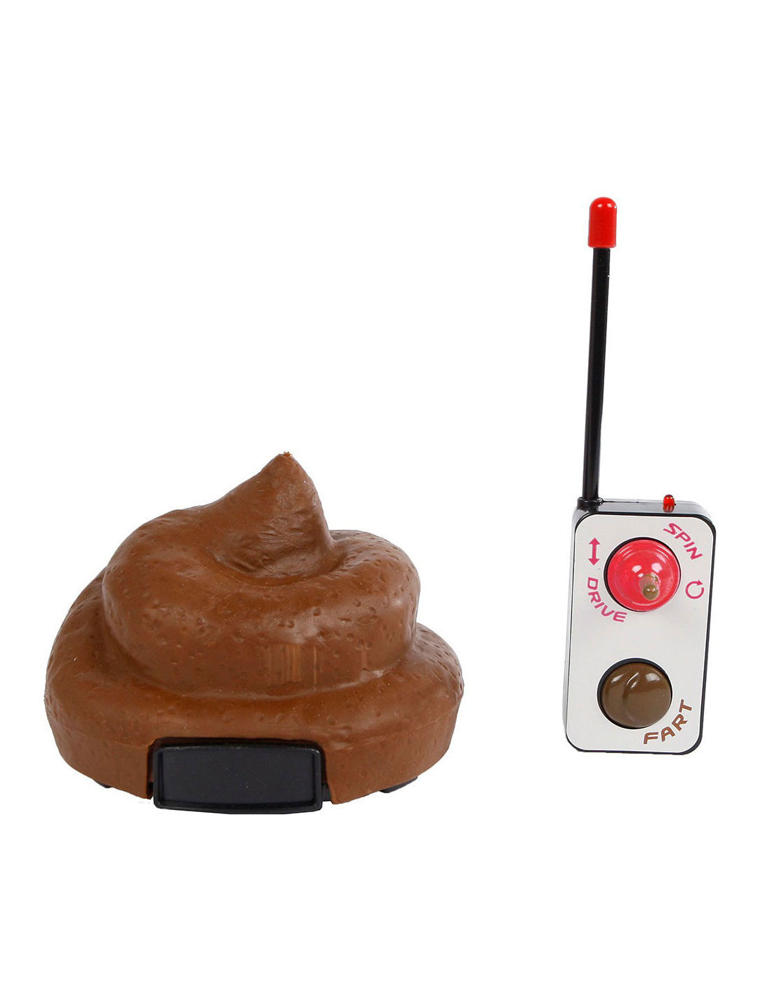 Remote controle drol met scheetgeluid en afstandsbediening. Batterijen: 2 x Knoopcel (inbegrepen), 2 x AAA - LR03 (niet inbegrepen). Geschikt voor kinderen van 6 jaar en ouder.