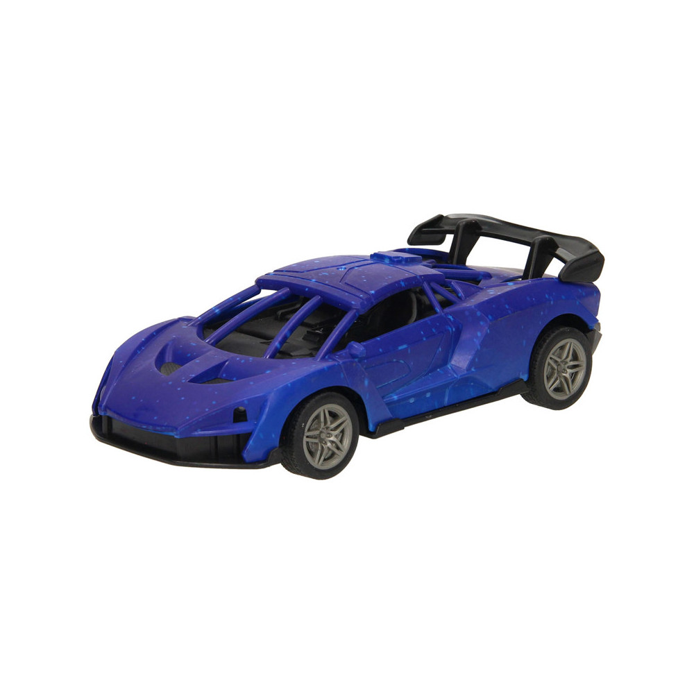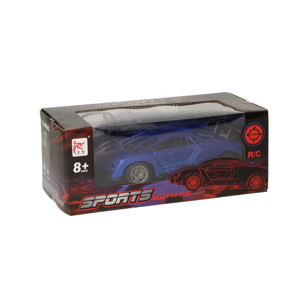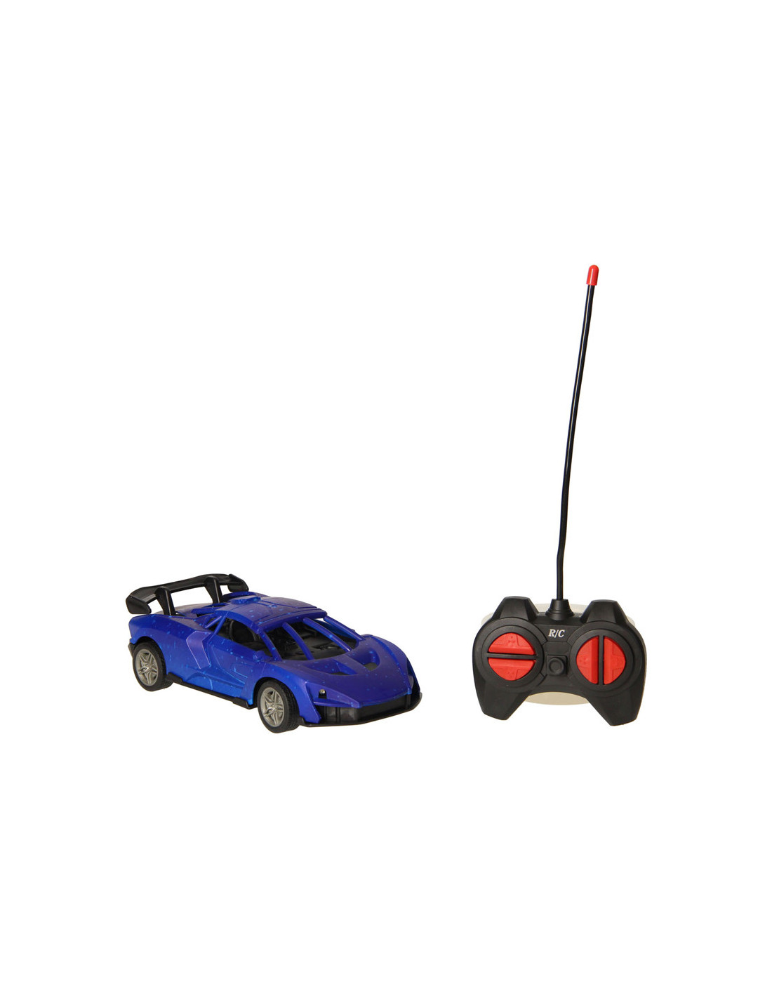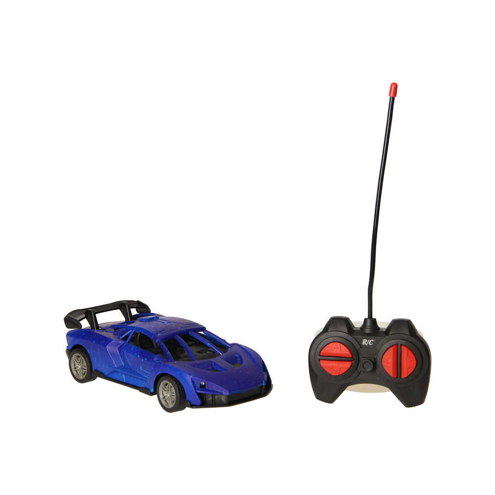 Ga de weg op met deze stoere Blauw/zwarte RC racewagen. De auto is 19 x 8,5 x 5,5 centimeter groot en geschikt voor kinderen vanaf 6 jaar. Werkt op 5 AA batterijen (niet inbegrepen).