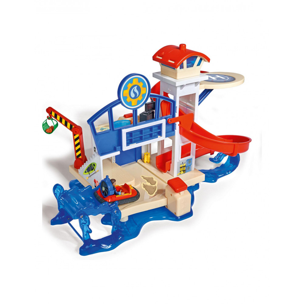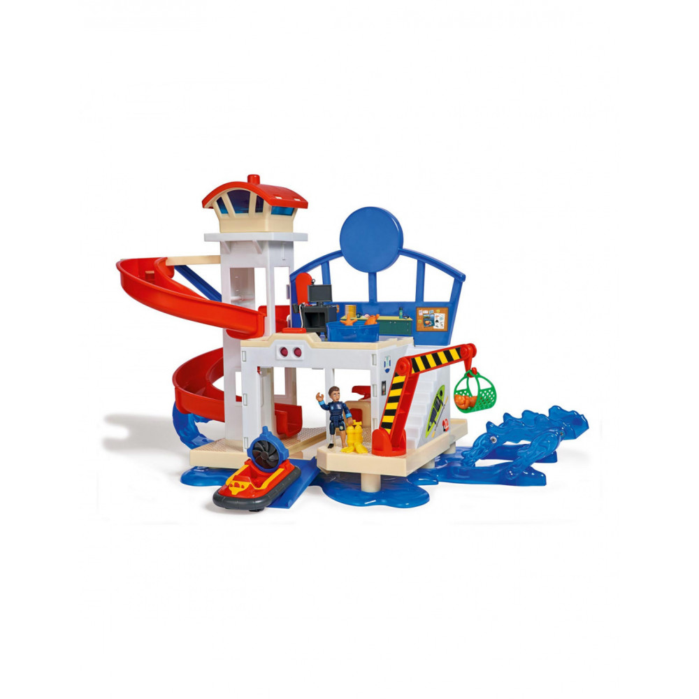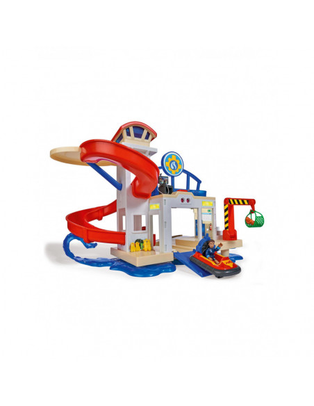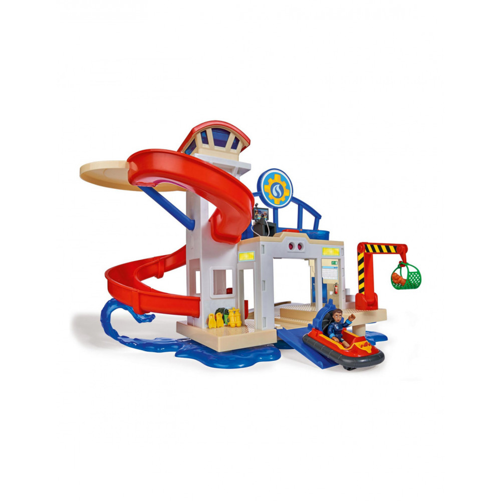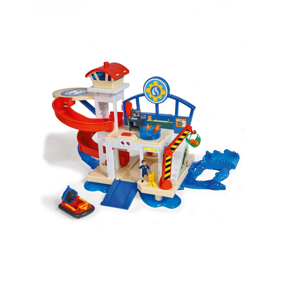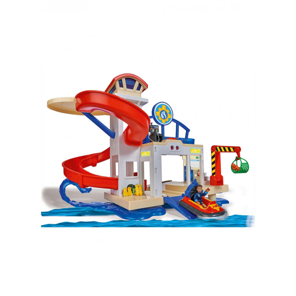 Operatiecentrum voor de waterreddingsdienst van Brandweerman Sam. Inclusief landingsplatform voor een helikopter en een hovercraft. Incl. accessoires en 2 spelfiguren. Geschikt voor kinderen vanaf drie jaar.
