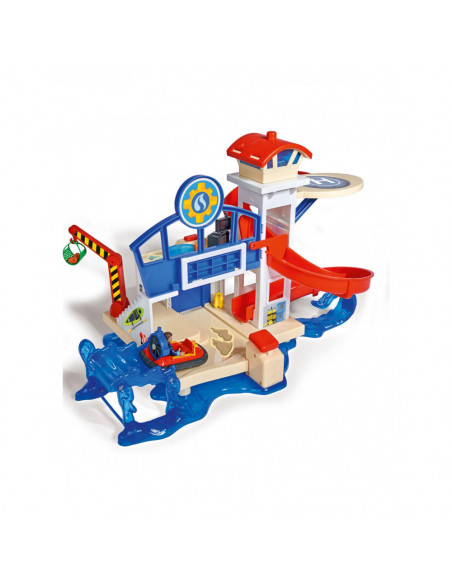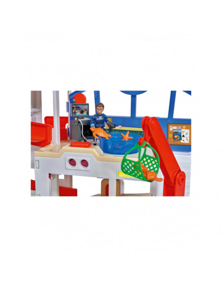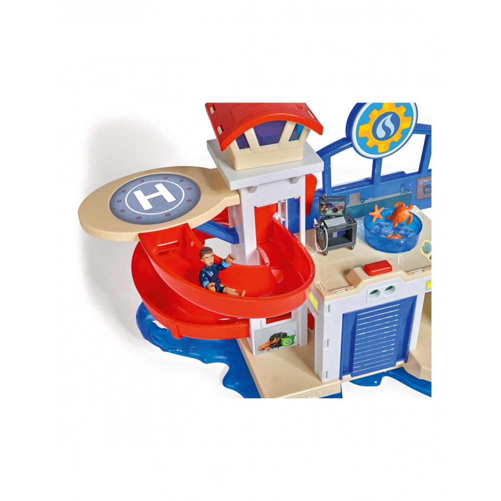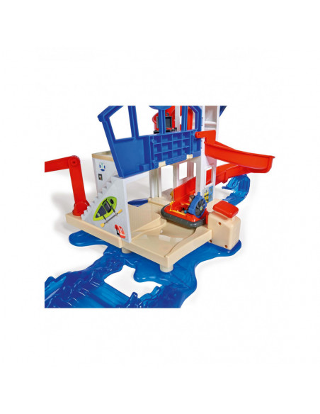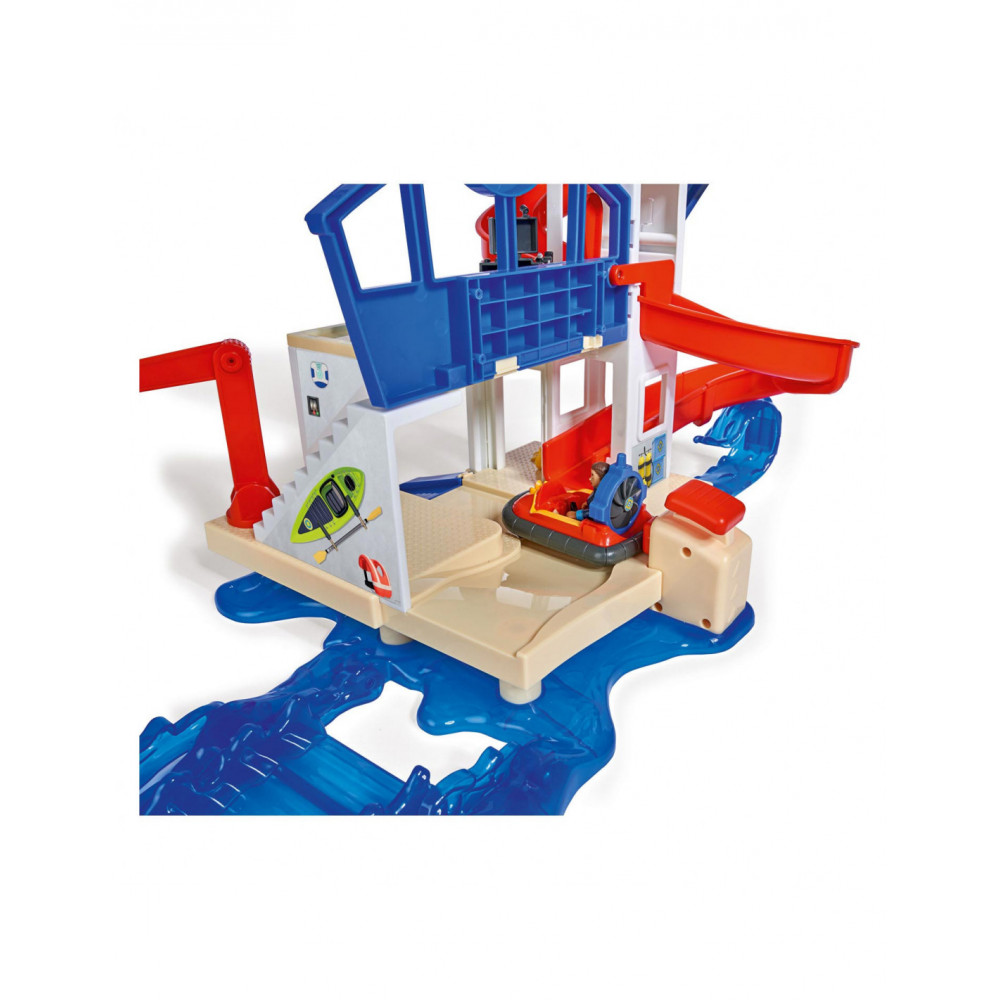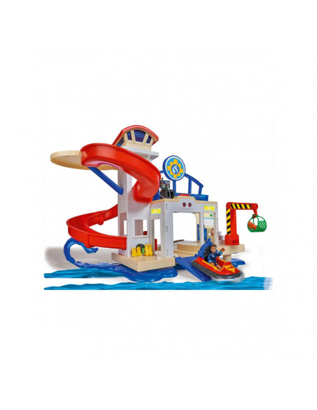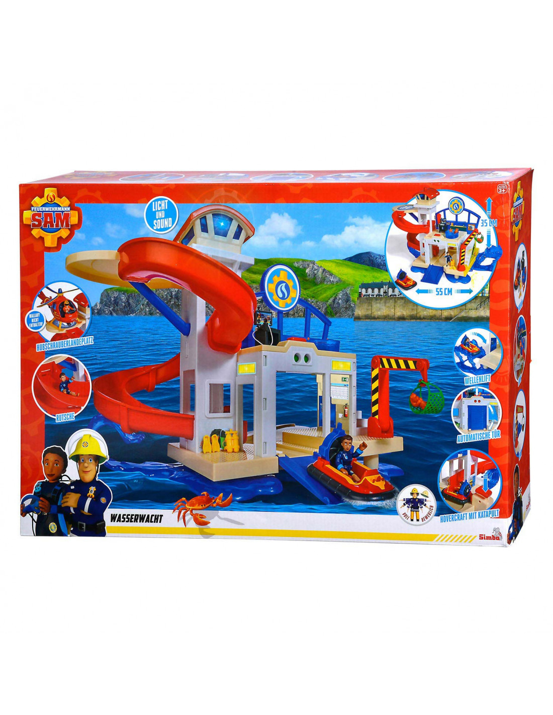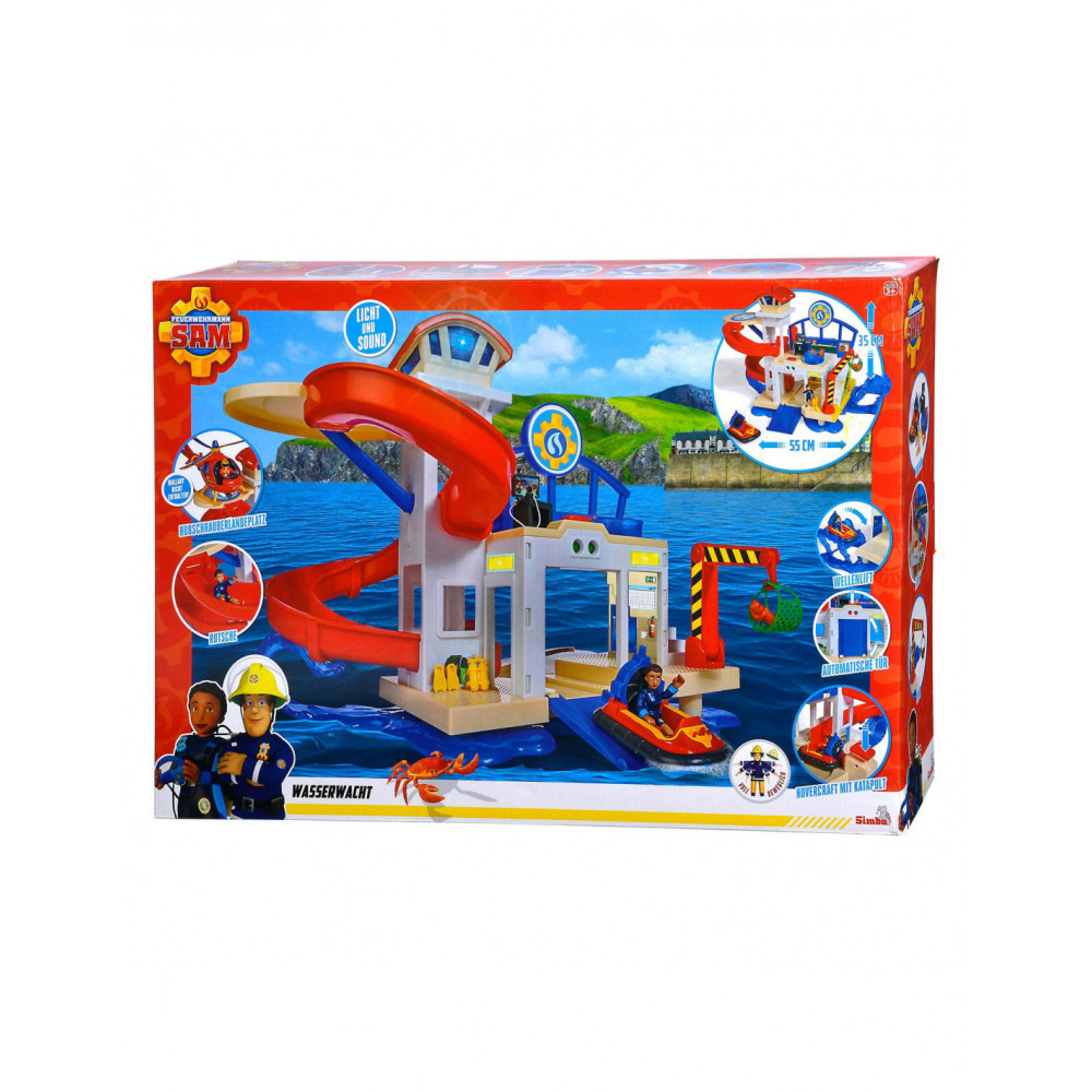 Operatiecentrum voor de waterreddingsdienst van Brandweerman Sam. Inclusief landingsplatform voor een helikopter en een hovercraft. Incl. accessoires en 2 spelfiguren. Geschikt voor kinderen vanaf drie jaar.