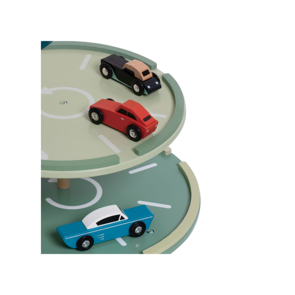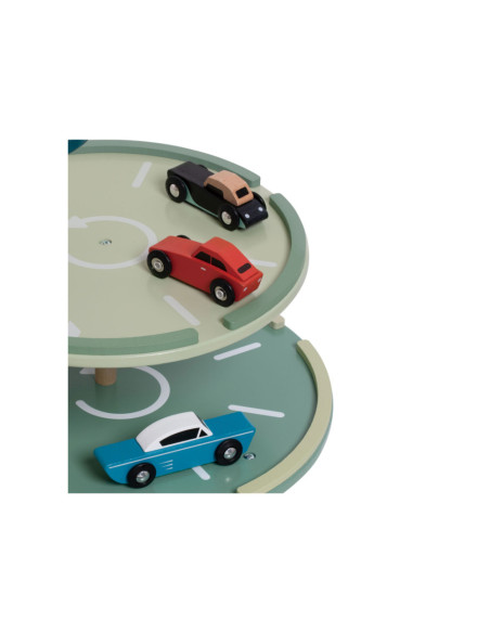 De garagebasis is uitgerust met spoorverbindingen, waardoor het mogelijk is om een ​​hele reeks speelgoed met voertuigen te maken. Het garagespeelgoed met zijn kleine auto's stimuleert de verbeelding, fijne motoriek en taalontwikkeling van kinderen. Samen spelen helpt ook bij het ontwikkelen van sociale vaardigheden.