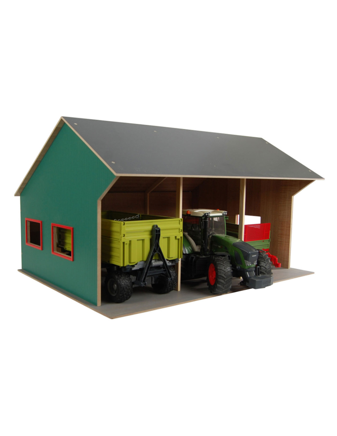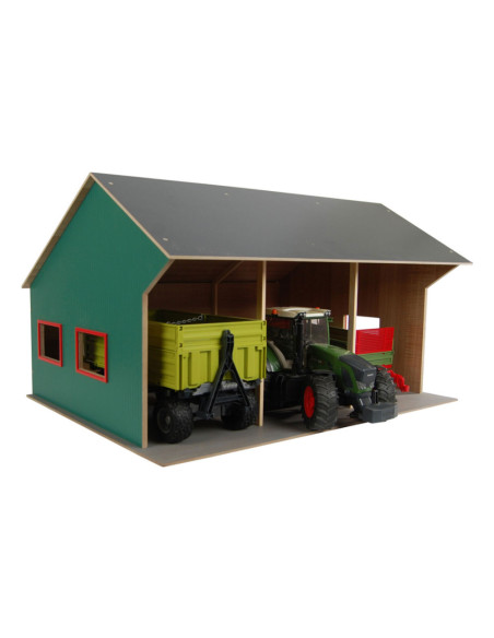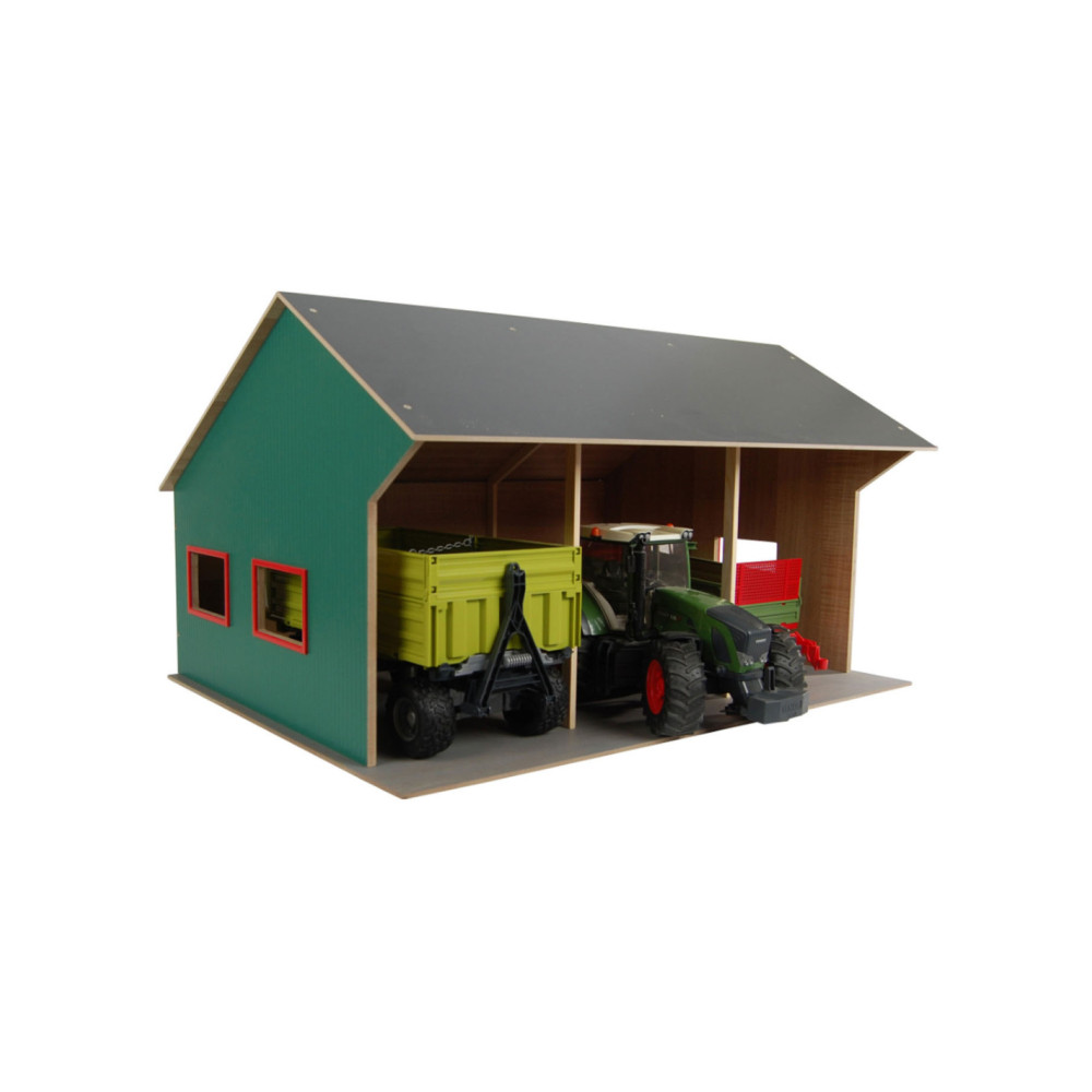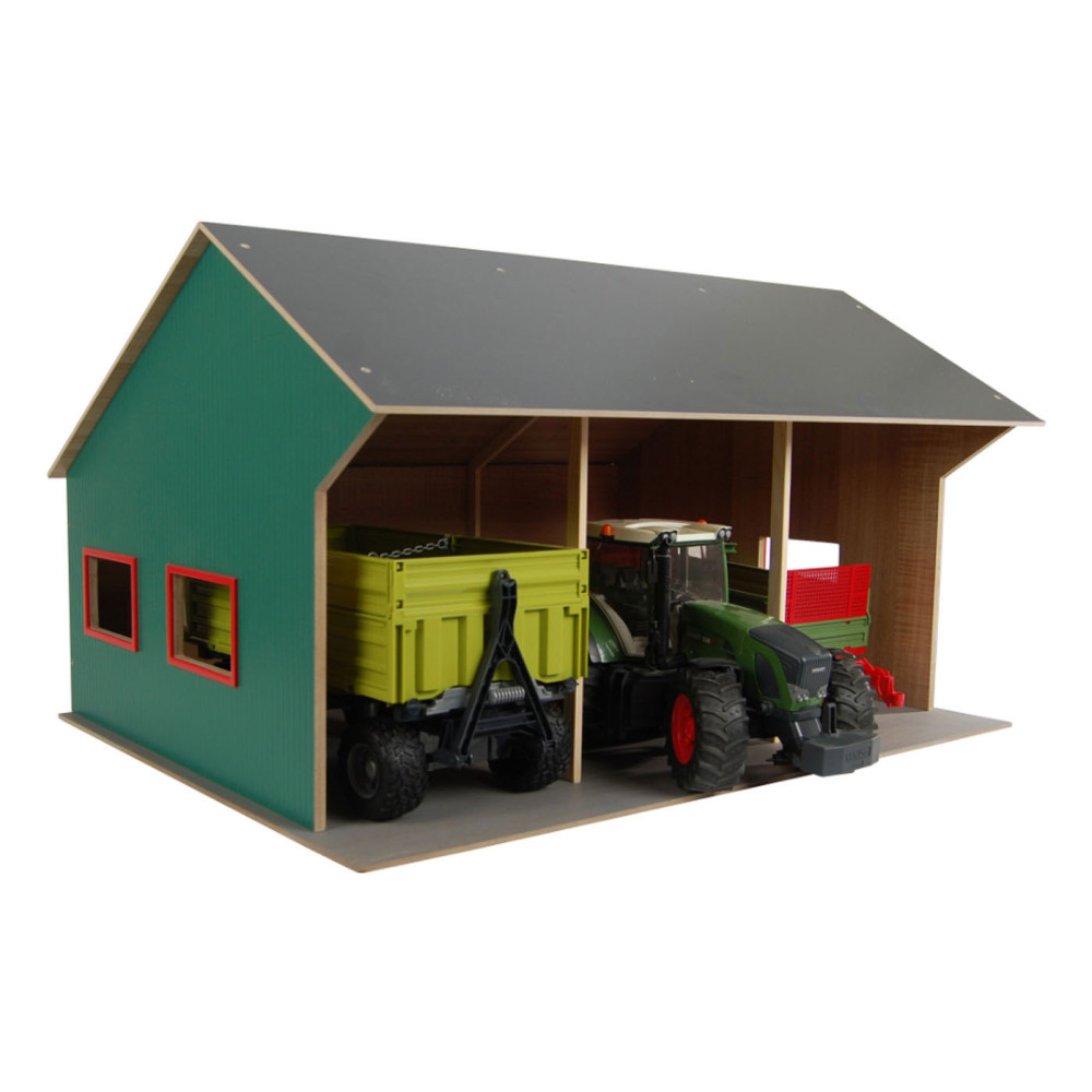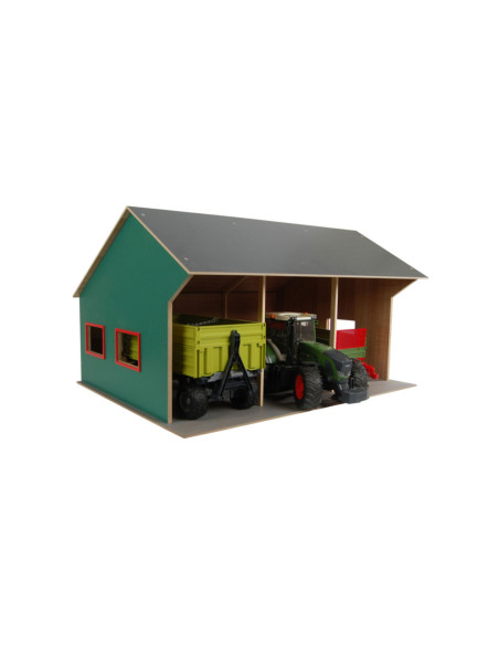 In deze landbouwloods kun je 3 verschillende landbouwmachines parkeren! De groene landbouwloods is aan 3 kanten gesloten, met een open voorkant en 3 vakken voor grote landbouwvoertuigen. De loods is op schaal 1:16. De loods is 55,5 bij 75 bij 43,5 centimeter groot. Geschikt voor kinderen vanaf 3 jaar oud. Exclusief voertuigen.