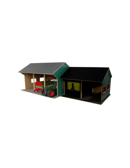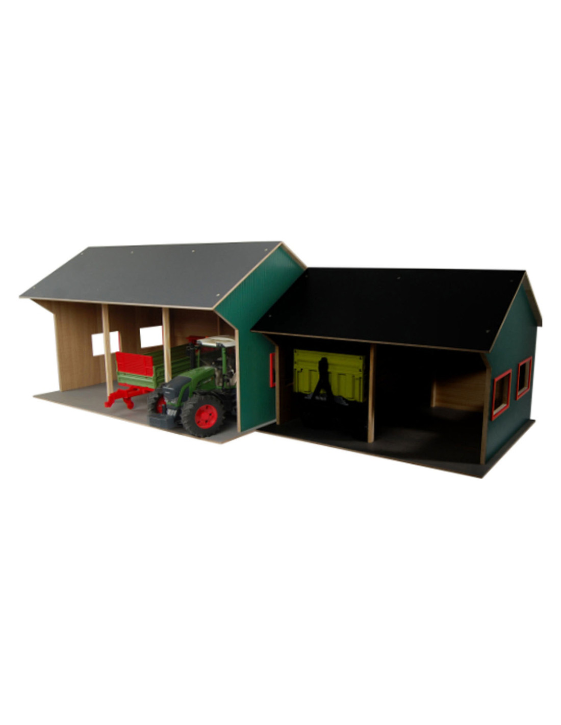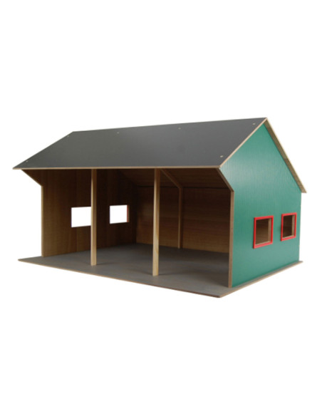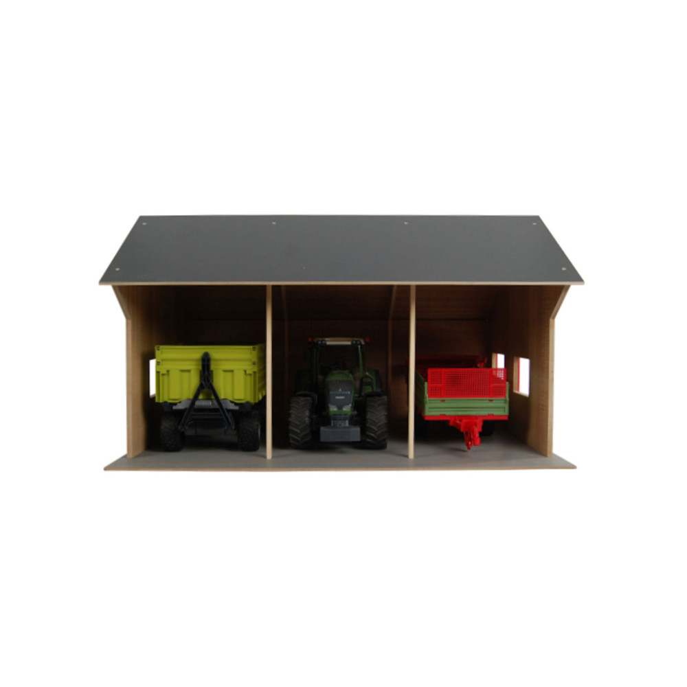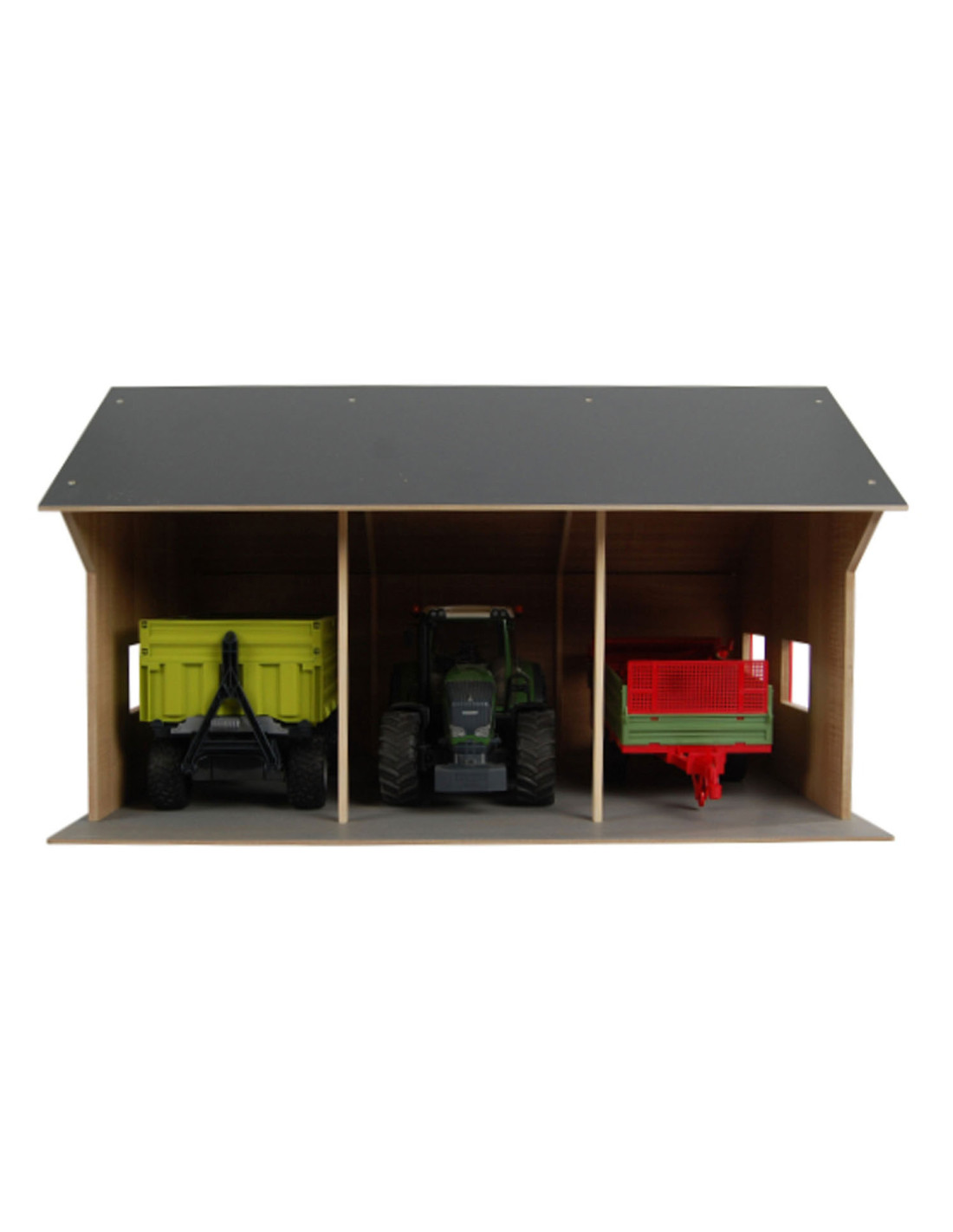 In deze landbouwloods kun je 3 verschillende landbouwmachines parkeren! De groene landbouwloods is aan 3 kanten gesloten, met een open voorkant en 3 vakken voor grote landbouwvoertuigen. De loods is op schaal 1:16. De loods is 55,5 bij 75 bij 43,5 centimeter groot. Geschikt voor kinderen vanaf 3 jaar oud. Exclusief voertuigen.