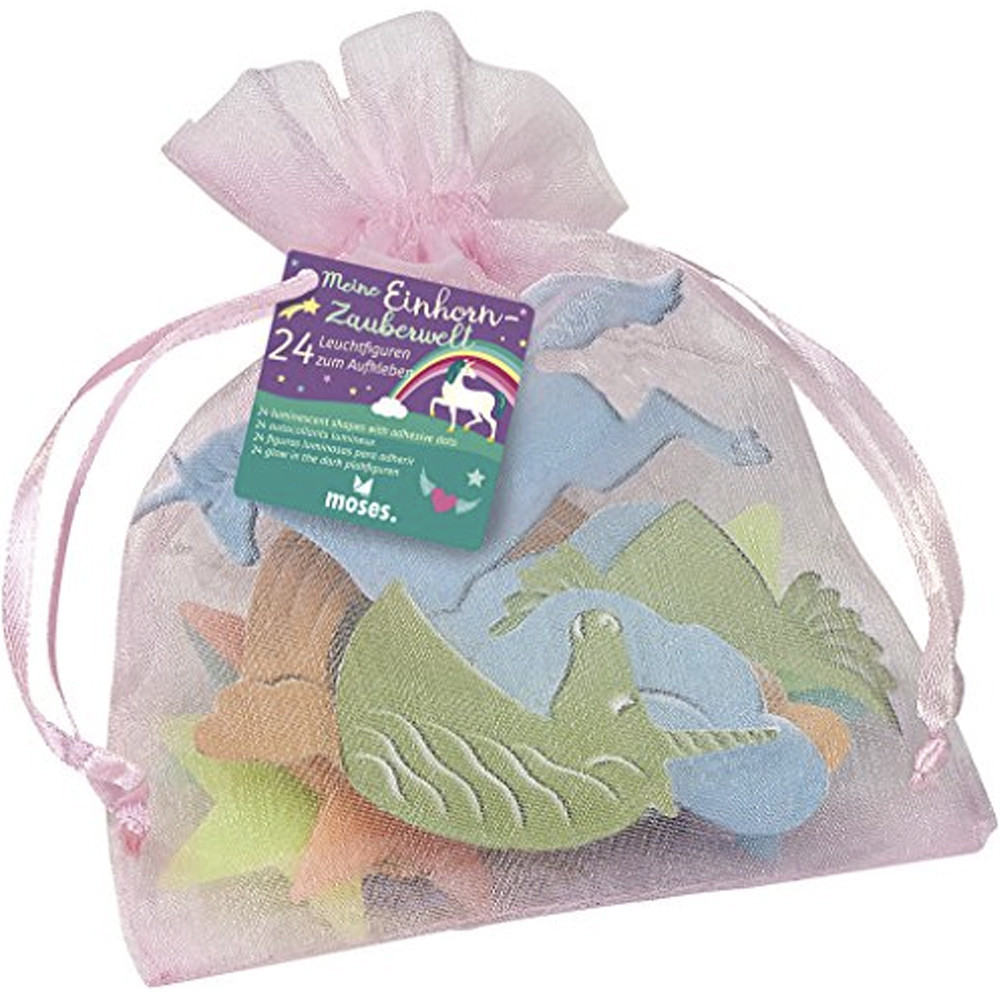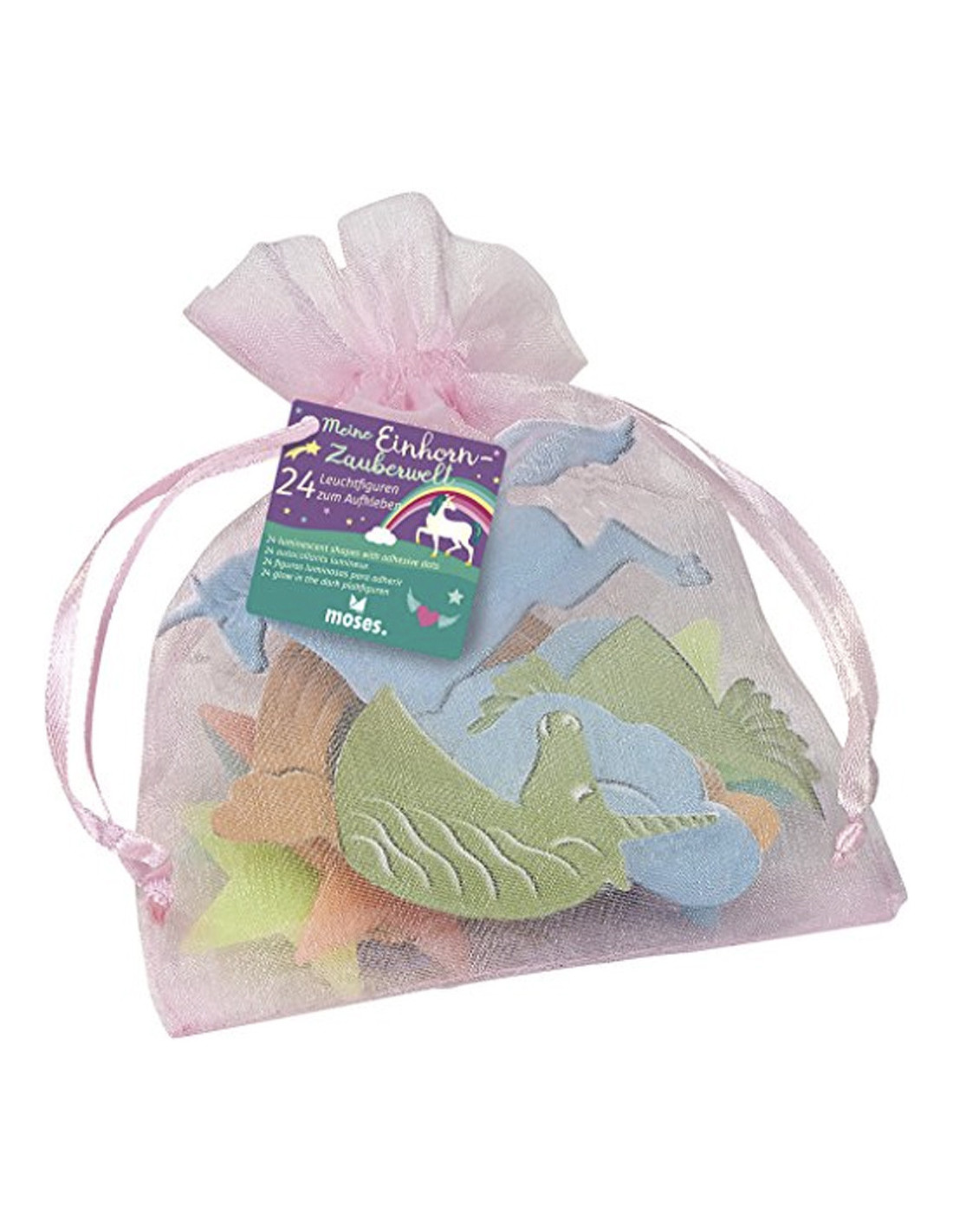 24 magische figuren om op te plakken. Stel de figuren een paar minuten bloot aan fel licht en ze zullen gloeien in het donker.