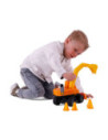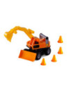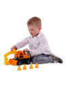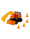 Deze stoere graafmachine heeft een uitschuifbare arm en wordt bestuurd met de 2 handvatten. Voorop zit ook nog een shovel, multifunctioneel. De graafmachine heeft rubberbanden. Inclusief 4 oranje pionnen.