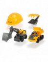 - Toy Set, inclusief 2 speelgoedvoertuigen met rollende wielen, schop en helm