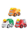 Deze speelset bevat 3 bouwvrachtwagens met 3 vrachtwagenchauffeurs. Uw kleine ingenieur kan zich met behulp van deze groep de bouw van de faciliteiten voorstellen. Elke truck is verkrijgbaar in verschillende kleuren om zijn kinetische en intelligente vaardigheden en coördinatie tussen oog en hand te helpen ontwikkelen. Geschikt voor kinderen vanaf 3 jaar oud.